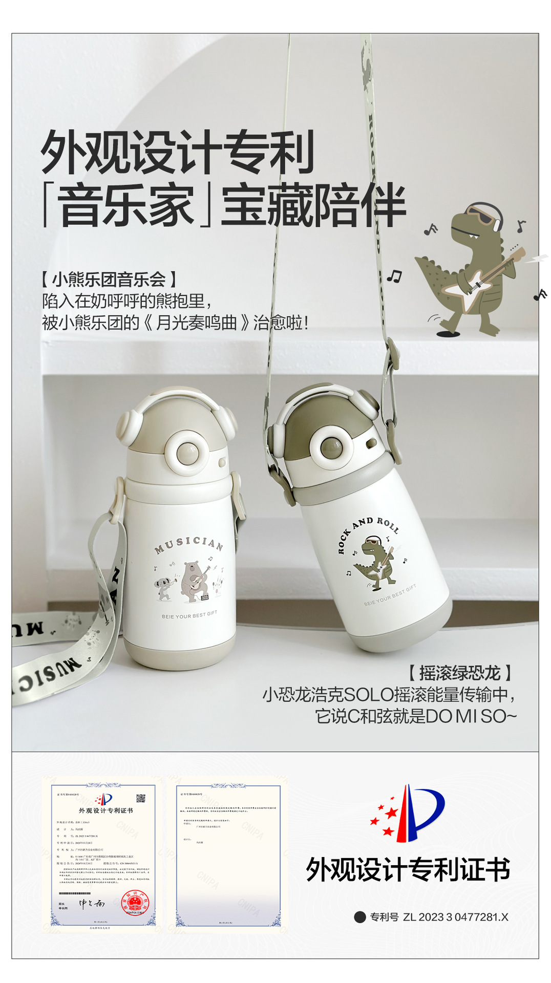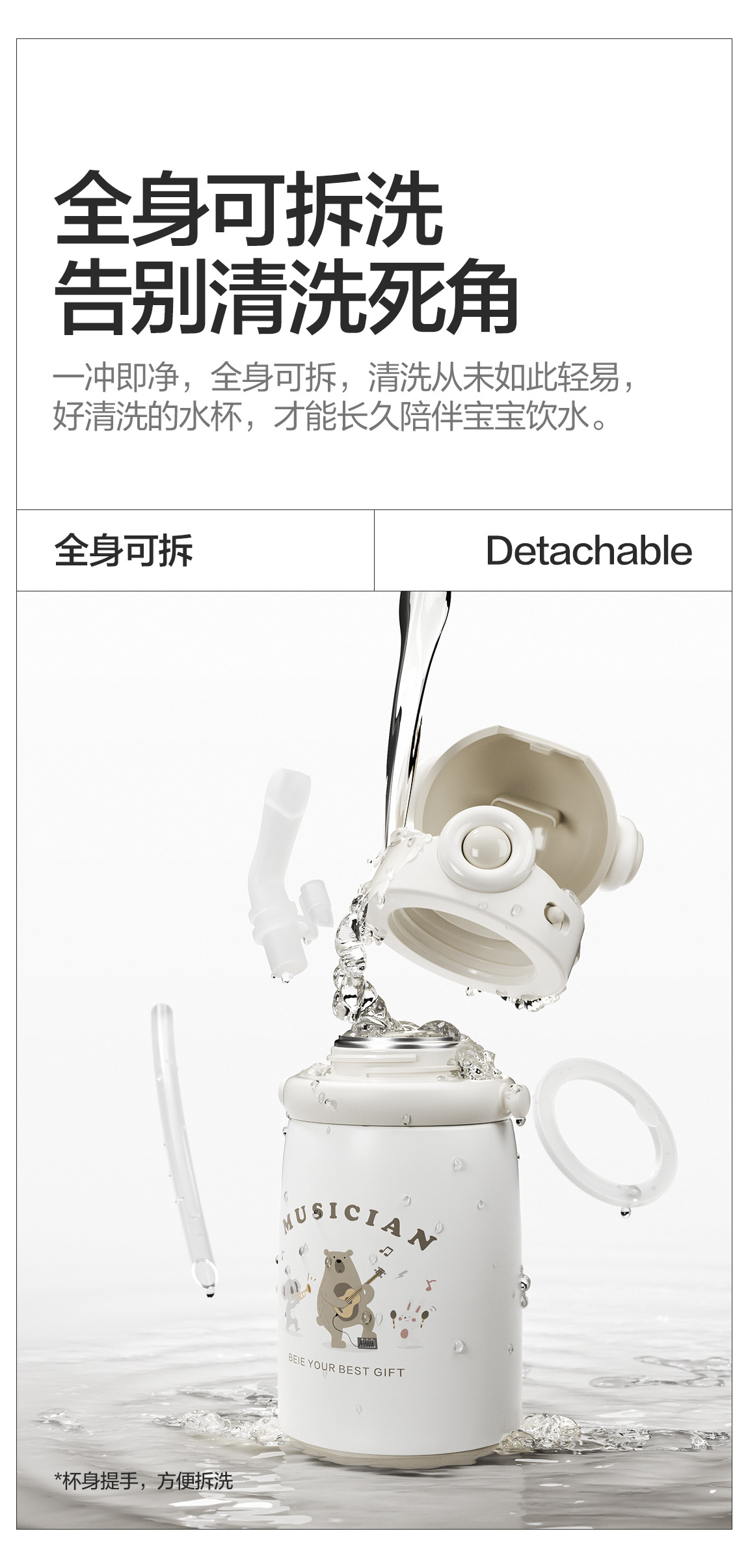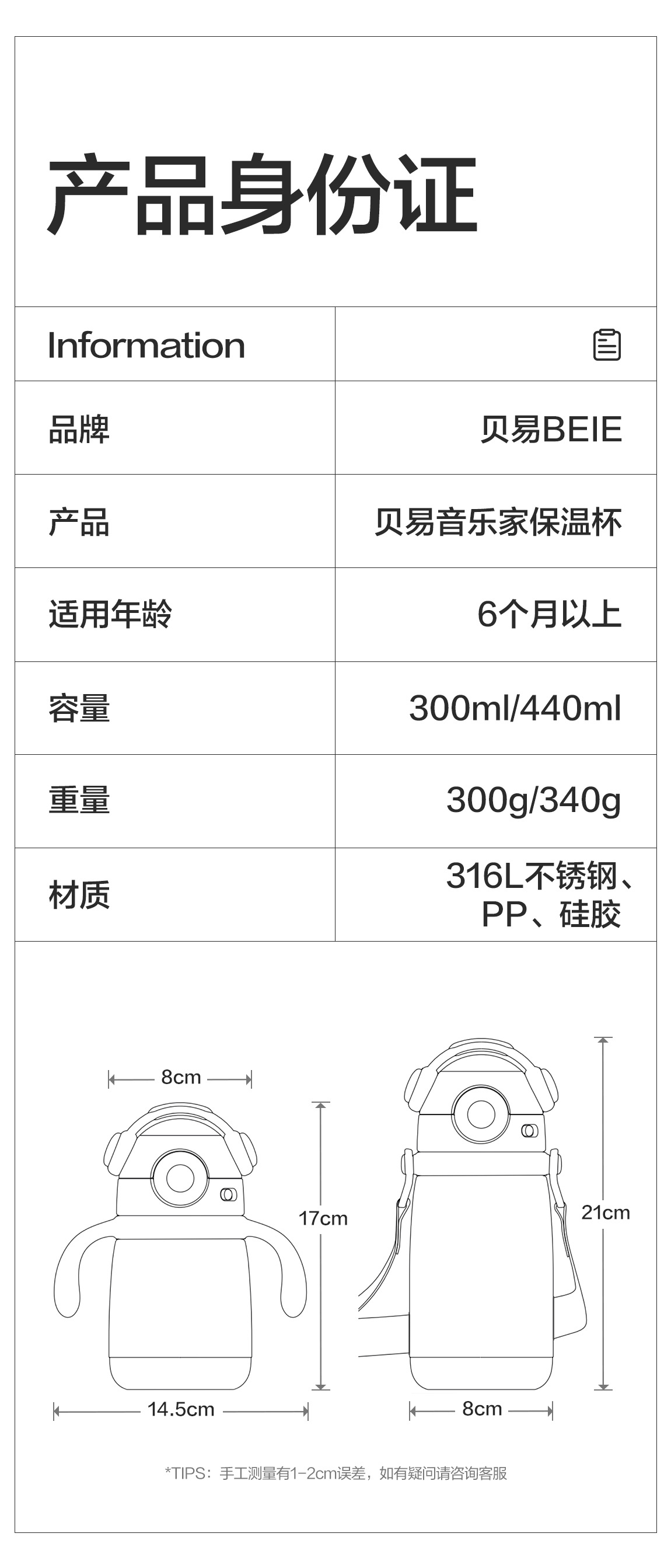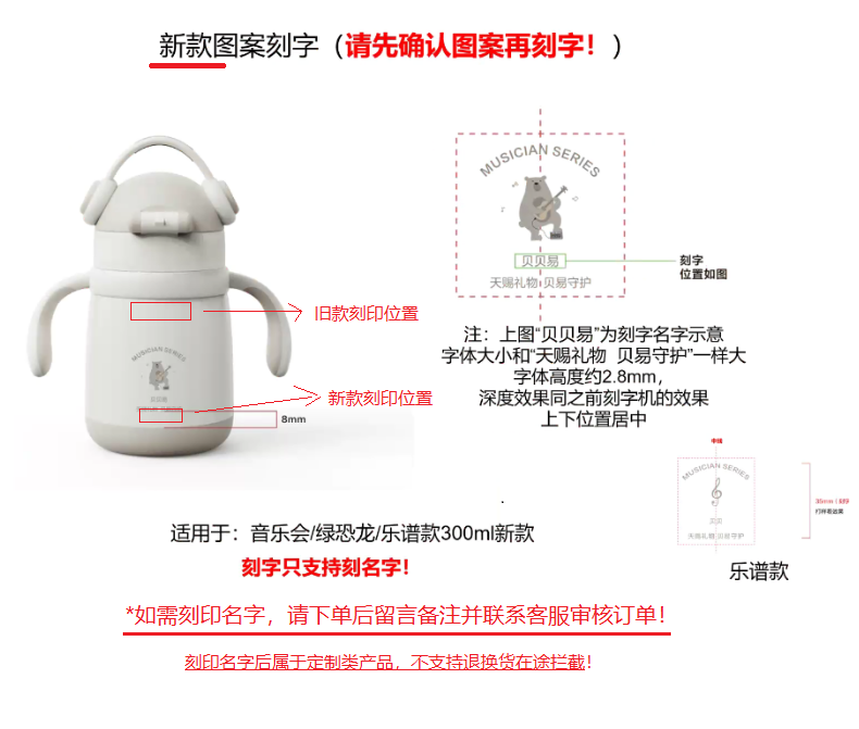 【支持刻名字,如需刻印下单备注】贝易音乐家宝宝保温杯婴幼儿吸管学饮6月以上保温儿童水杯 刻字后非质量问题不退不换!