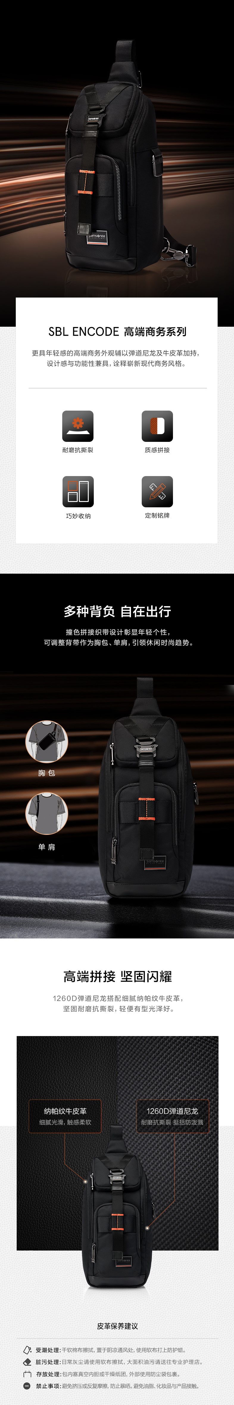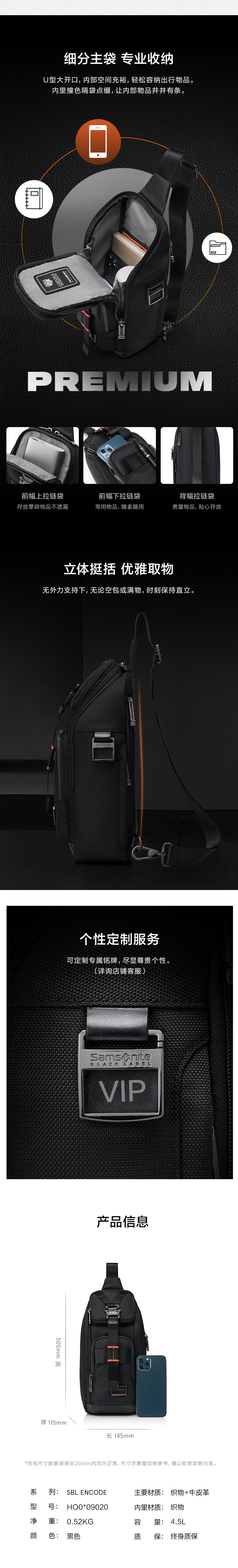新秀丽SBL ENCODE高端黑标系列 男士商务休闲时尚单肩包HO0*020