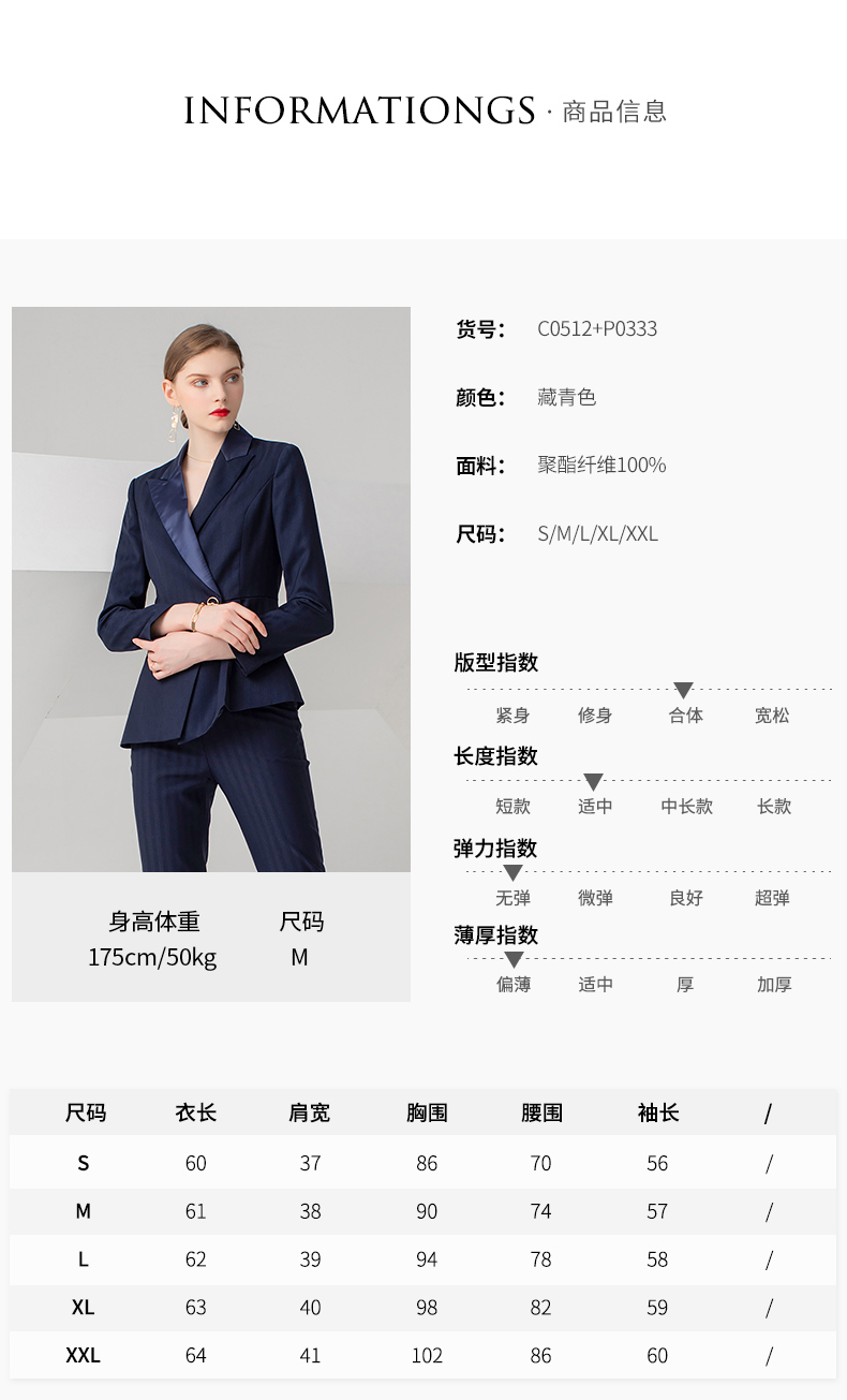 IWY/藏青色长袖西装长裤套装C0512+P0333