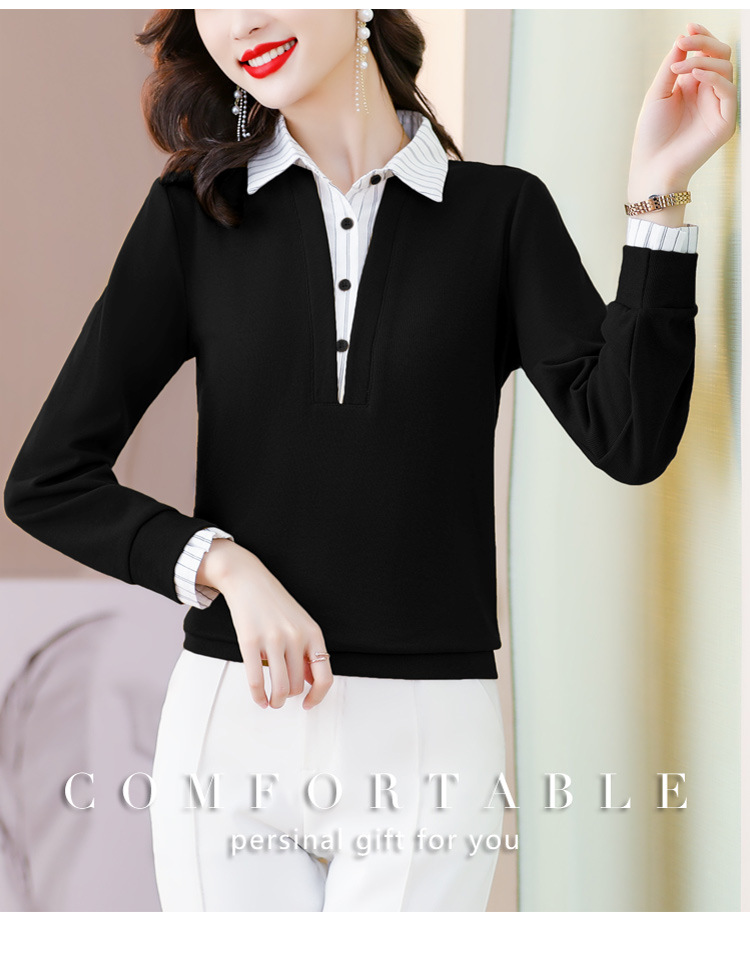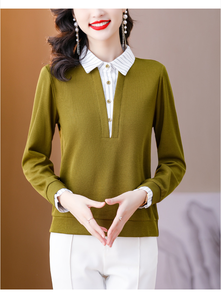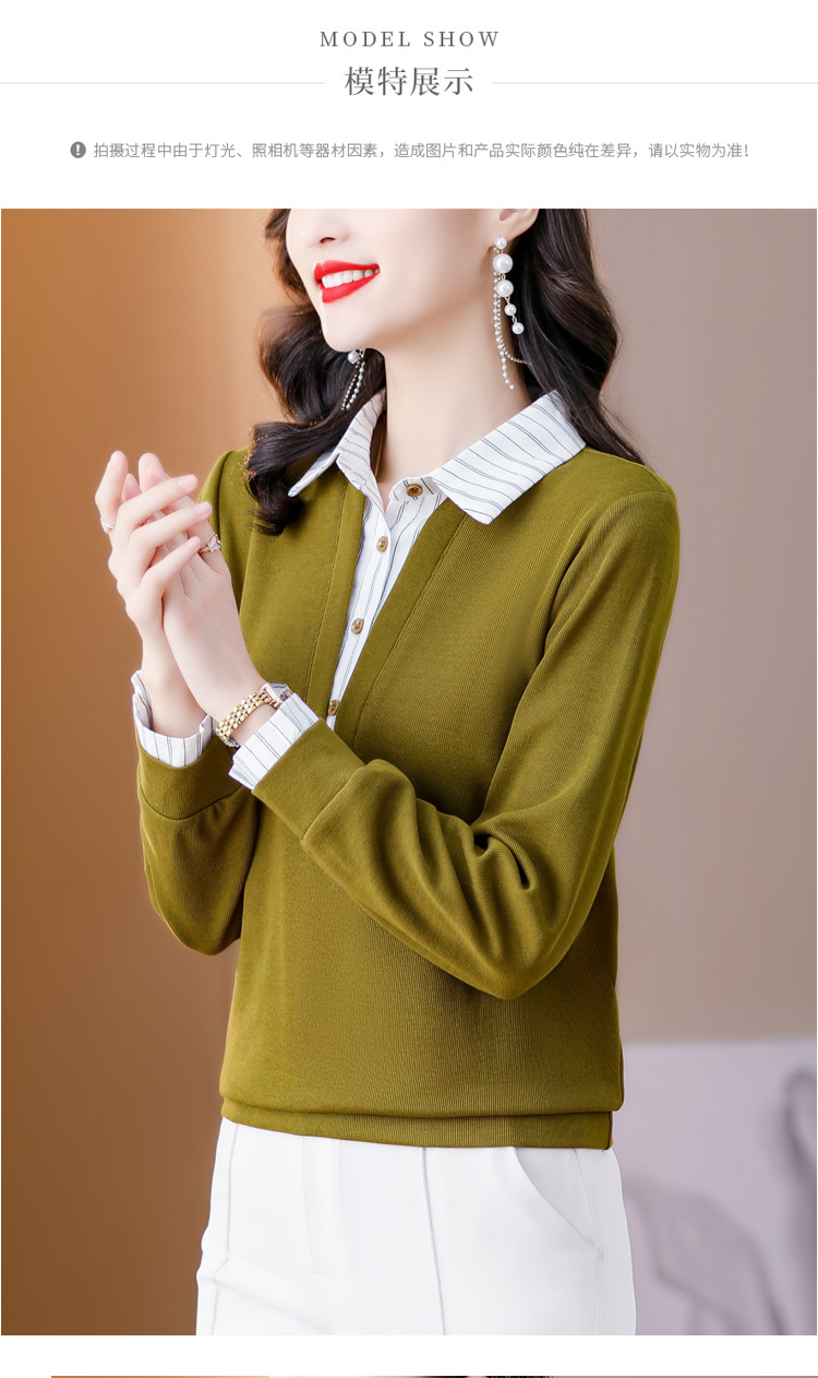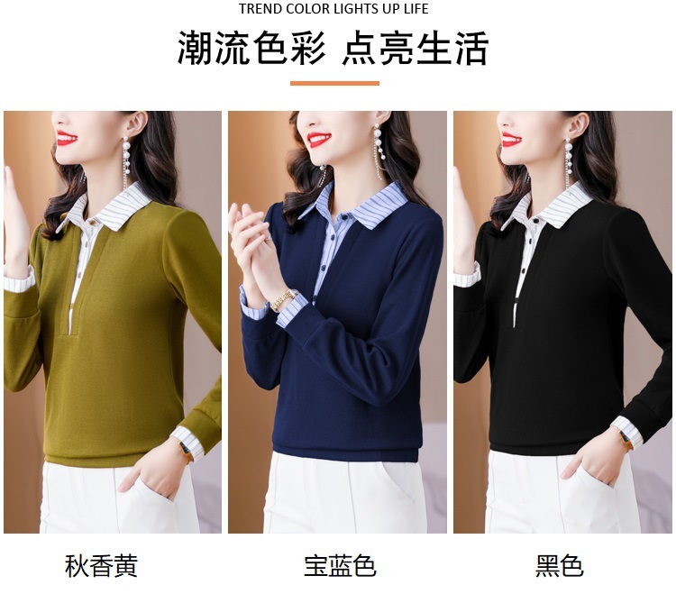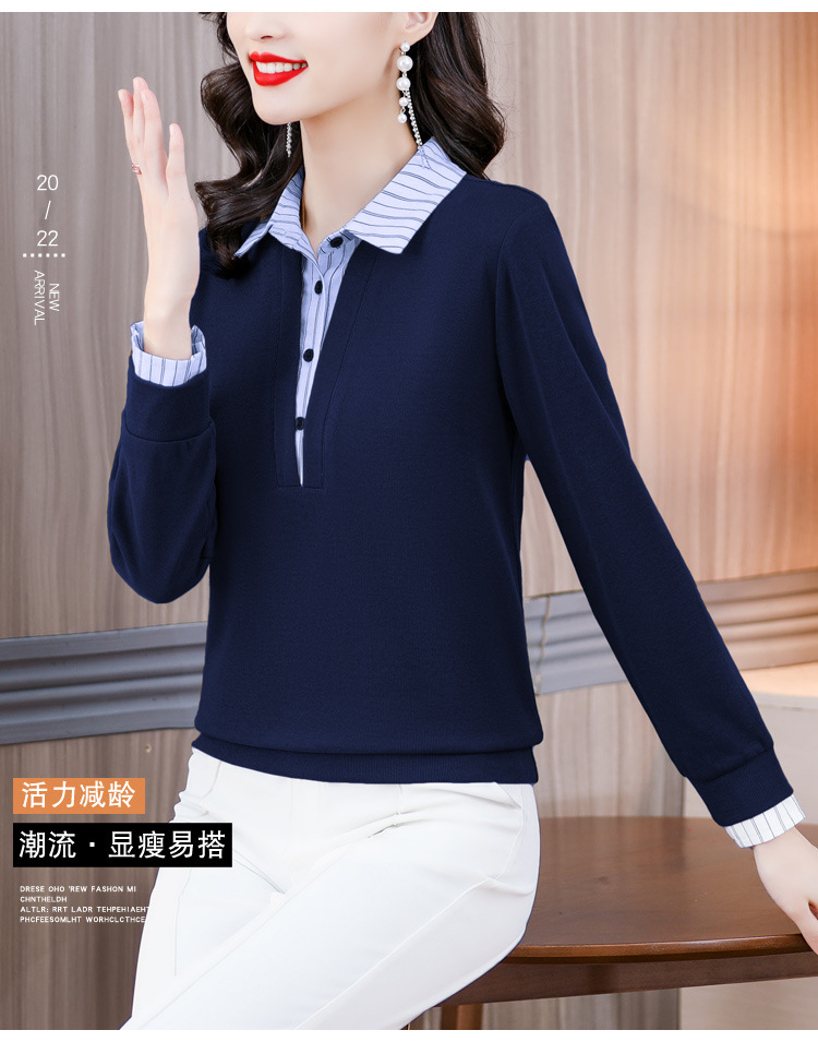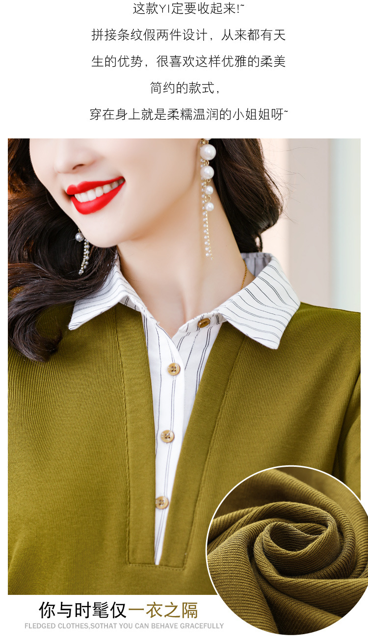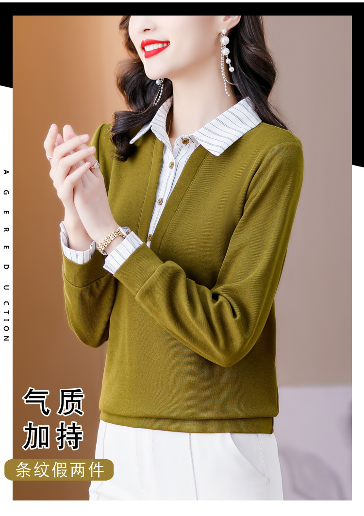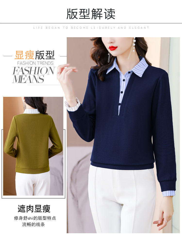 妈妈装T恤上衣假两件衬衣领时尚打底衫KQL-210H8533