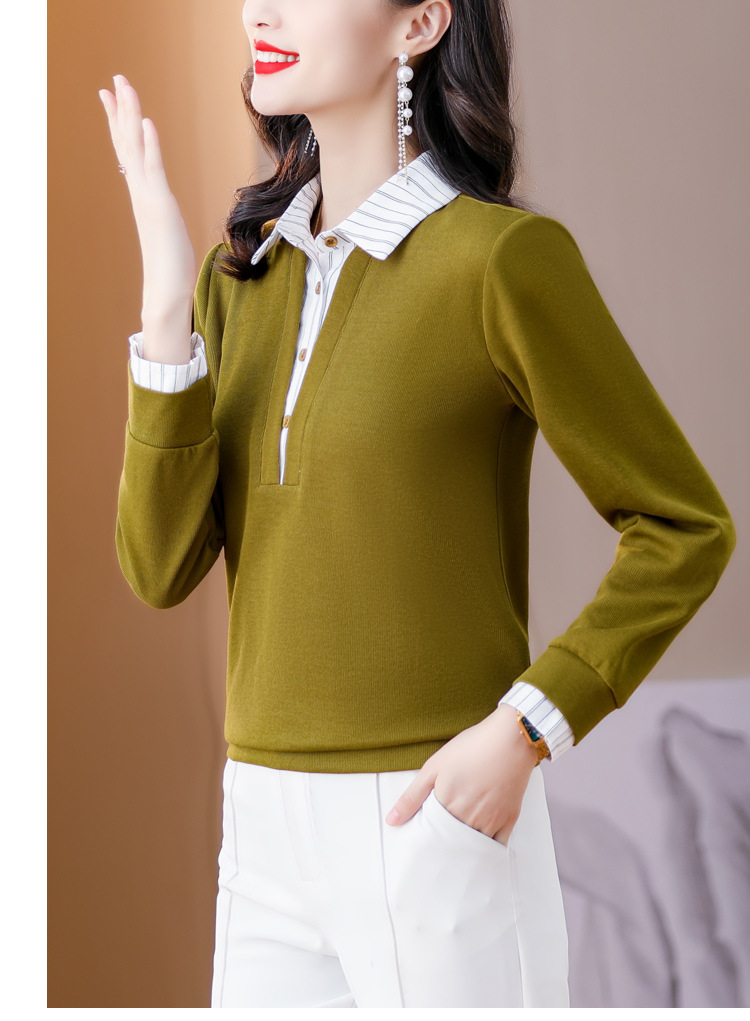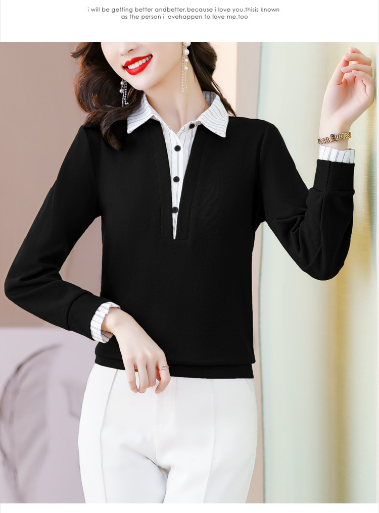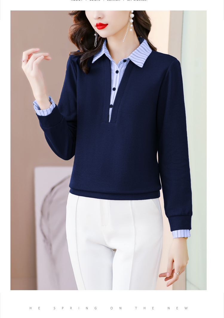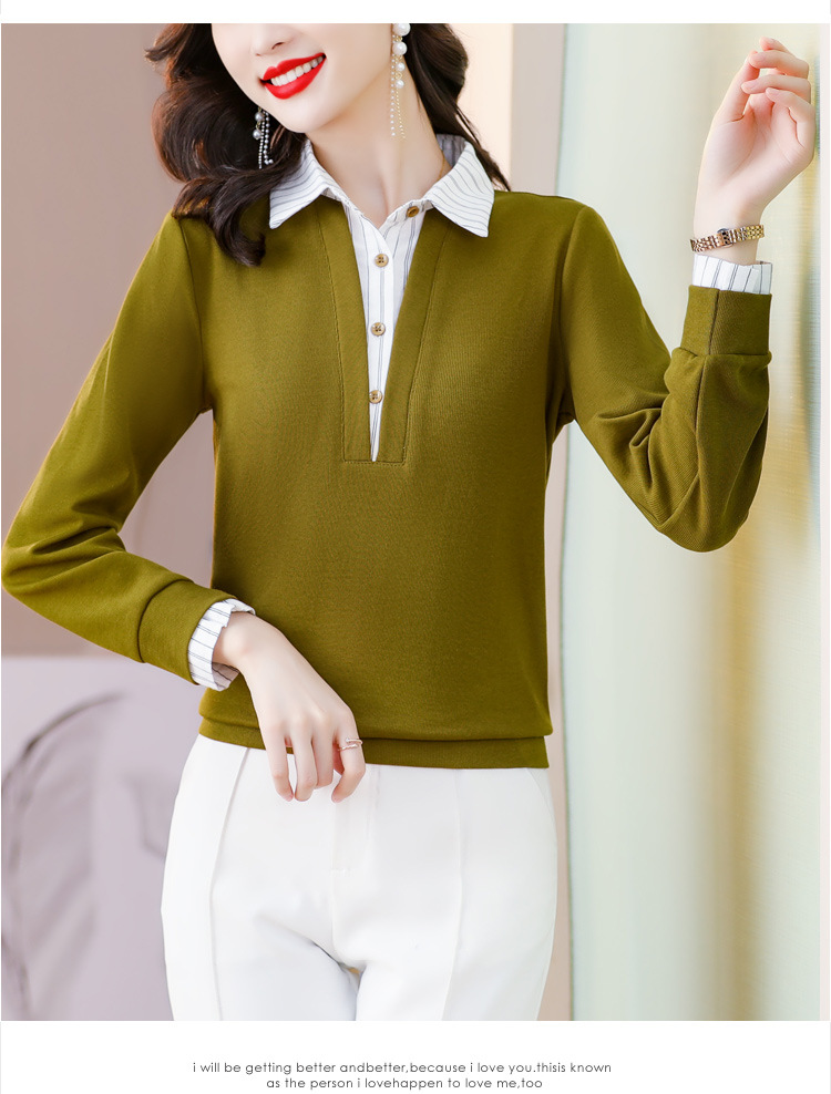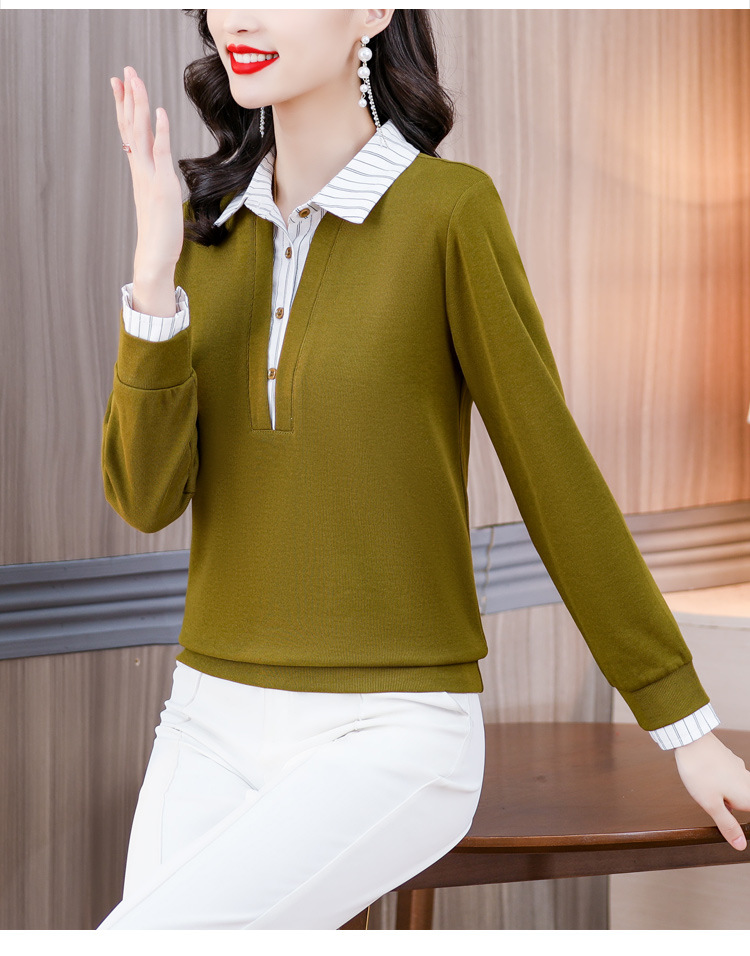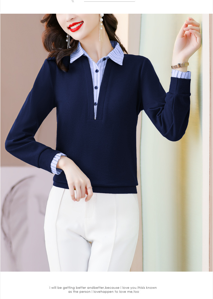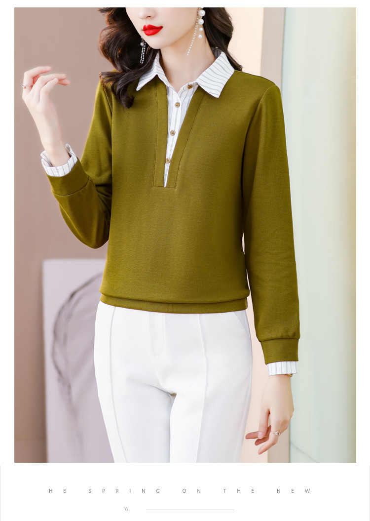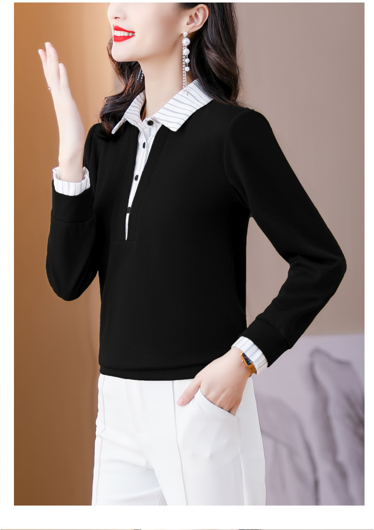 妈妈装T恤上衣假两件衬衣领时尚打底衫KQL-210H8533