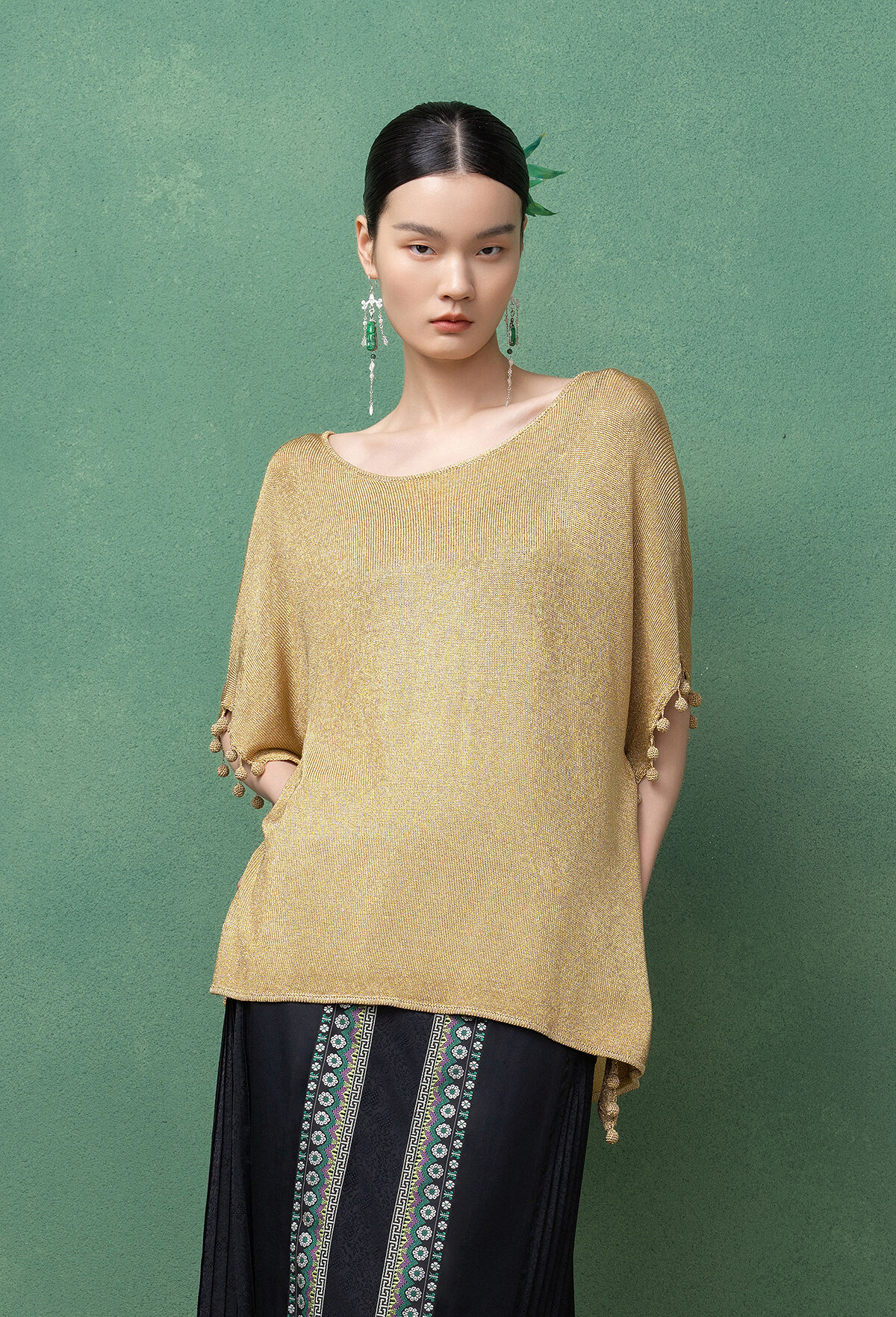 【林栖设计小店】复古流苏针织上衣优雅气质宽松显瘦2025夏季新品毛衣女1952133