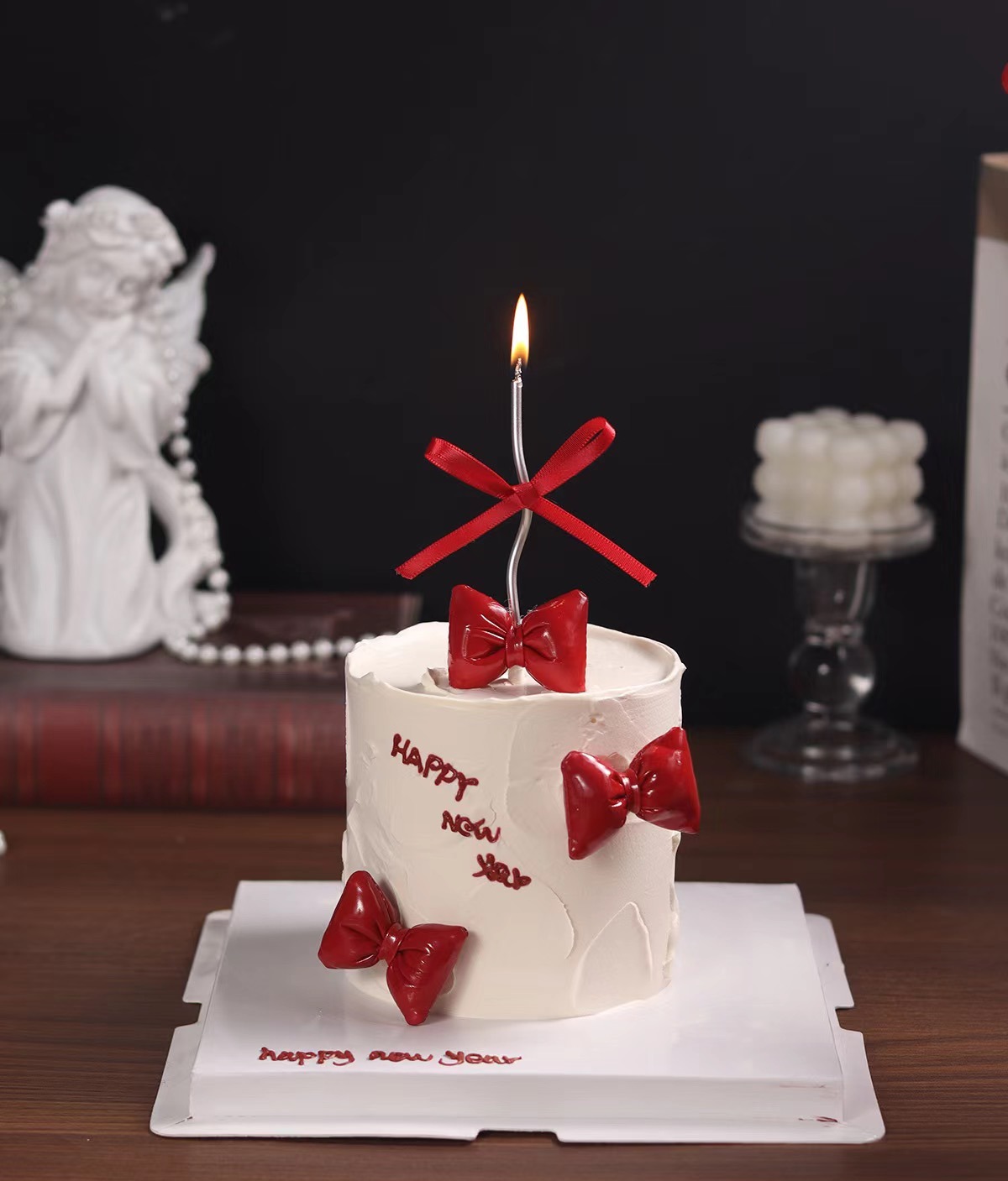 三层夹心【红色蝴蝶结】跨年、元旦、新年蛋糕