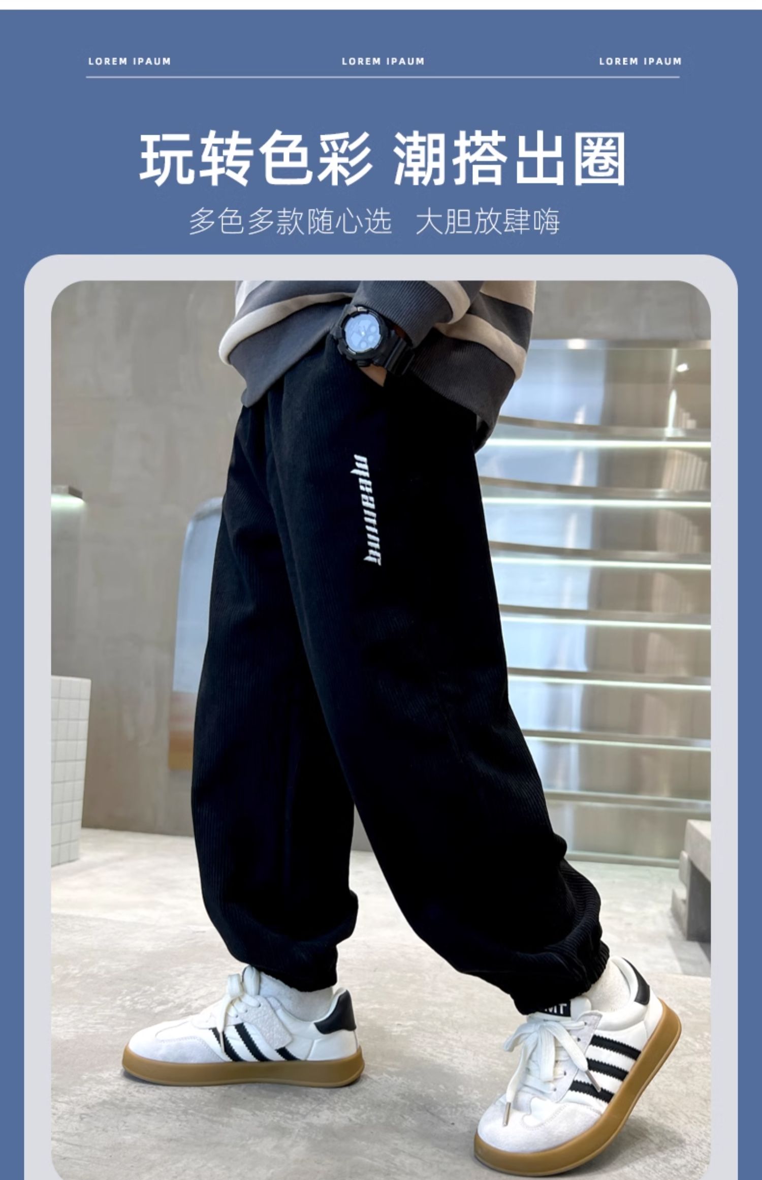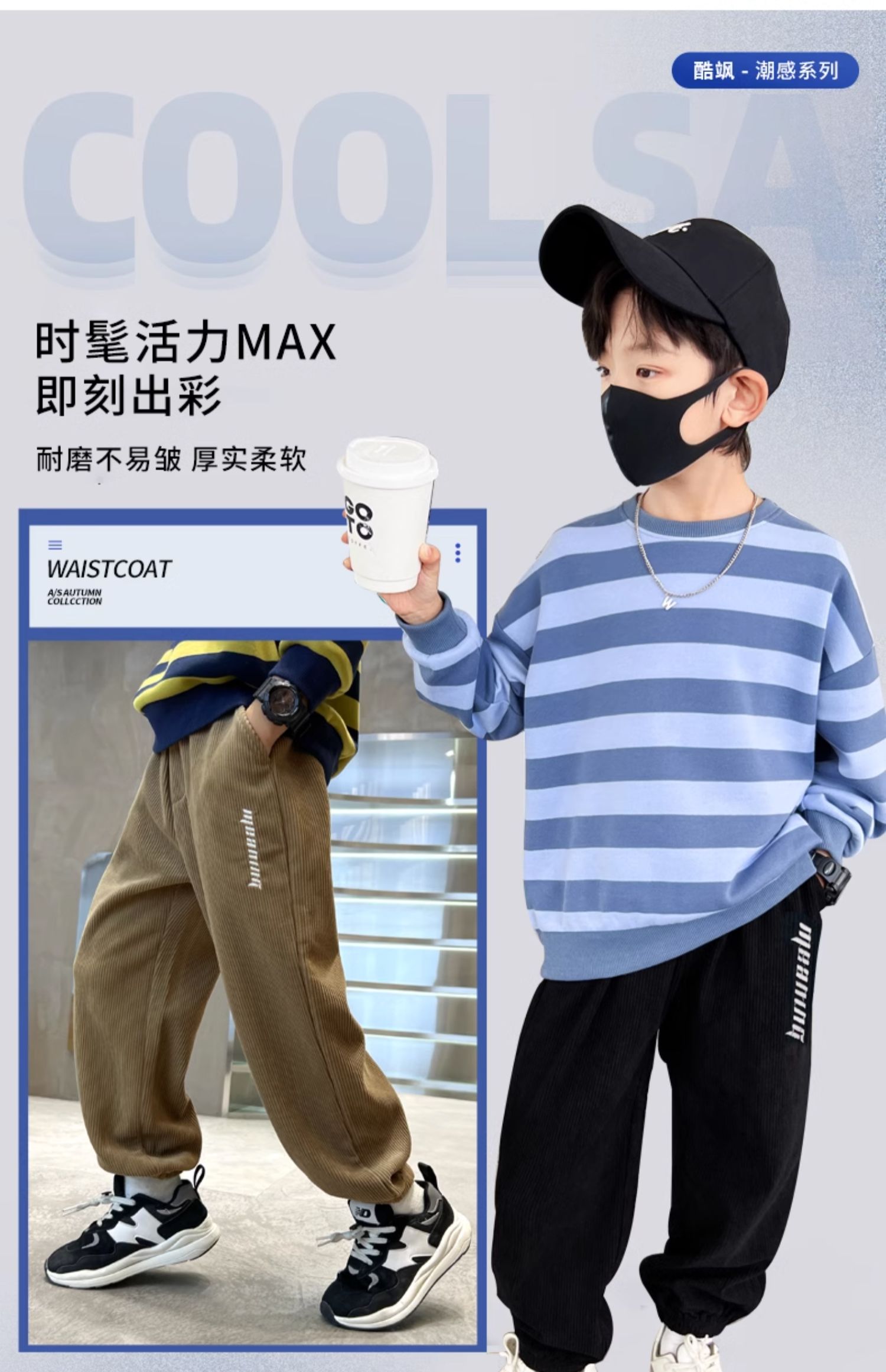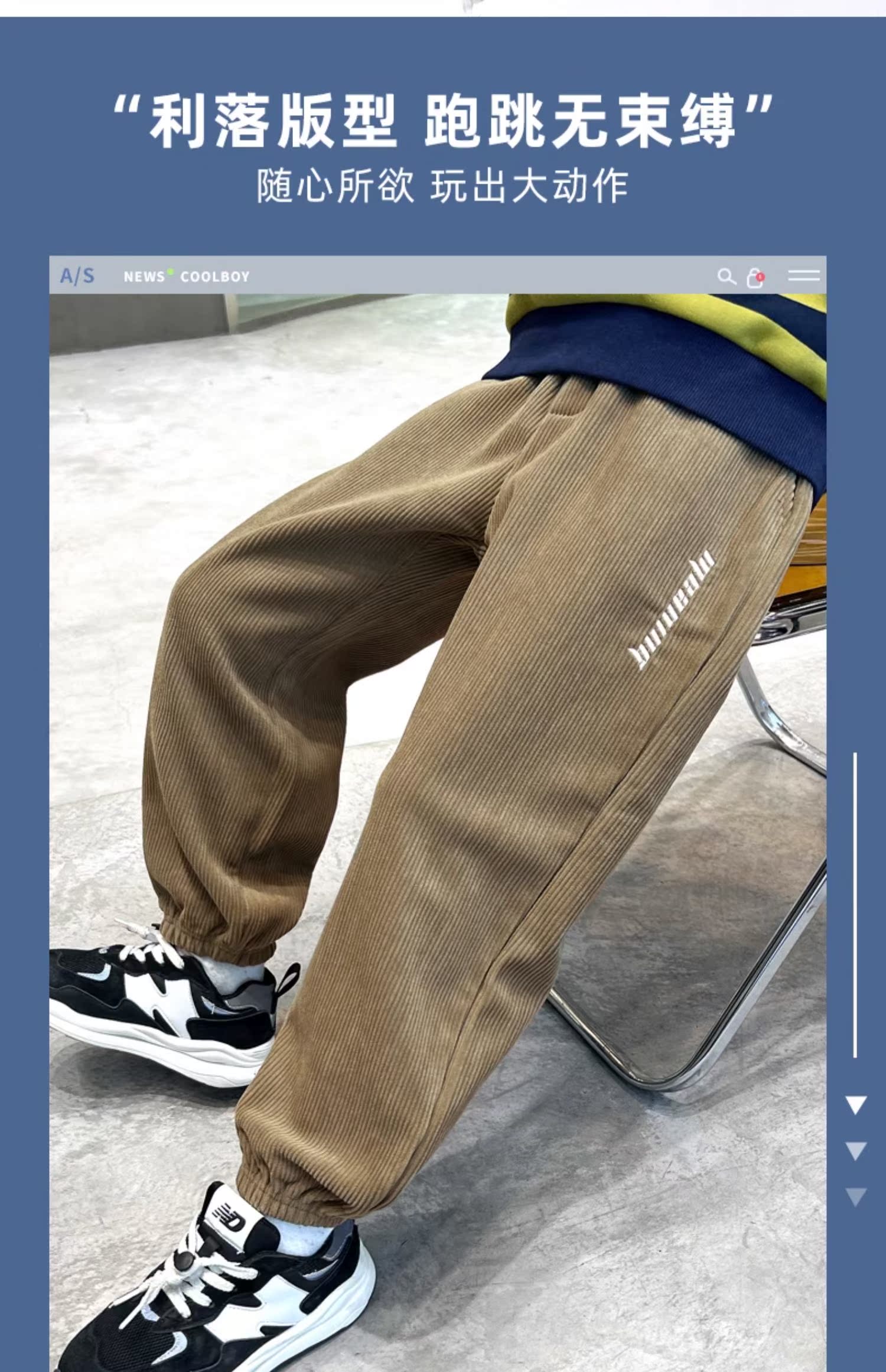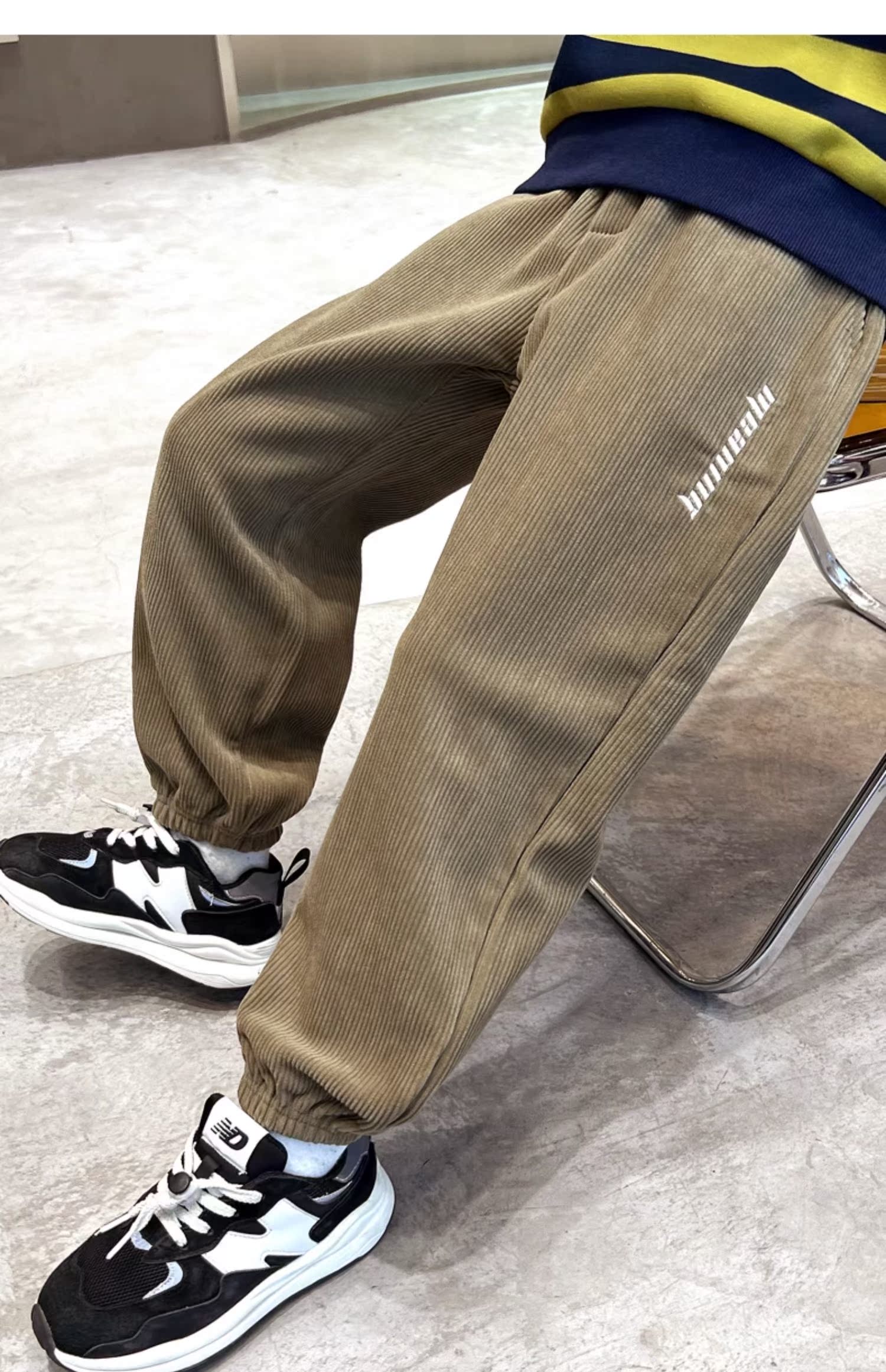 男童裤子春秋款灯芯绒运动裤秋季儿童2023新款男孩帅气休闲长裤潮
