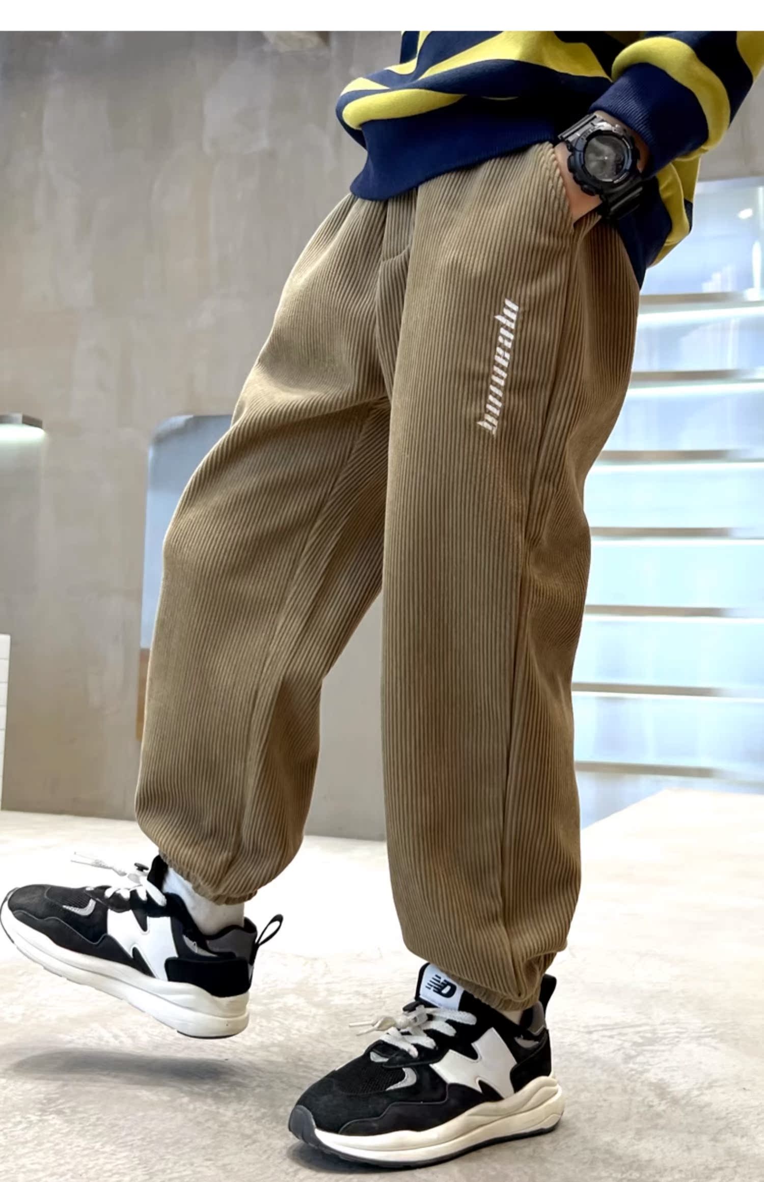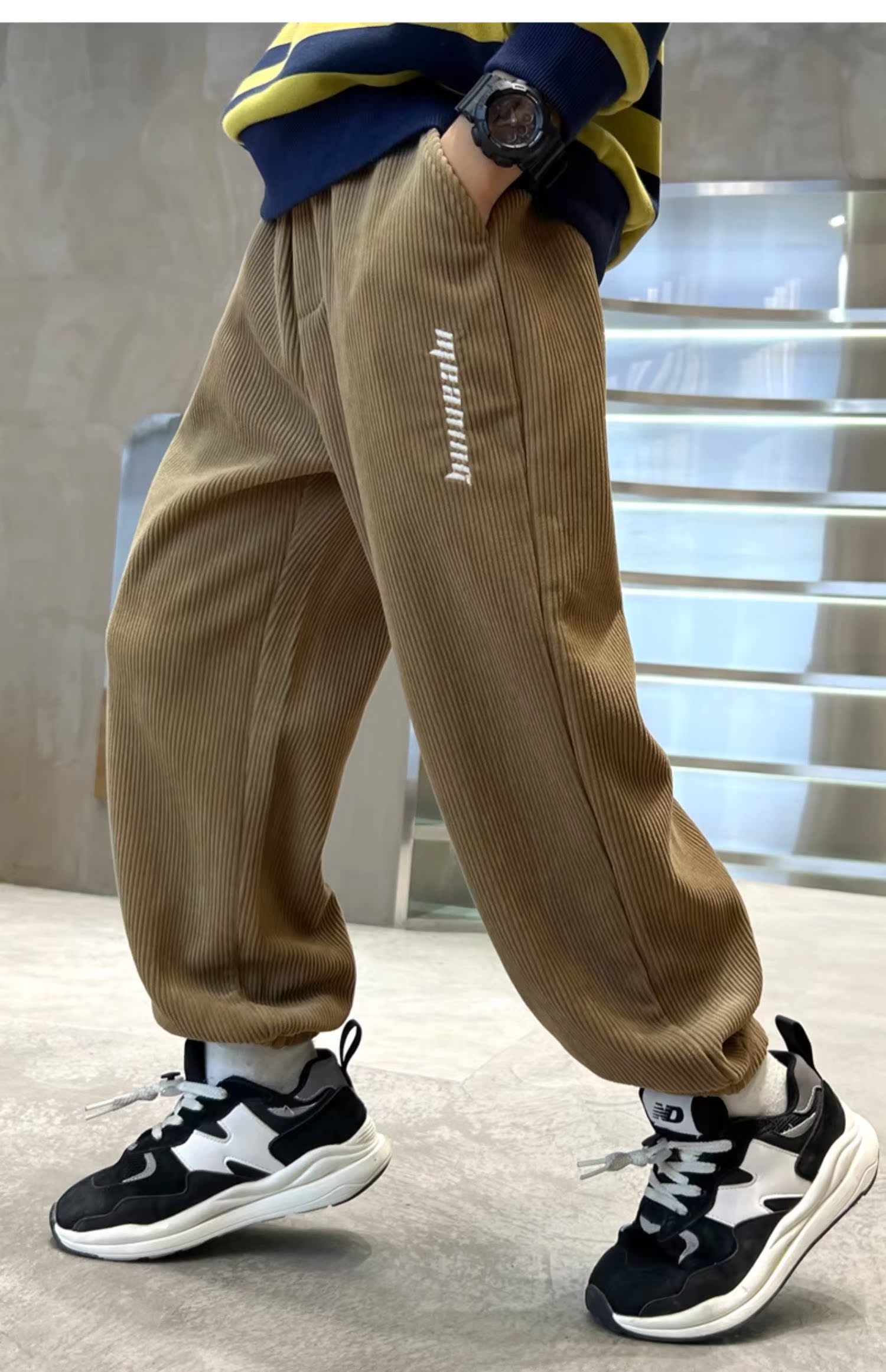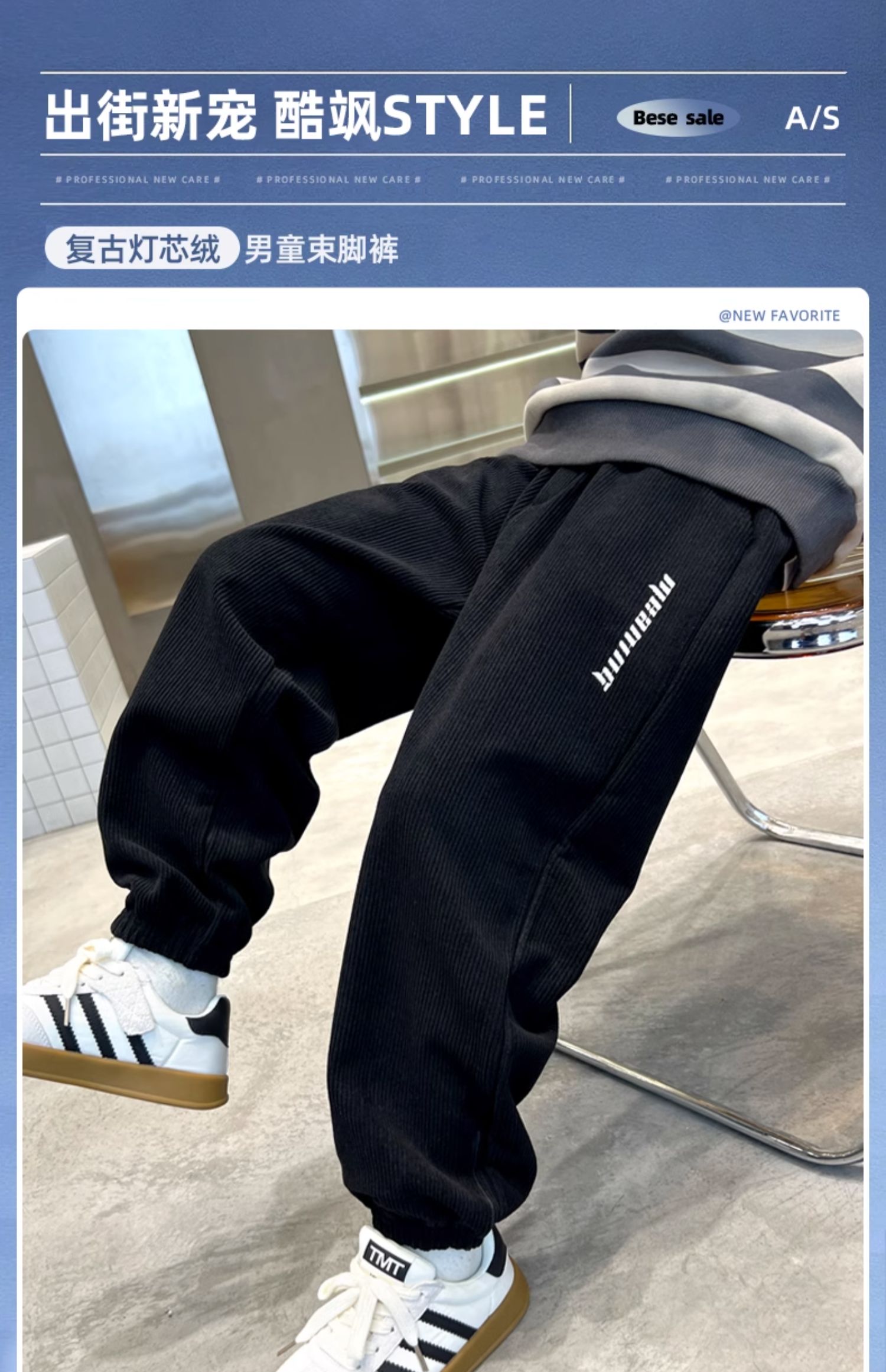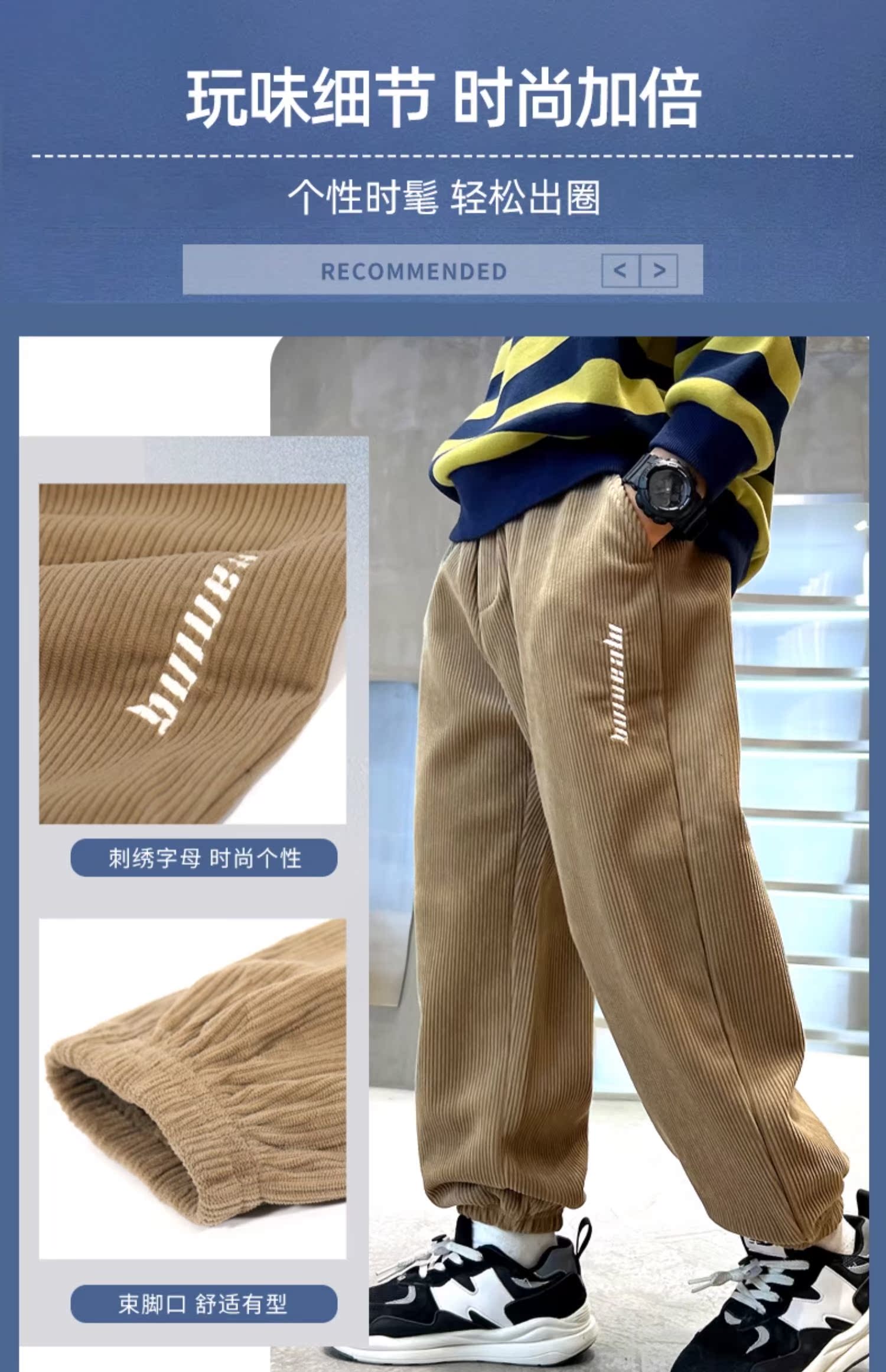 男童裤子春秋款灯芯绒运动裤秋季儿童2023新款男孩帅气休闲长裤潮