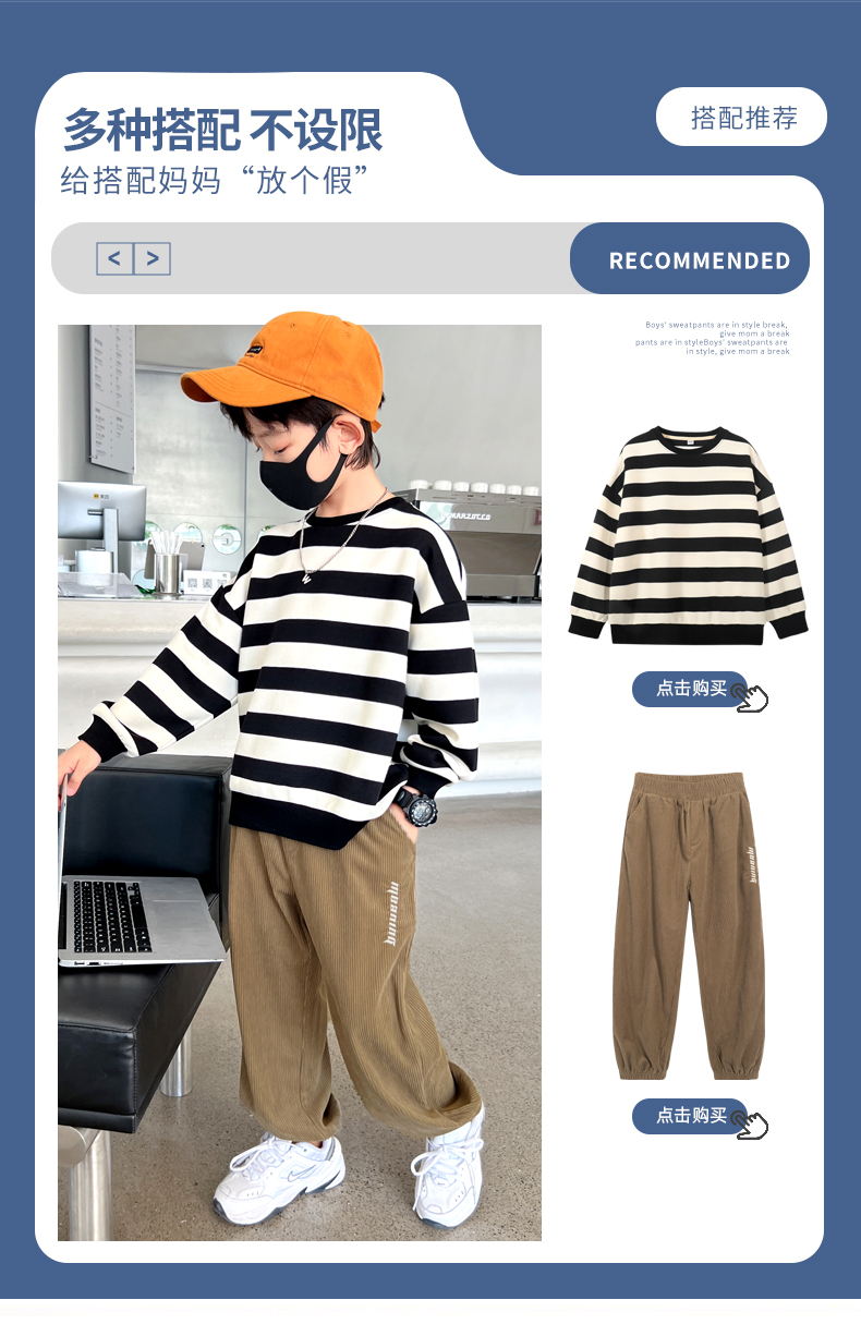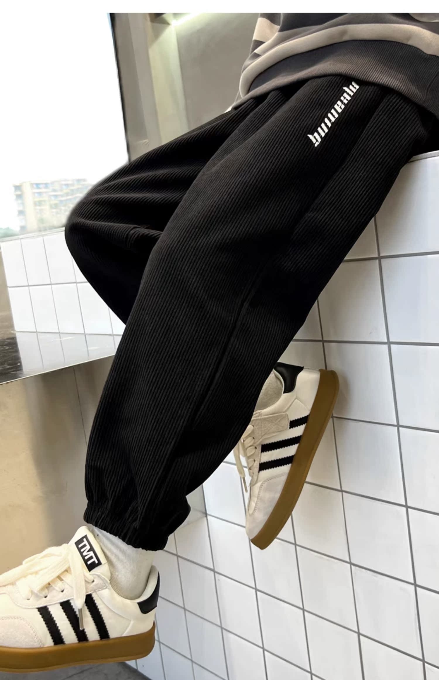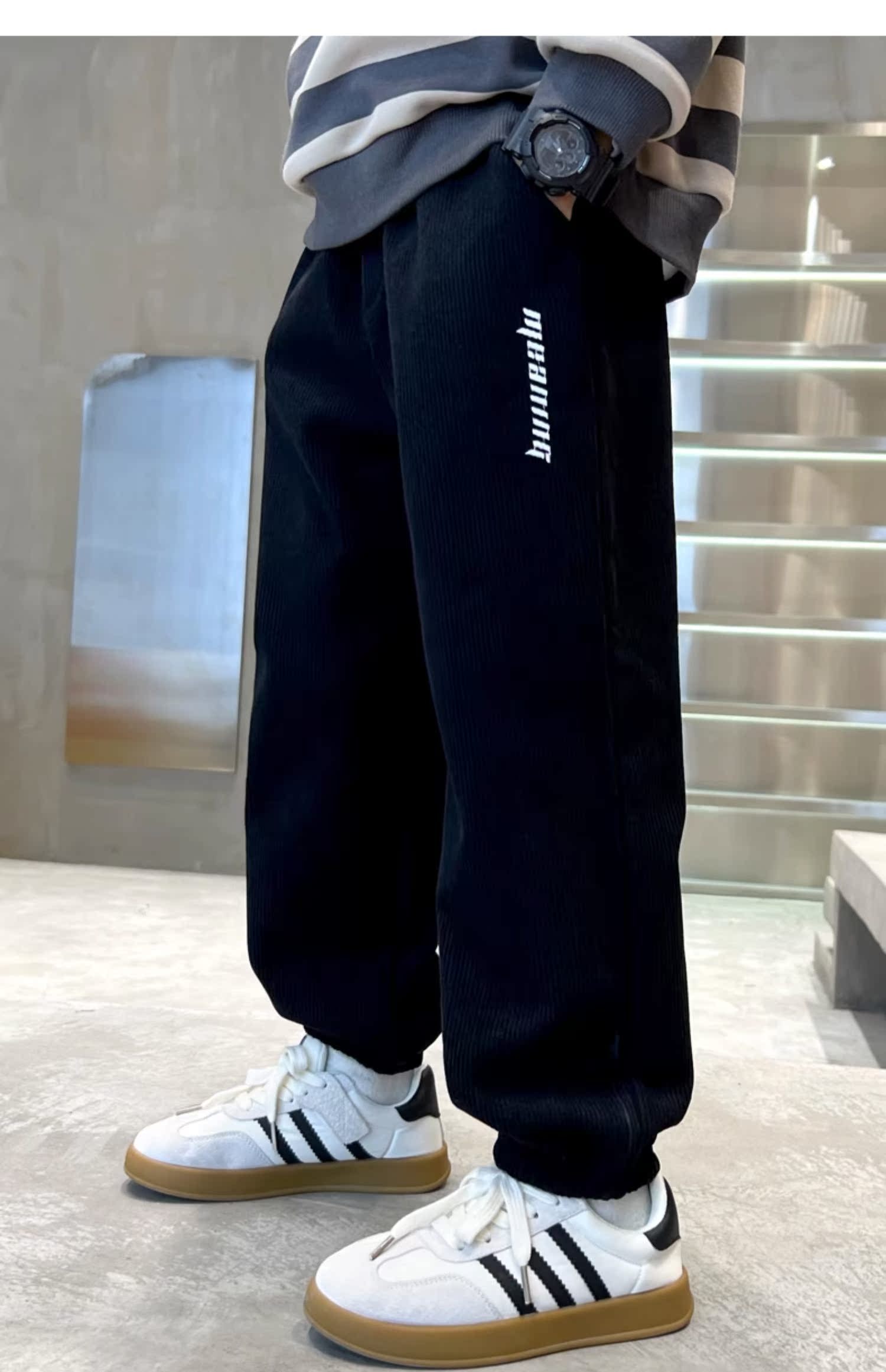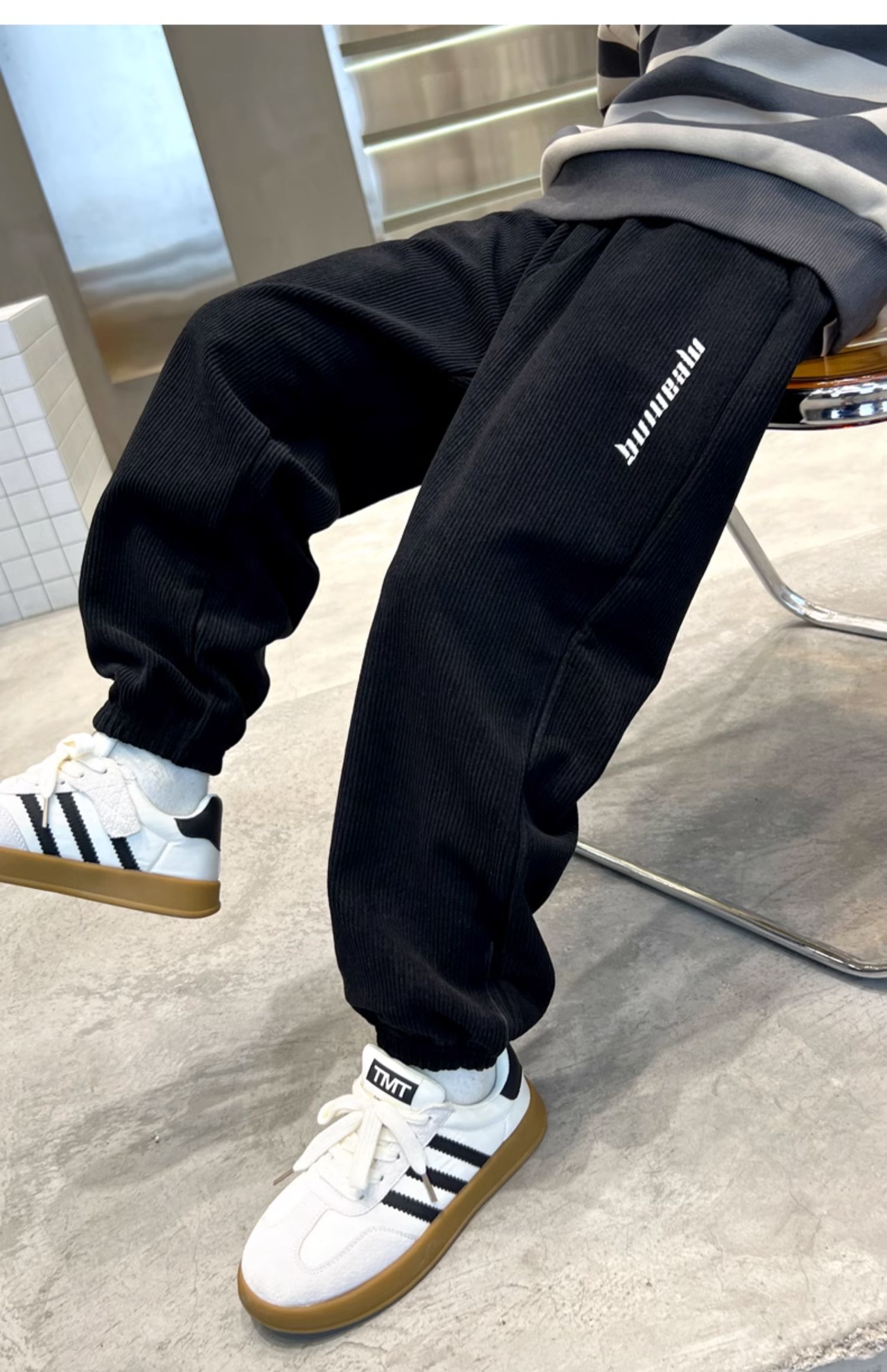 男童裤子春秋款灯芯绒运动裤秋季儿童2023新款男孩帅气休闲长裤潮