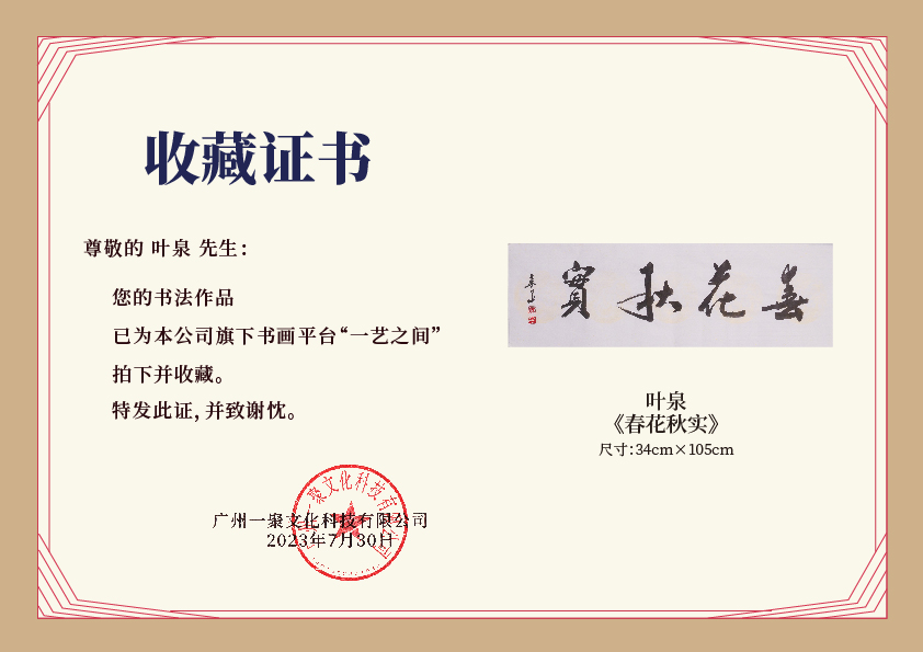 叶泉 书法原作四字吉语30x105CM约三平尺《春花秋实》《海纳百川》《厚积薄发》《家和万事兴》横屏手写纸本宣纸原作作品 本期特供10款,每款仅1张!售完即止[现货包邮]