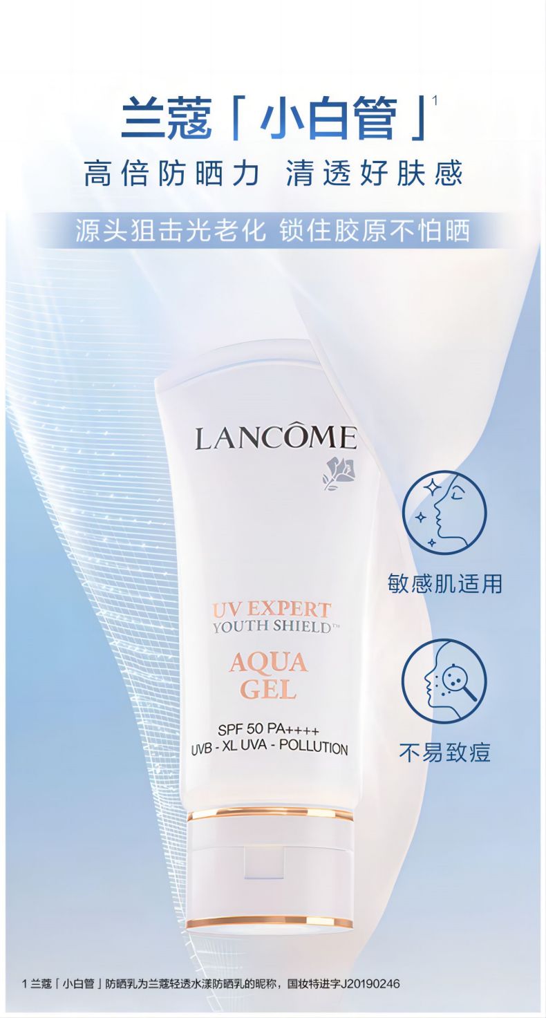 买一送一【天生闪耀】兰蔻小白管防晒霜50ml清爽型 通勤旅行出游