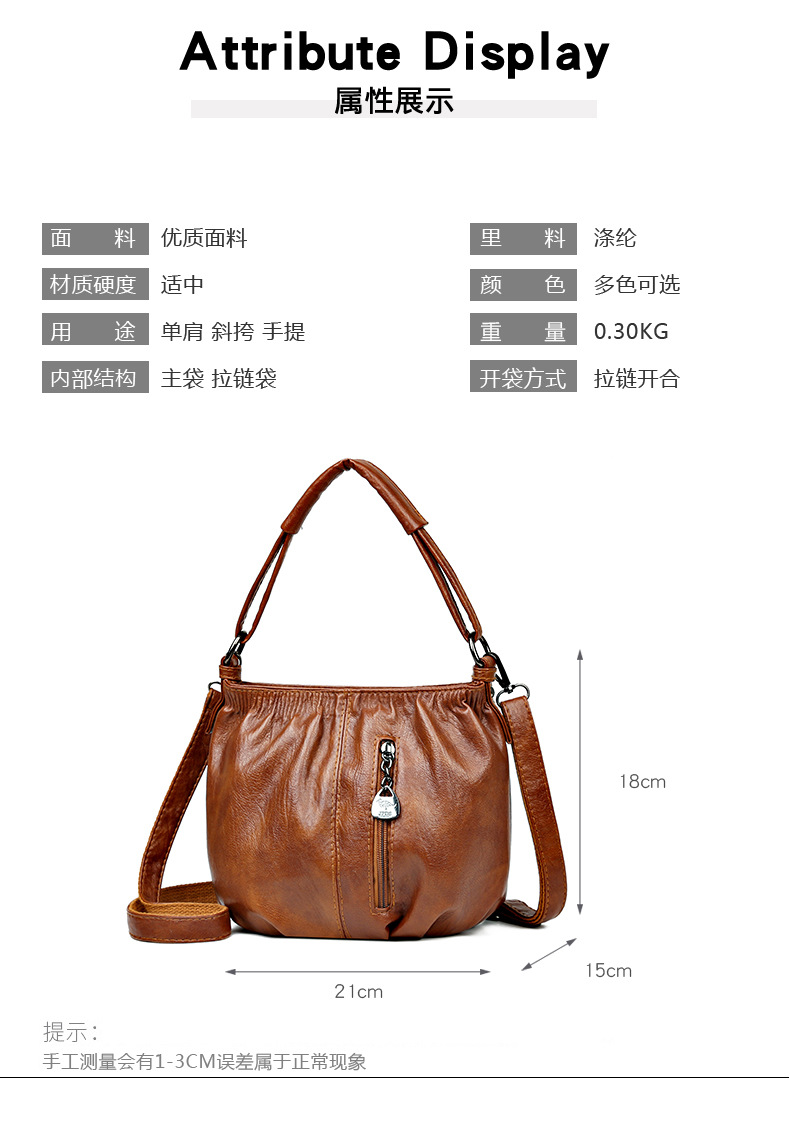 【时髦百搭!女士褶皱包】2023新款女士褶皱包时尚百搭柔软面料可手提单肩斜跨女包,女士褶皱包,柔软面料 穿梭跨境。