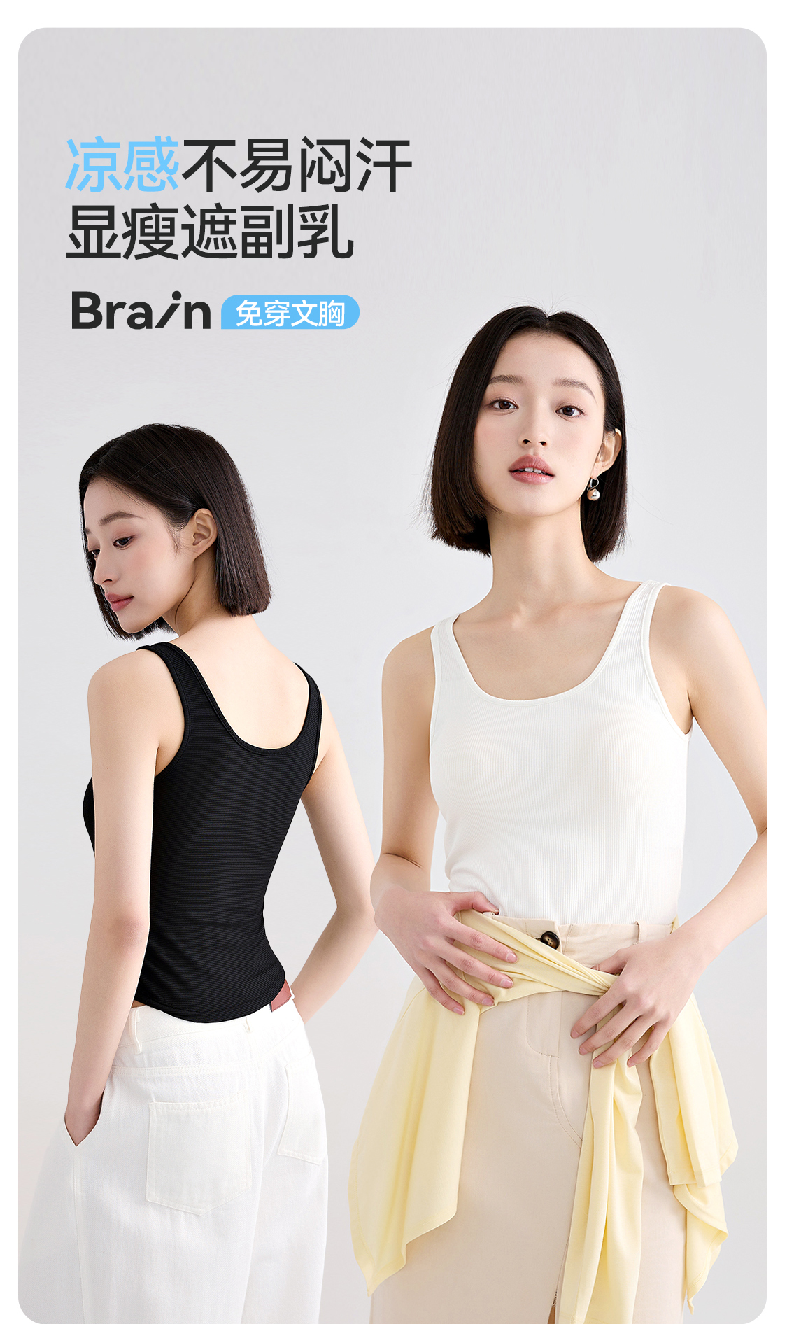 (合作款)特价 内茵带胸垫双U领背心