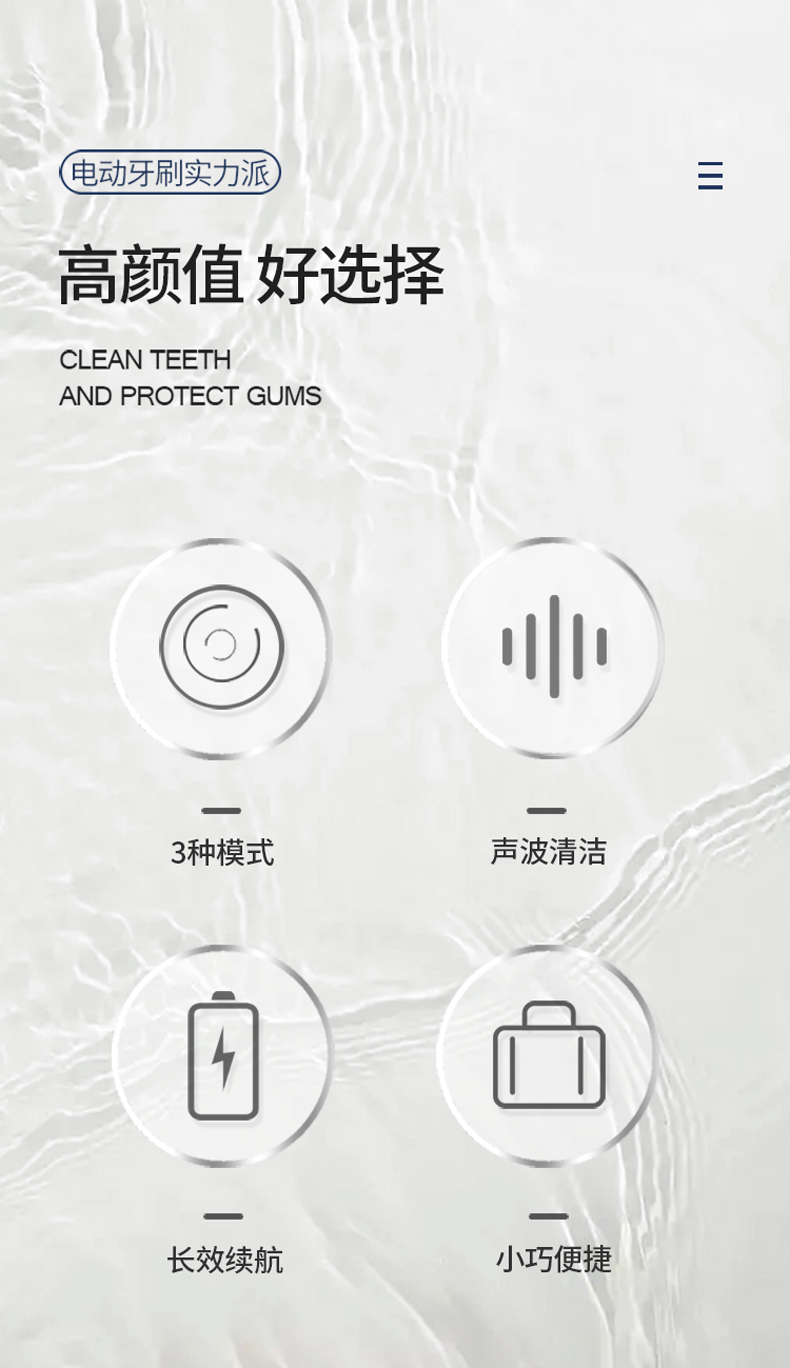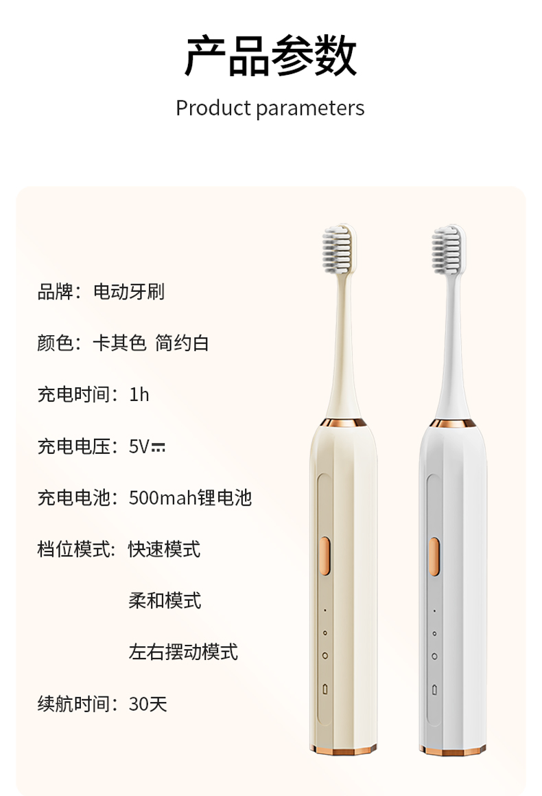 【高频声波电动牙刷 】全身防水 ,3档调节 不伤牙龈 坚固机身,经久耐用(送三个刷头)