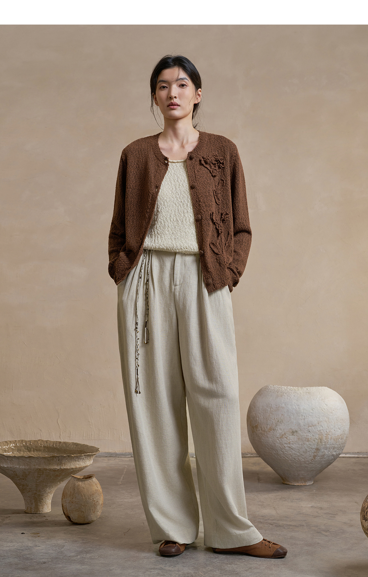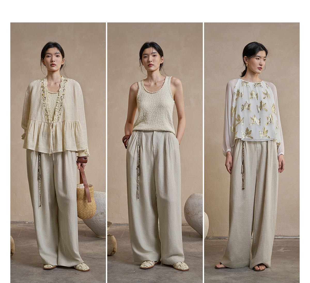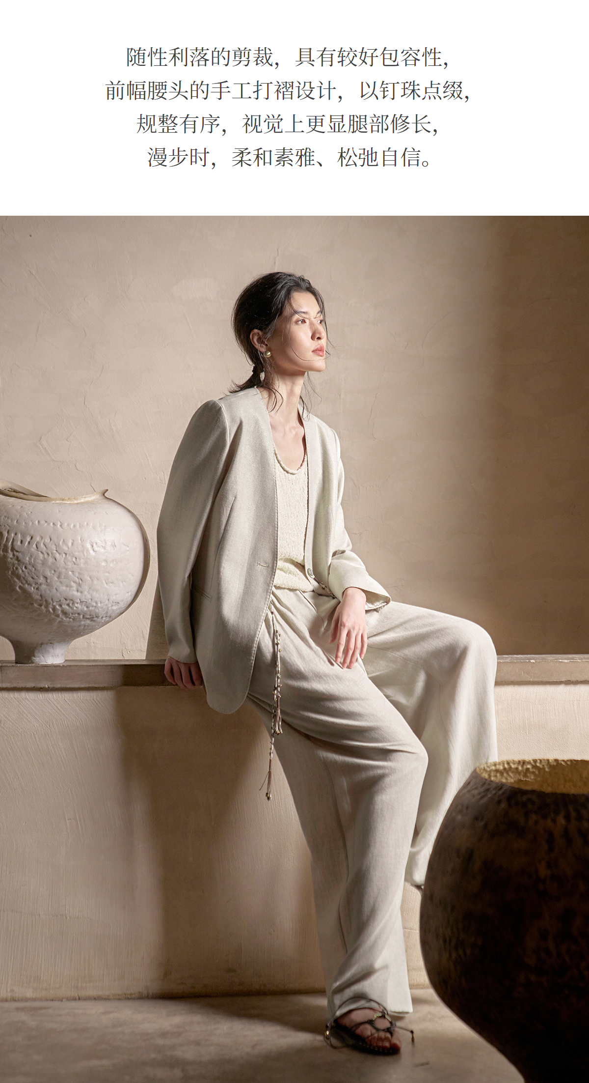 【林栖设计小店】手工层褶|阔腿裤钉珠百搭宽松显瘦2026早春新款长裤子女1961084