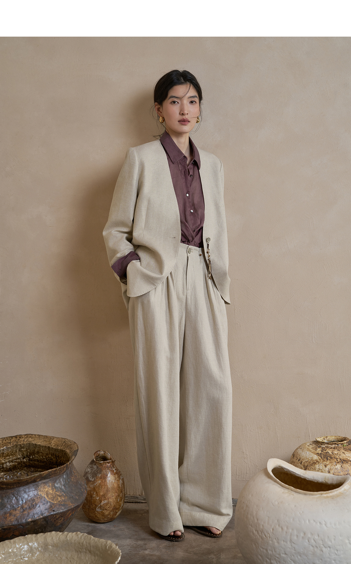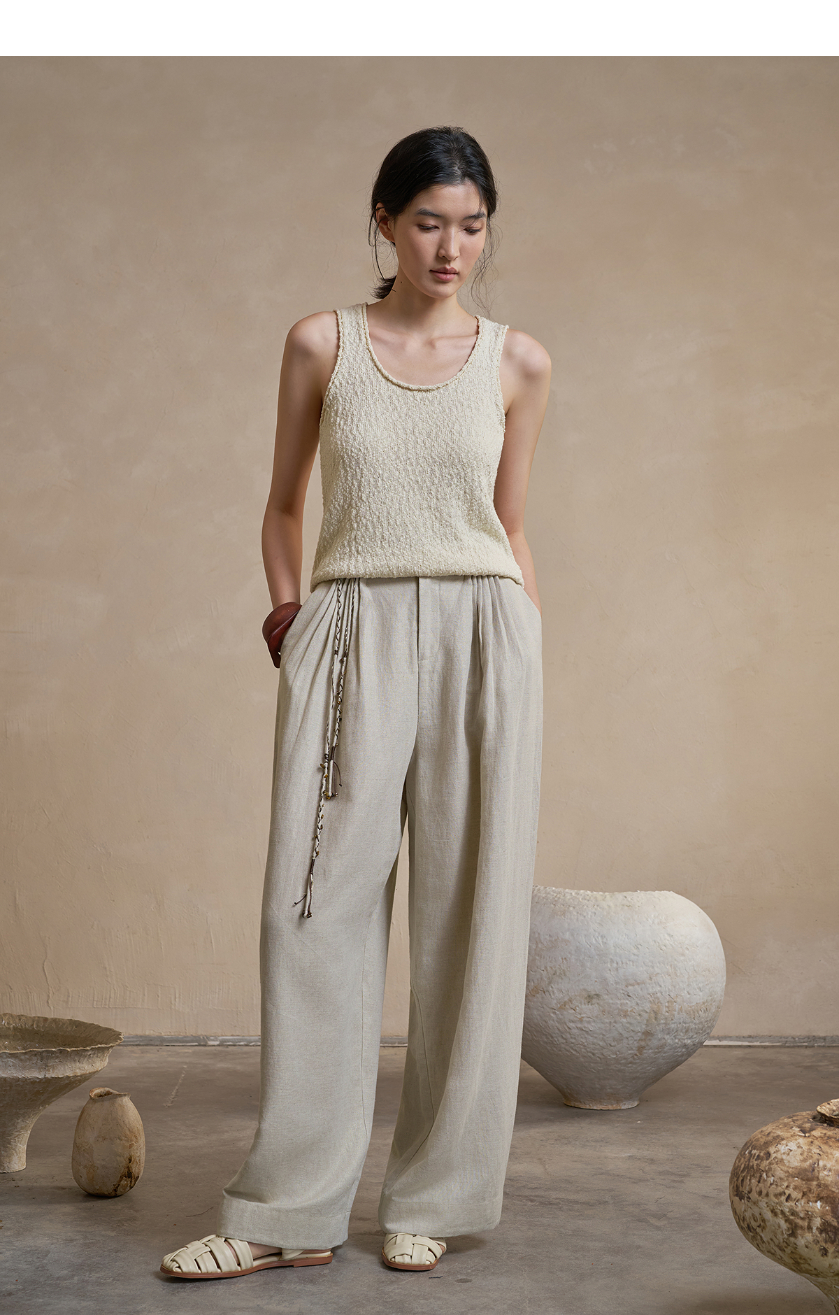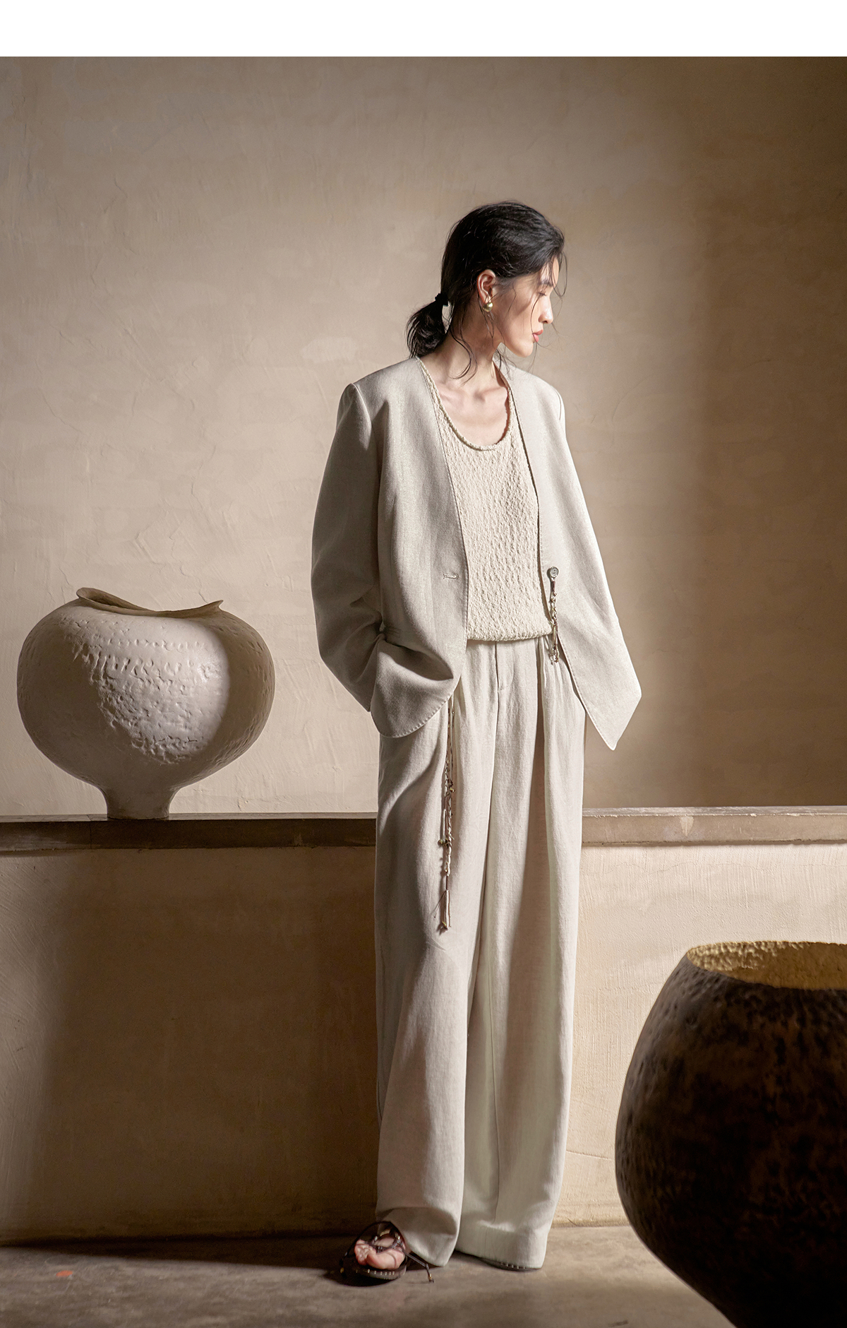 【林栖设计小店】手工层褶|阔腿裤钉珠百搭宽松显瘦2026早春新款长裤子女1961084