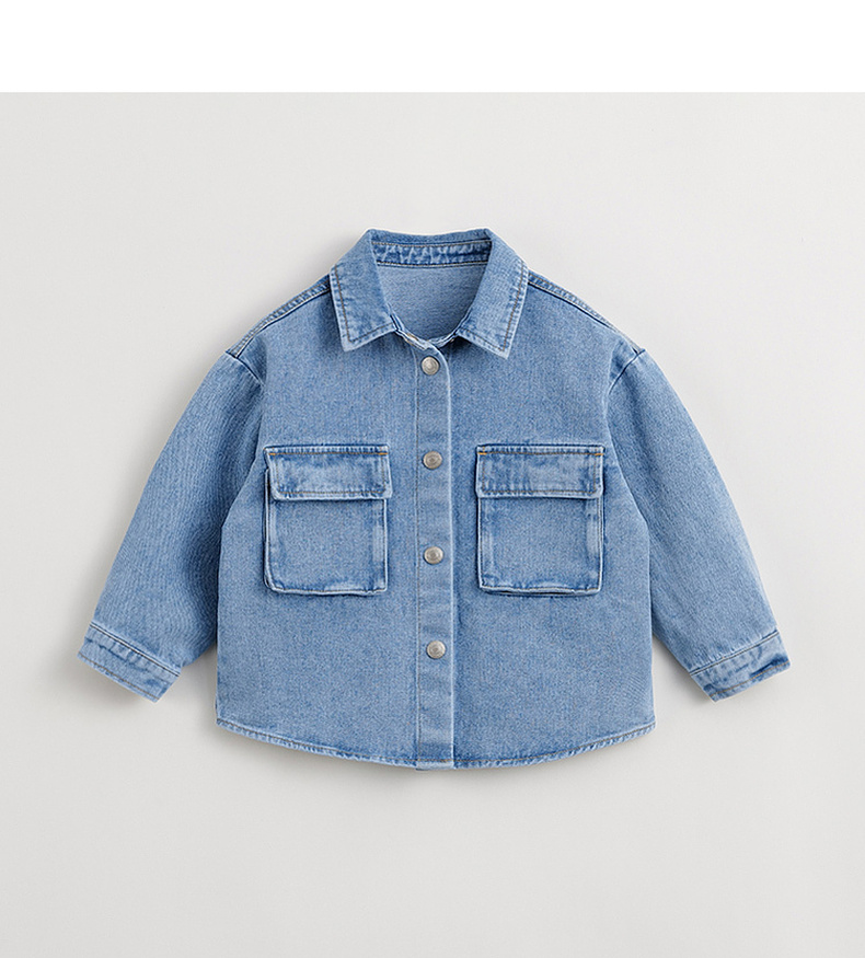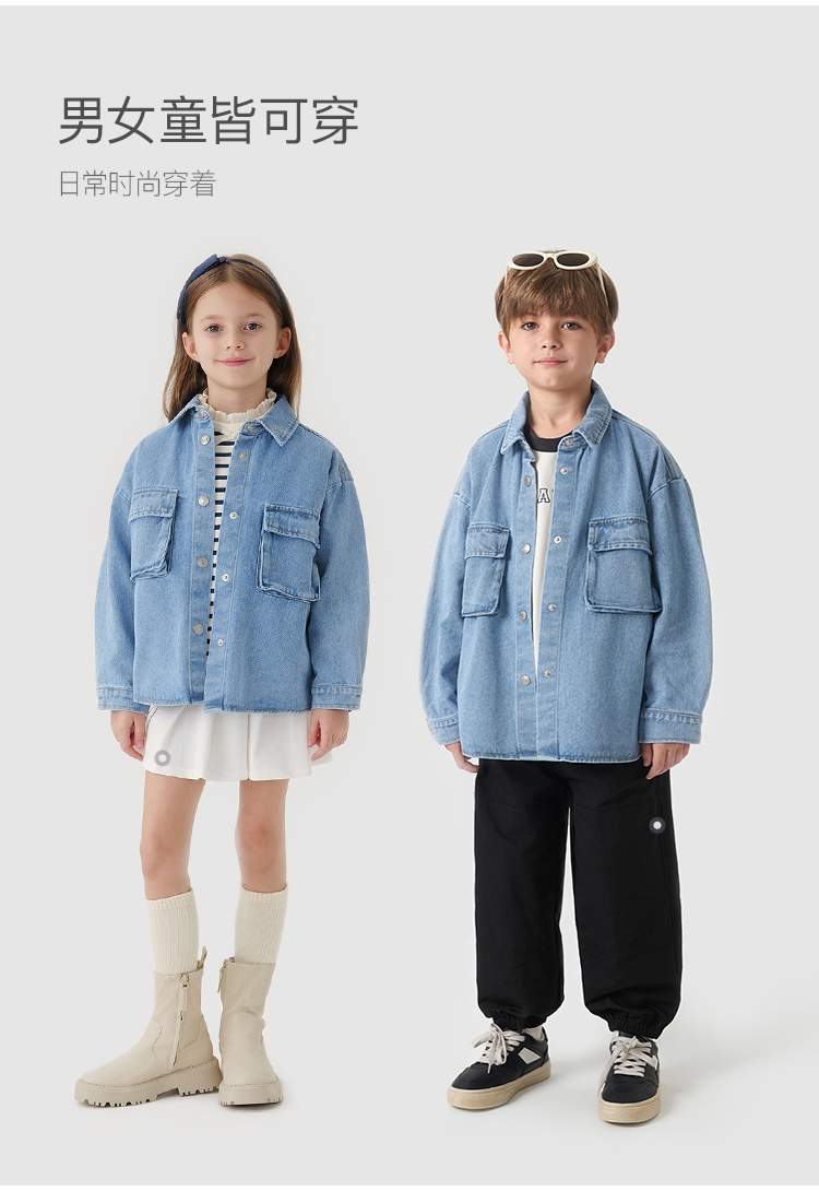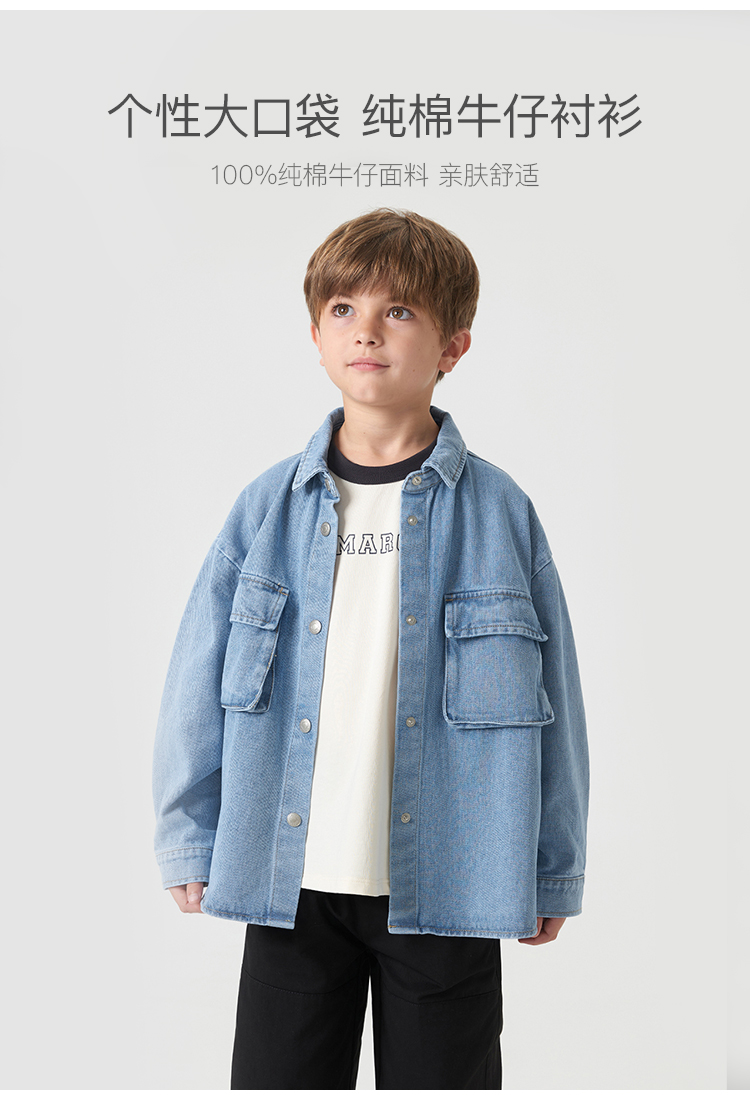 马克珍妮男童大口袋牛仔外套儿童纯棉宽松百搭牛仔衬衫春款240038