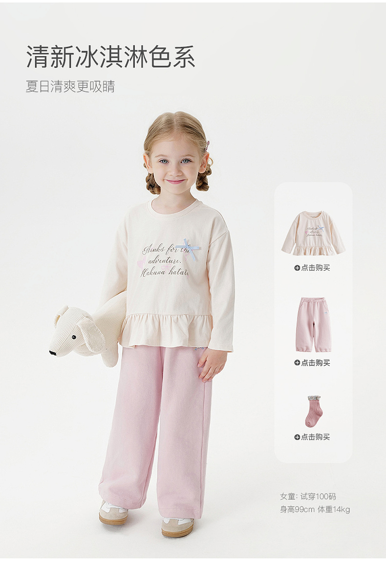 马克珍妮女童彩虹小马软糯直筒裤2025年秋装新款551322