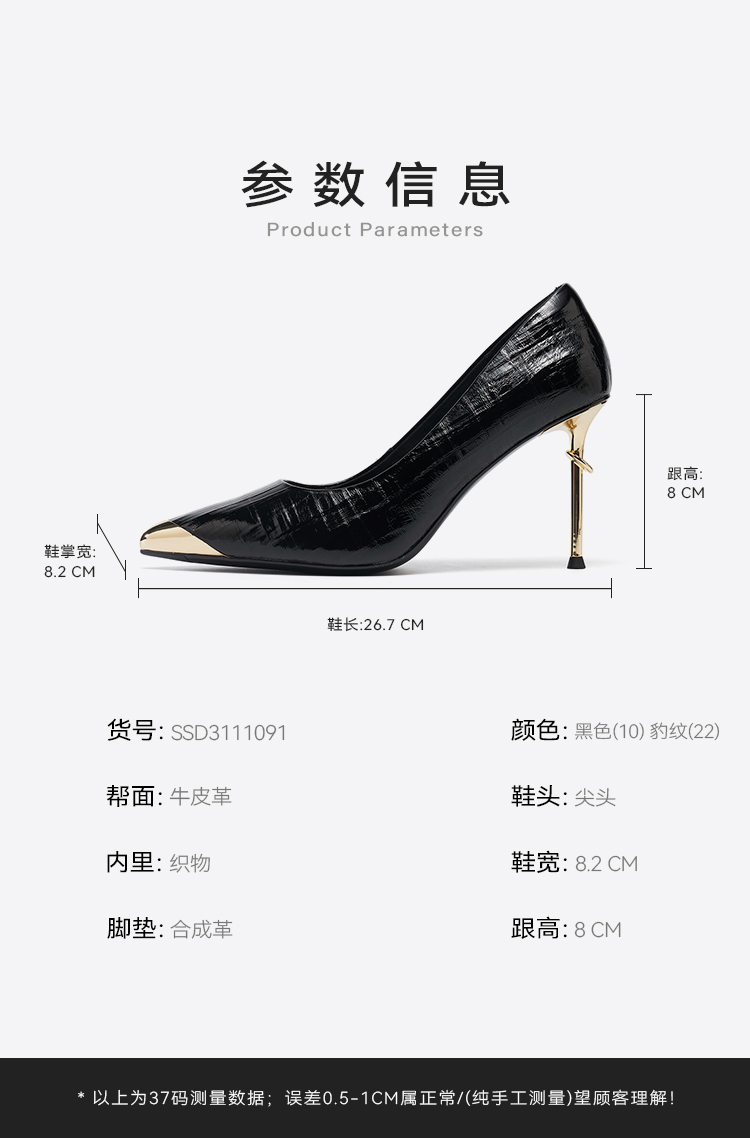 【黑金限定】星期六金属尖头气质细高跟SSD3111091