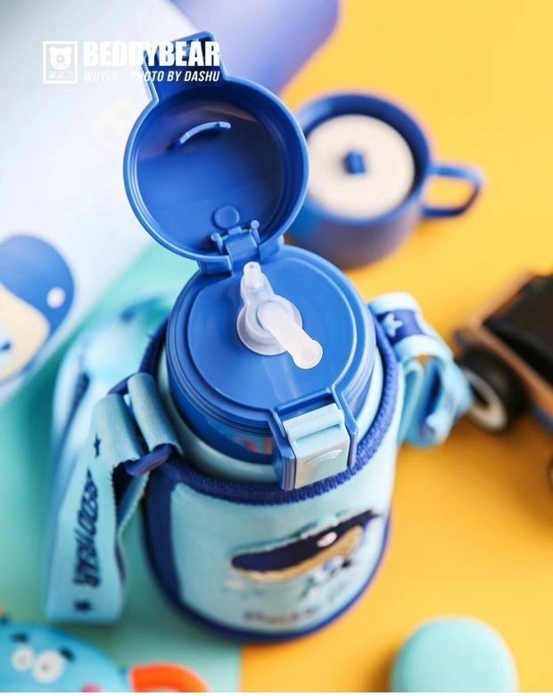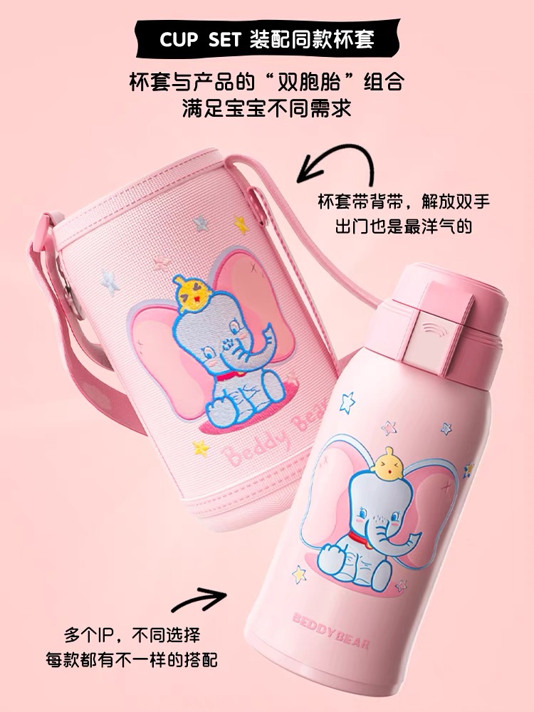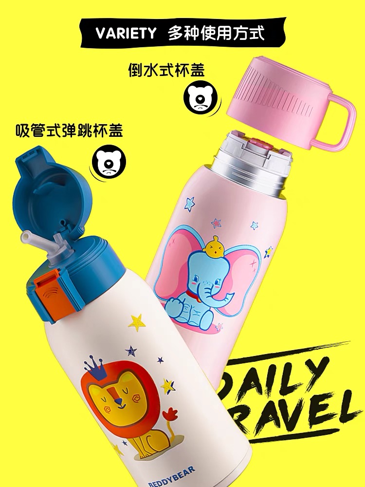 【品牌直发】【3D浮雕新复古萌宠系列儿童杯】杯具熊保温杯 双杯盖 儿童杯 600ml (母婴)