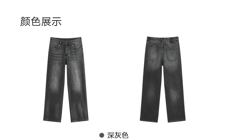 GXG男装 深灰水洗直筒牛仔裤百搭长裤 24年秋G24X053030