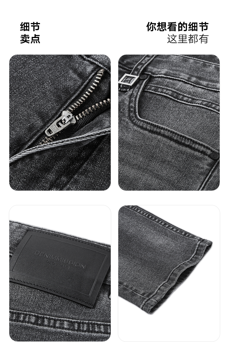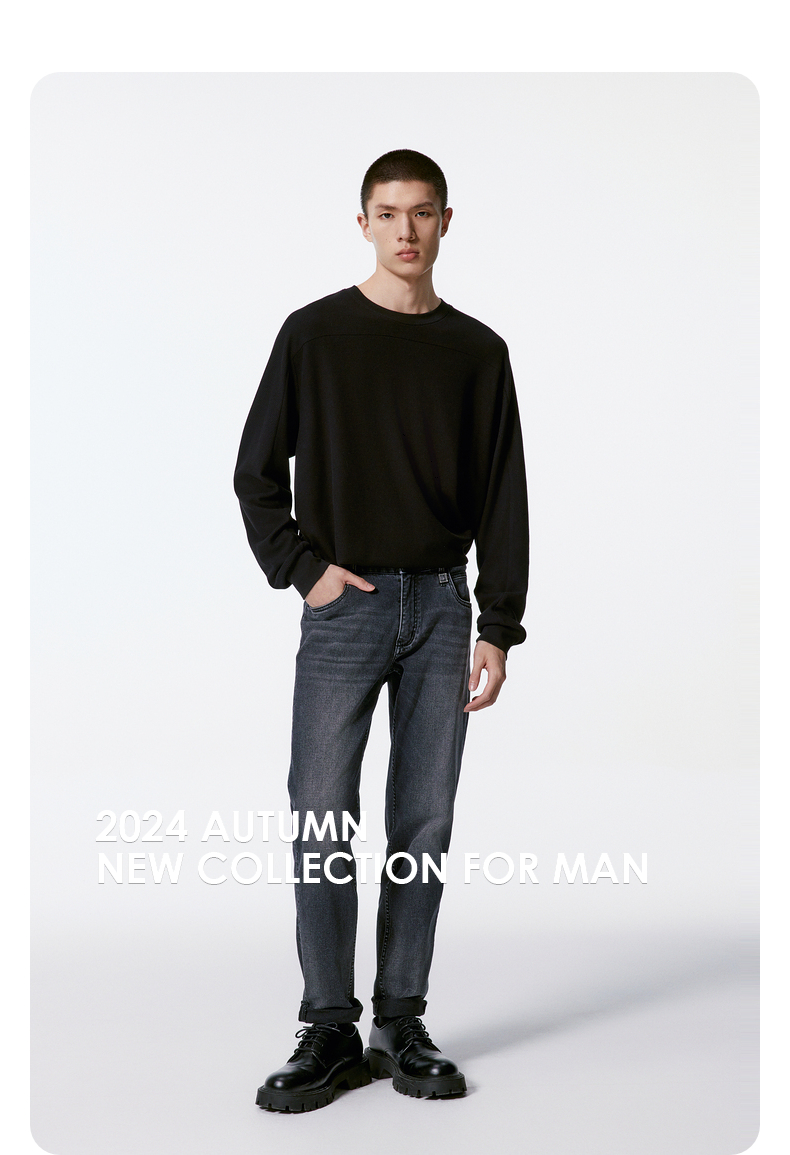 GXG男装 复古经典黑色修身耐磨四面弹力直筒牛仔裤 2025秋季新品