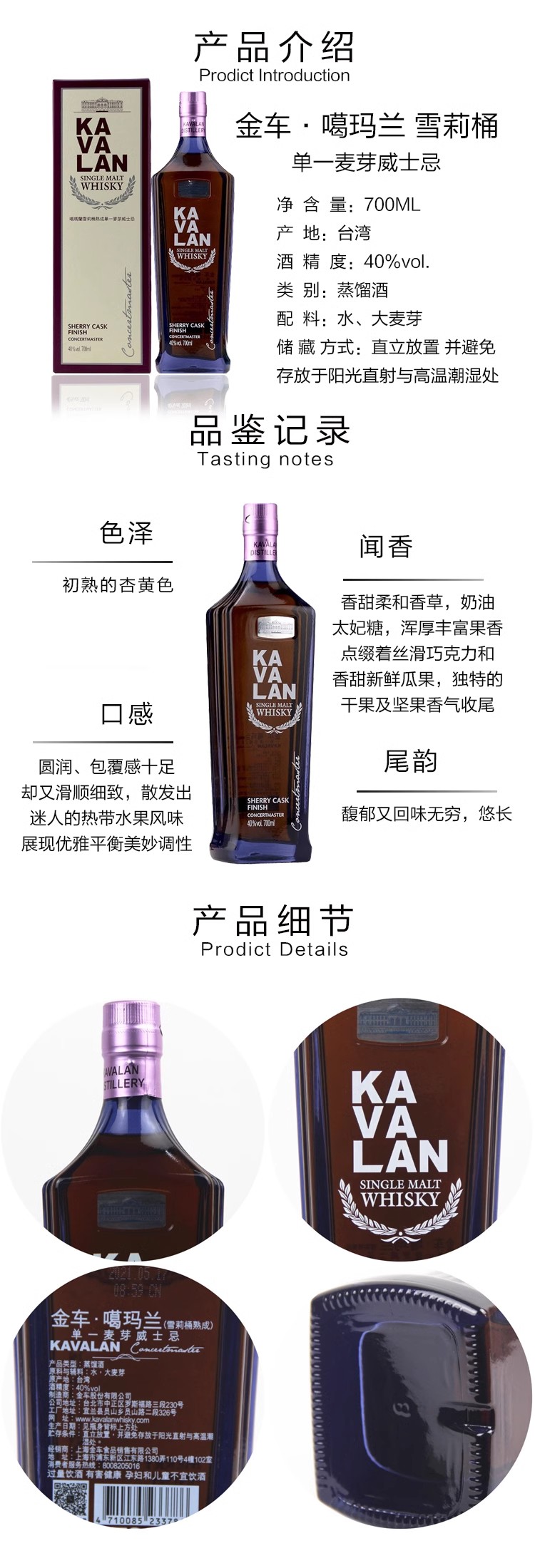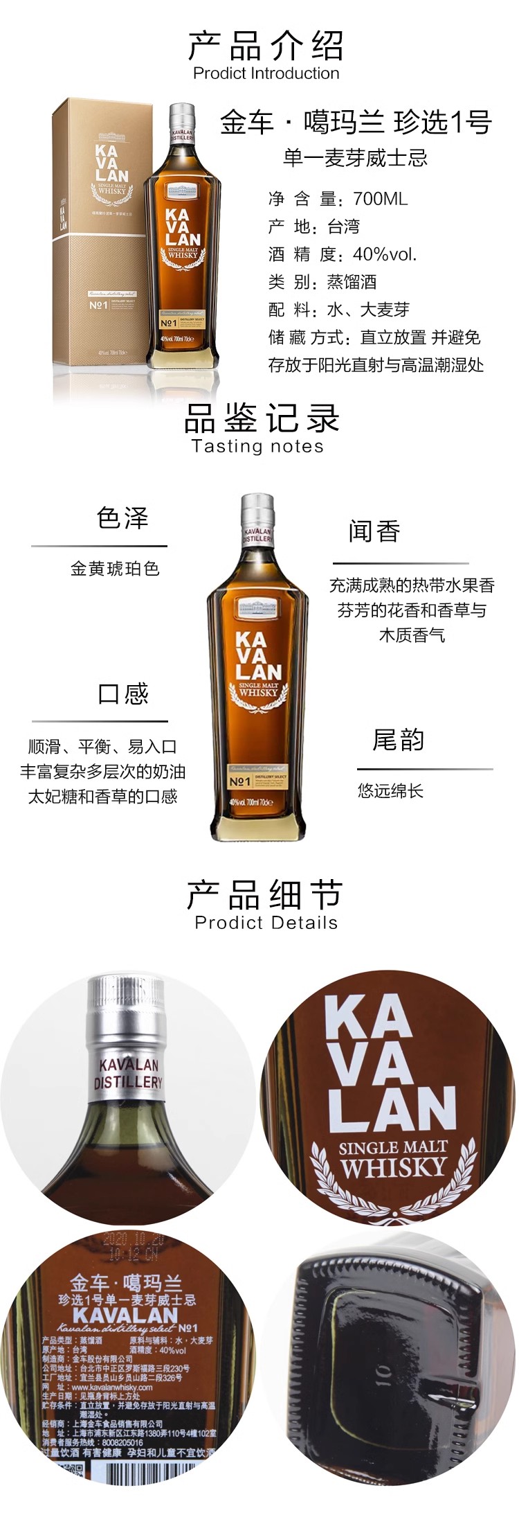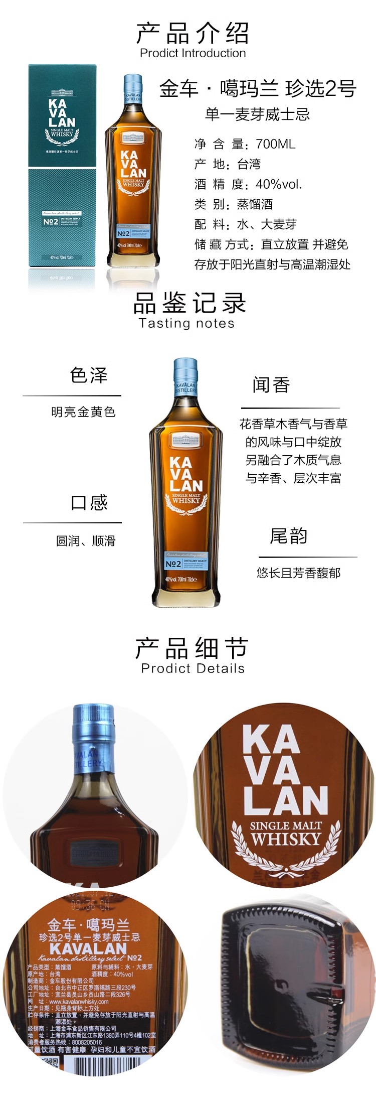 金车噶玛兰威士忌珍选1号2号雪莉桶波特桶波本桶经典台湾洋酒正品