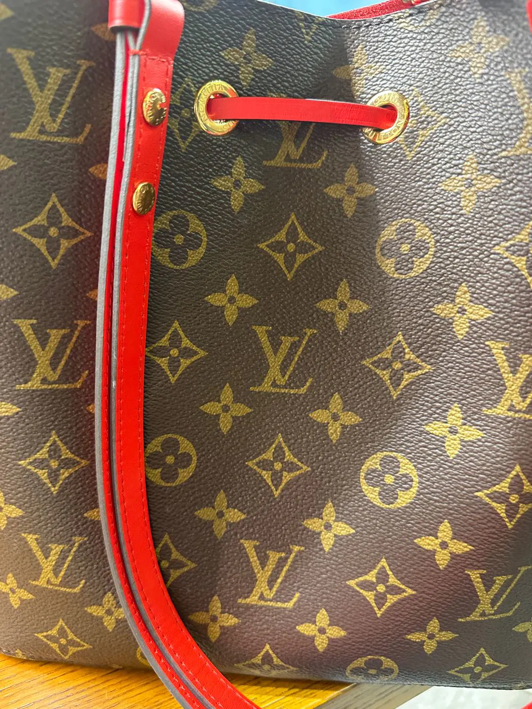 正品二手 Lv noe 红色 老花 水桶包🥳 98新 26×25 配件:肩带 防尘袋 盒子。热情似火