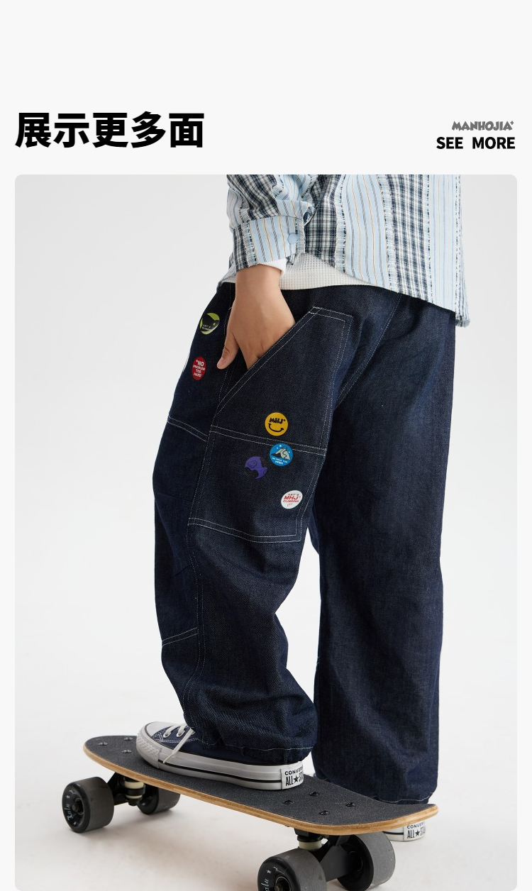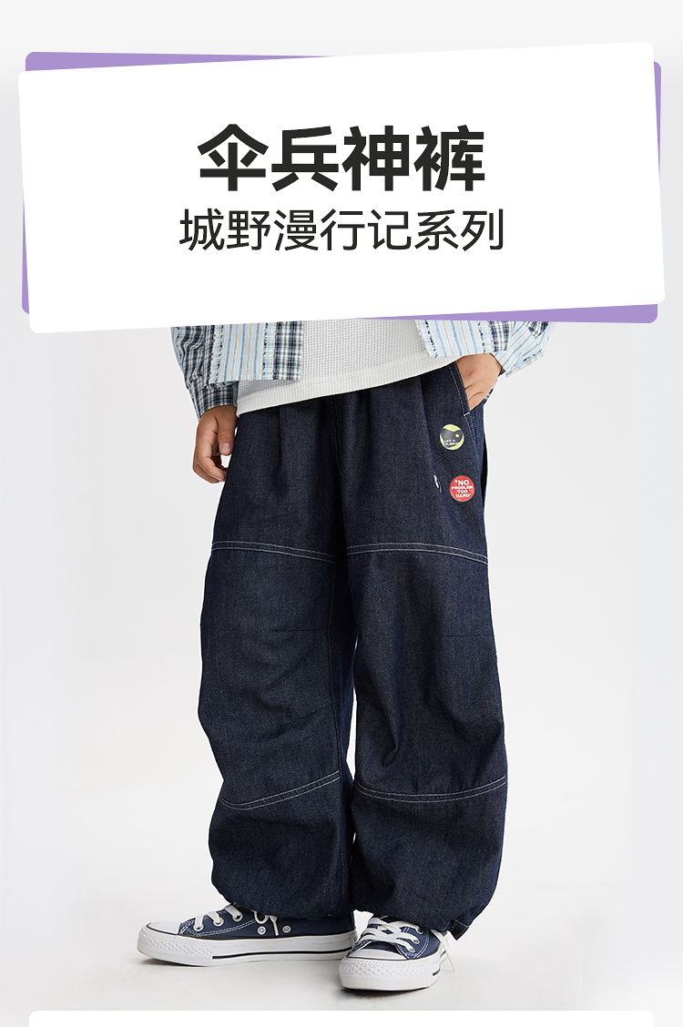 【shé来运转】漫画家24国风新中式卷云如意提花牛仔拜年裤长裤