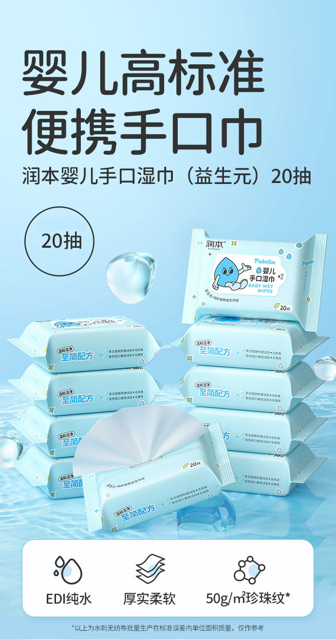 【润本湿巾3包装】呵护宝宝娇嫩肌肤。温和无刺激,0添加,安全无忧。用心打造每一片,为青春妈妈们提供放心选择;每一次的湿巾擦洗,都是对宝贝的爱护和呵护!