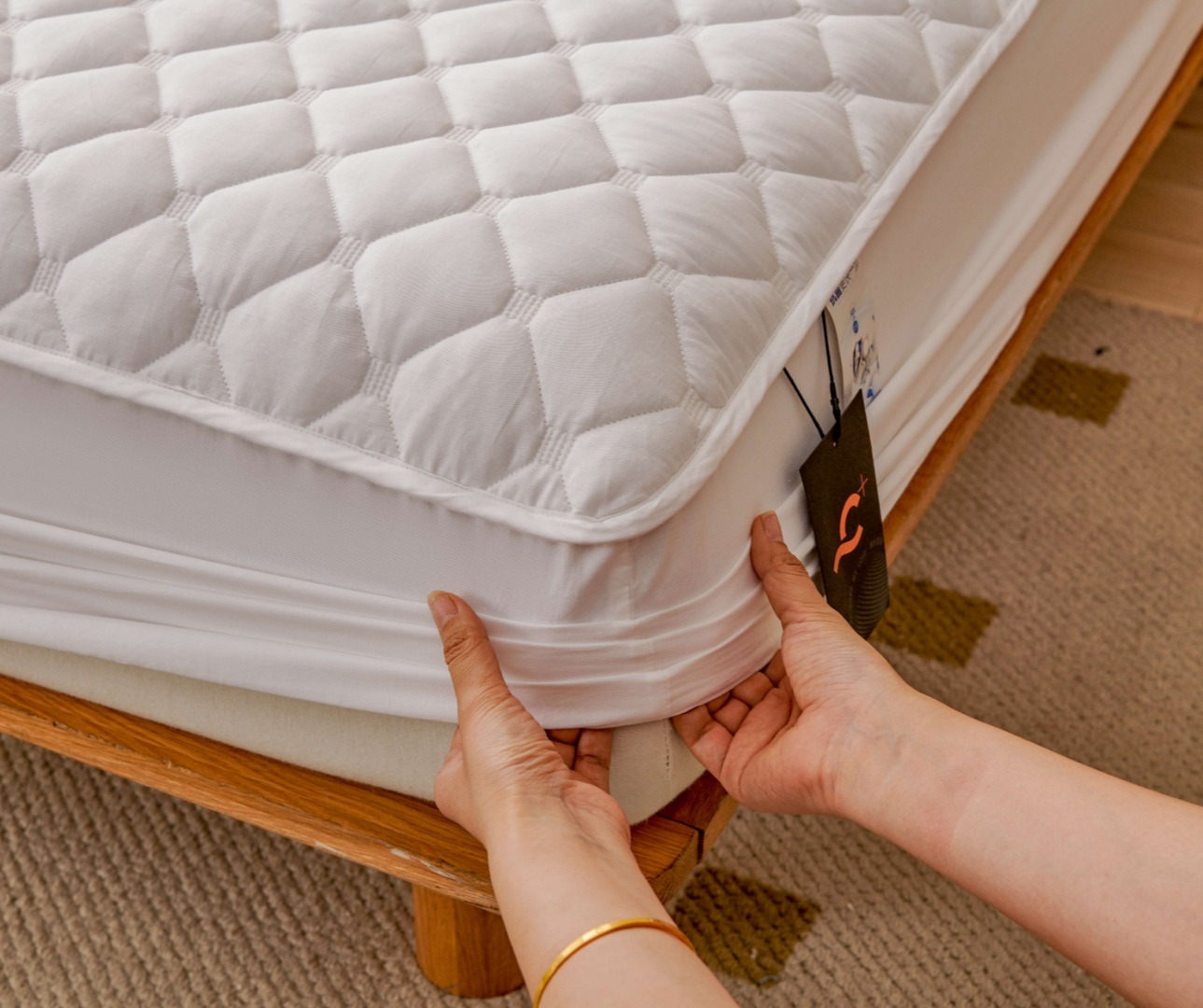4、四周笠边固定,整体围绕,360度保护,可以更加牢固的固定在床垫上,整洁防滑。
