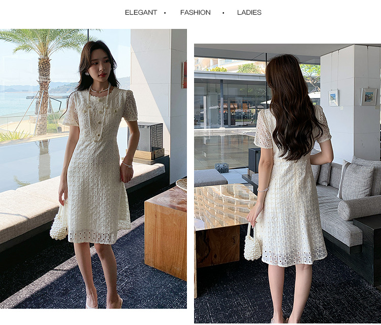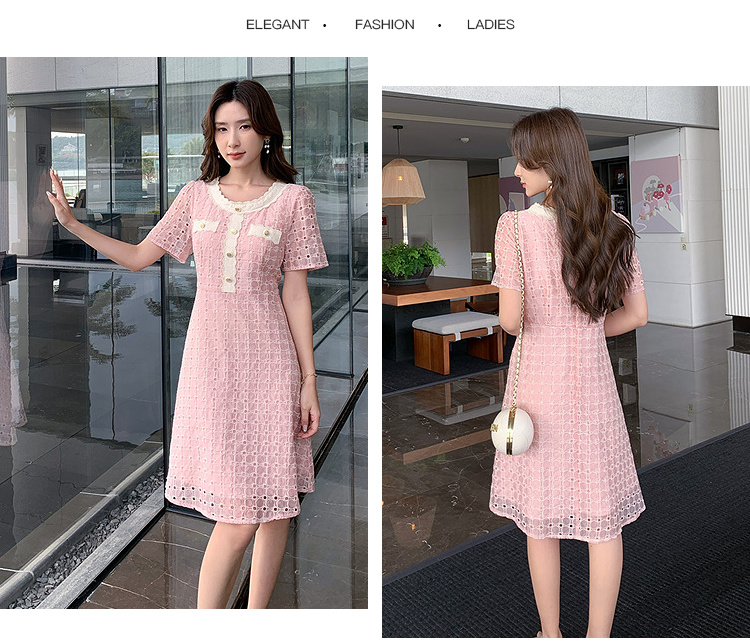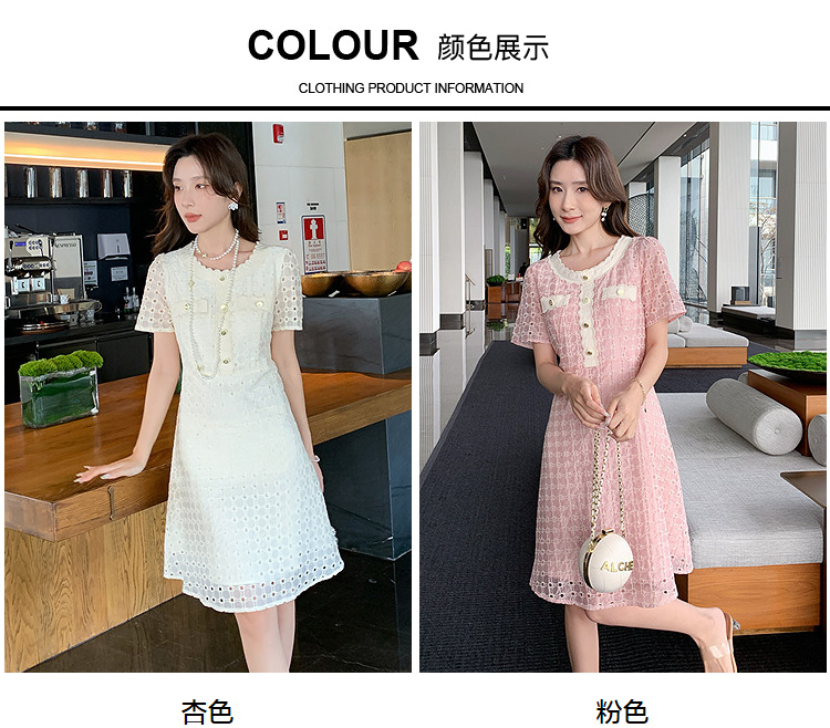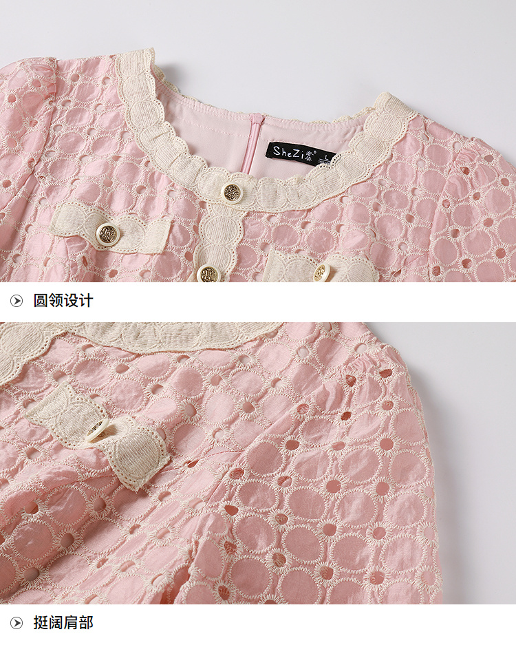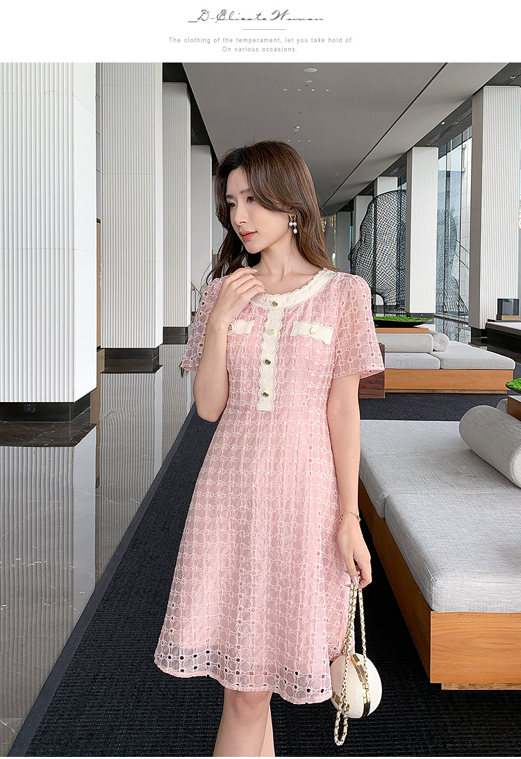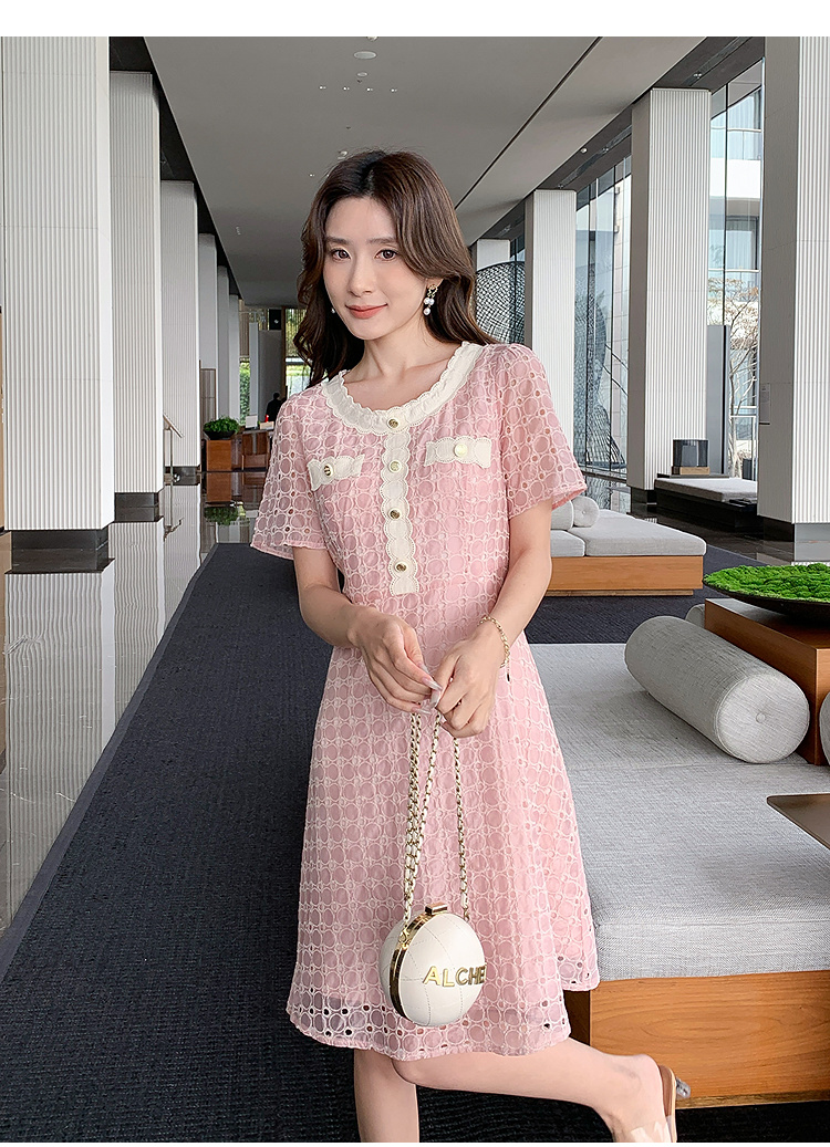【清仓超15天不保价】奢姿大码女装2025夏季镂空减龄连衣裙胖妹妹假口袋装饰时尚裙子9952890427