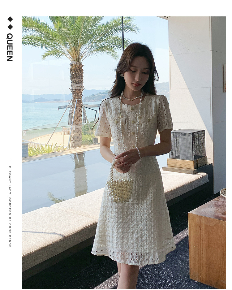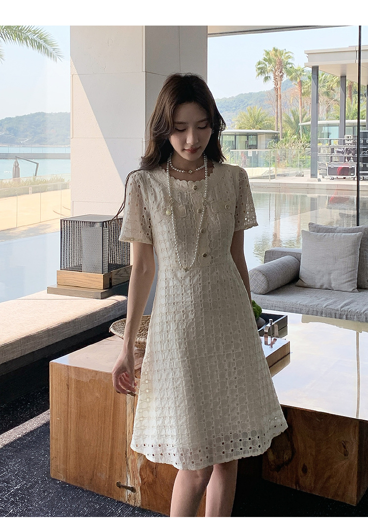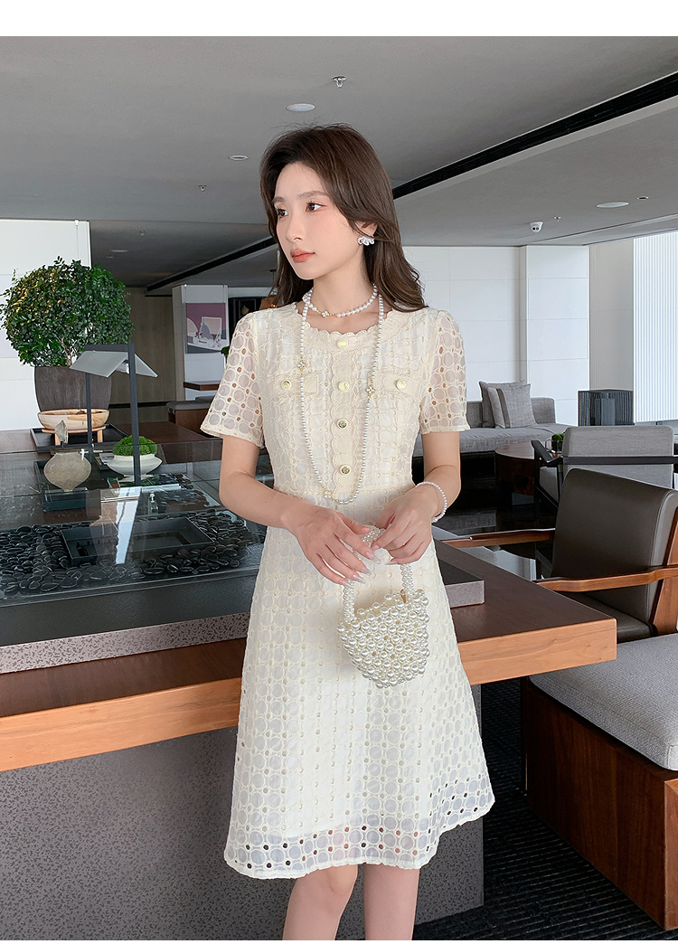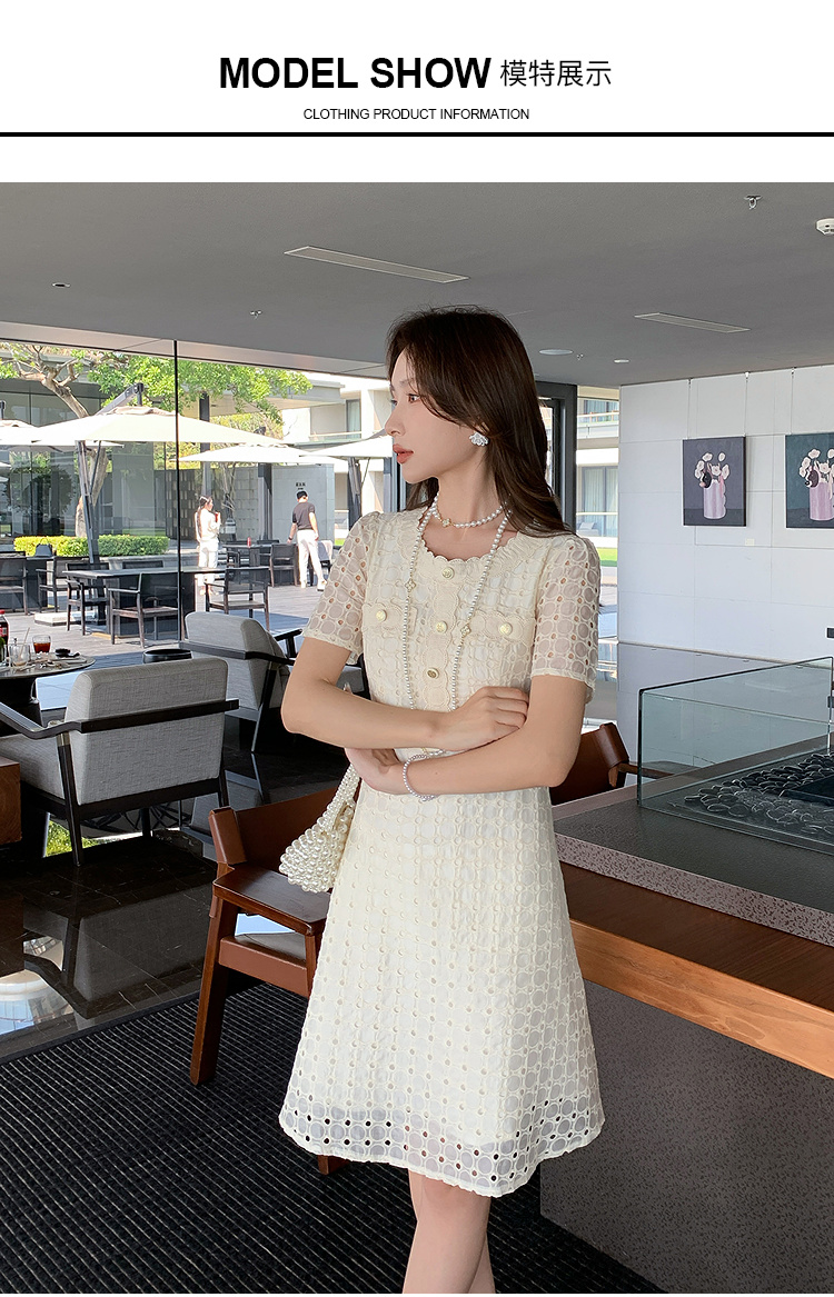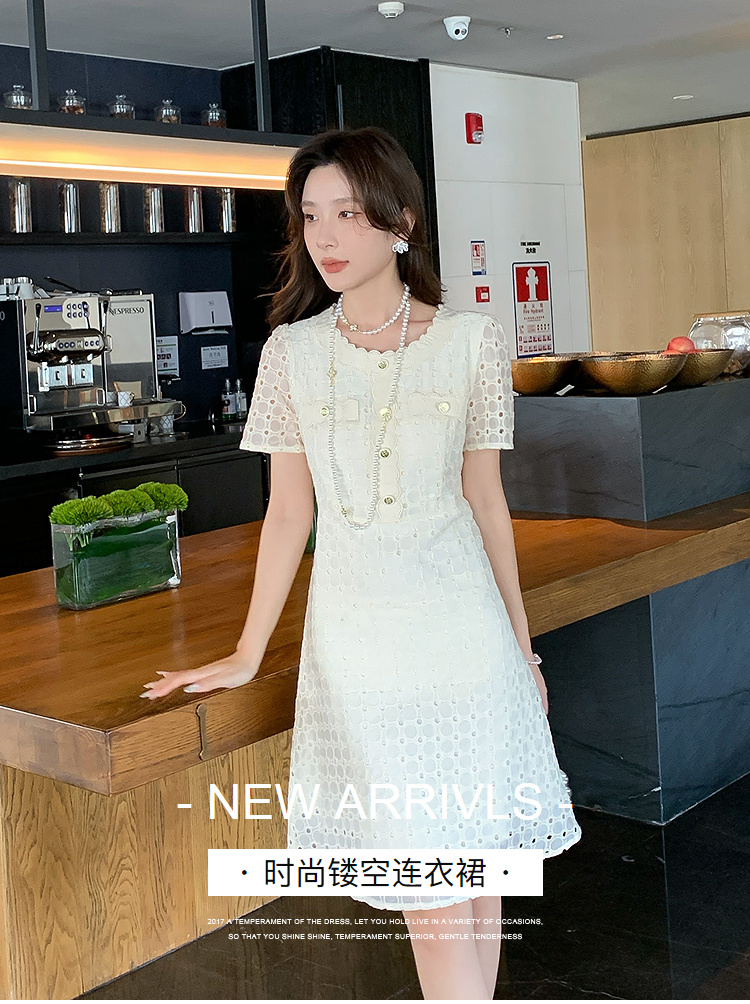 【清仓超15天不保价】奢姿大码女装2025夏季镂空减龄连衣裙胖妹妹假口袋装饰时尚裙子9952890427