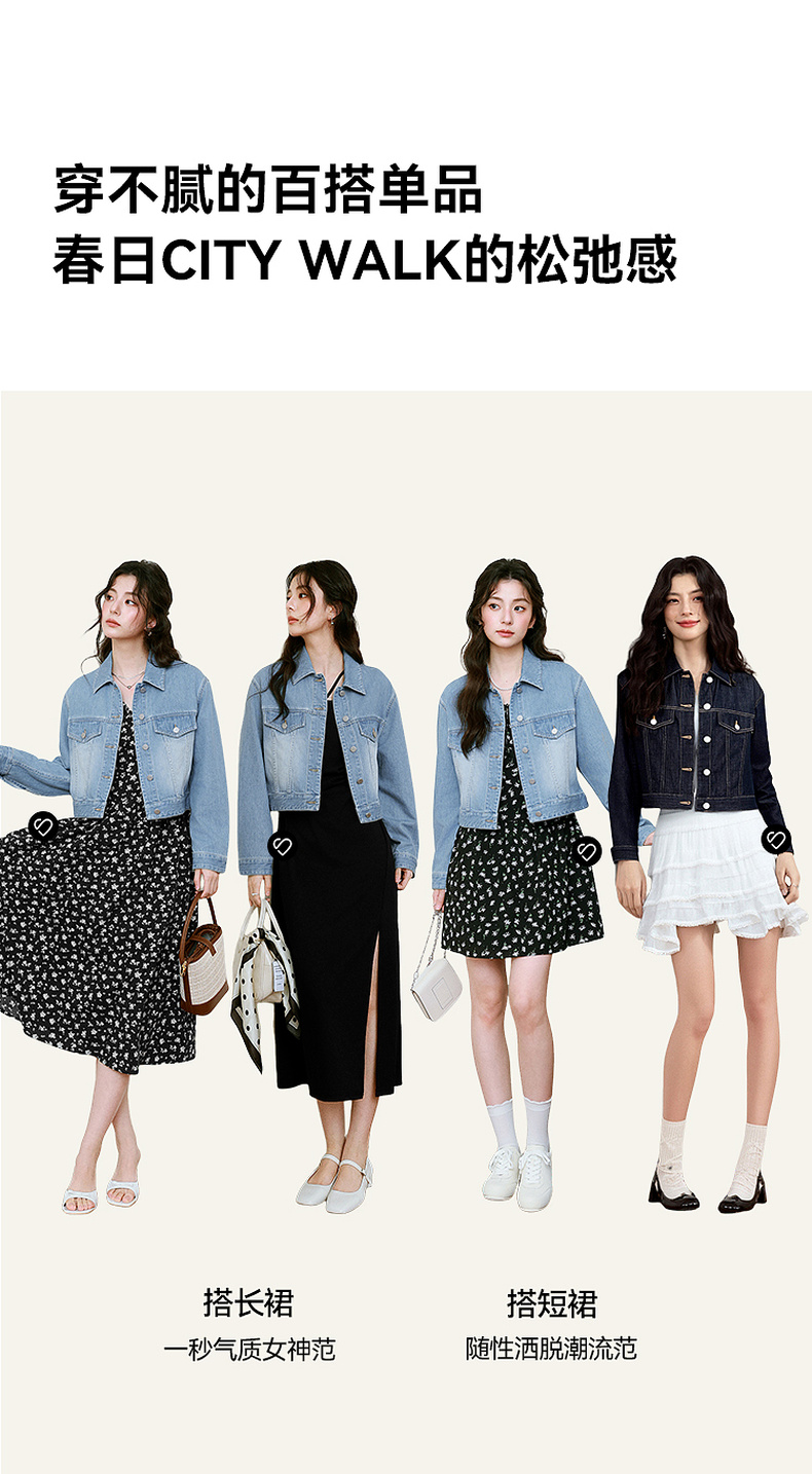 【严选】诗凡黎牛仔外套2025年春新款设计感小众百搭显瘦休闲甜酷短款上衣7G3110101