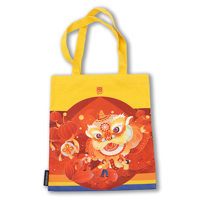 “悦读中国”系列英语分级读物文创,尺寸为65*35cm,采用无底无侧带内兜设计,侧标签印有外研社logo,包身印有醒狮图案,彰显国潮风范。背上它,让国潮跃上肩头,展现您的独特品味。