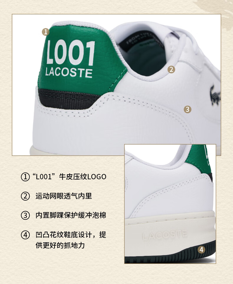 Lacoste法国鳄鱼女鞋新款L001系列简约经典板鞋休闲鞋48SFA0026