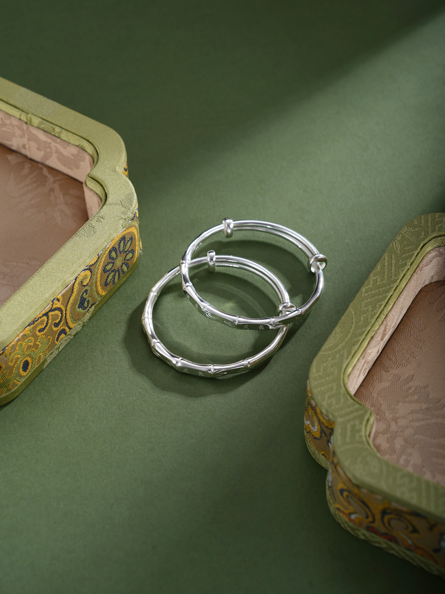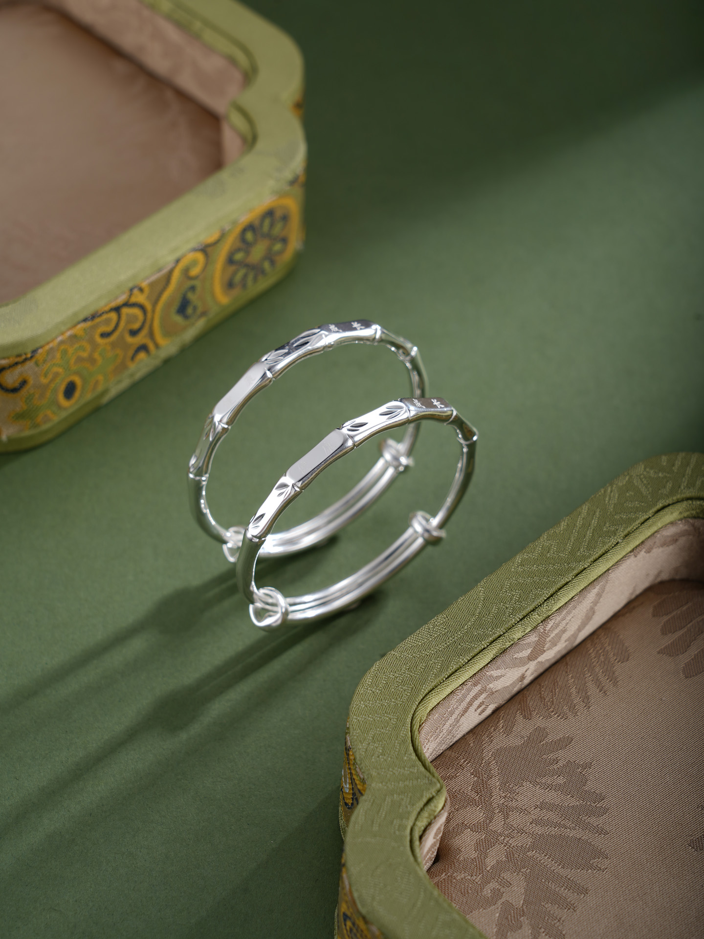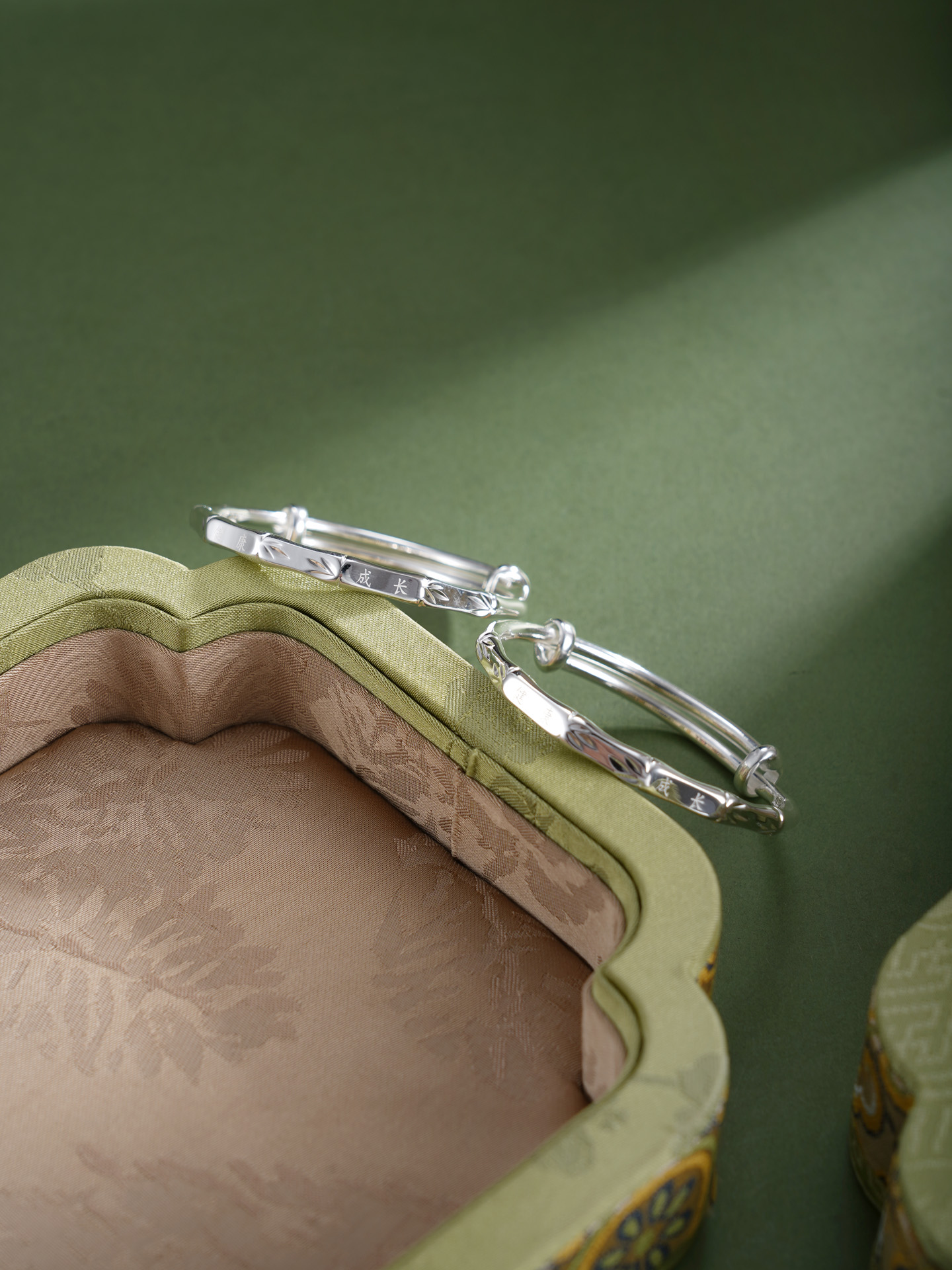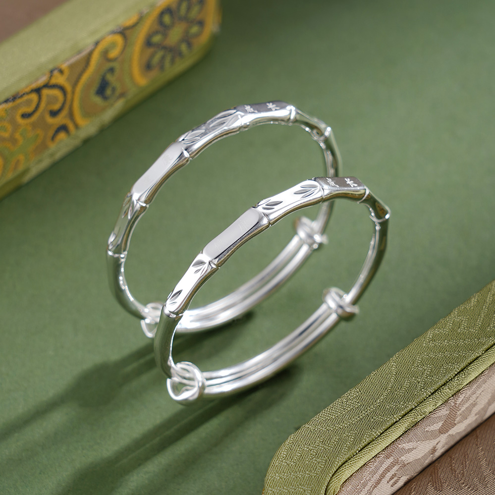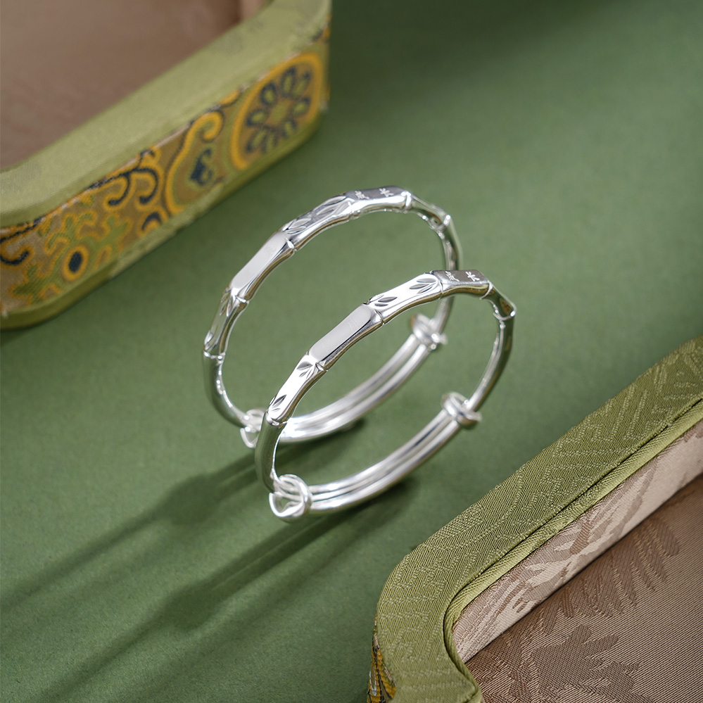 【寓意】:纯银童镯,以竹节纹样勾勒,寄托对宝宝健康茁壮,坚韧成长的美好祝福。