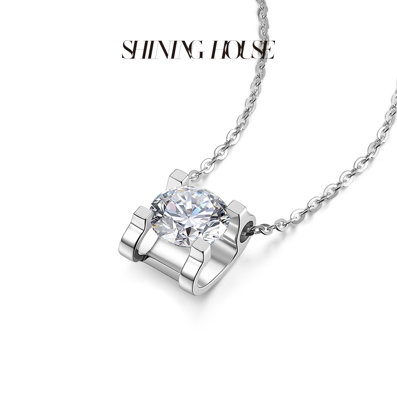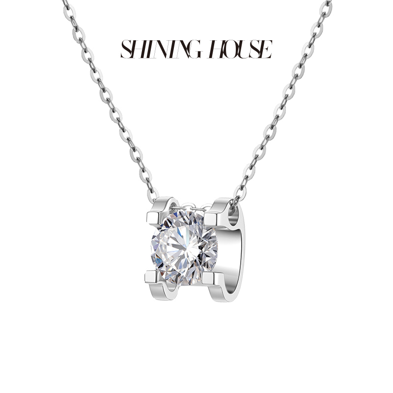 ShiningHouse[培育] 18k金钻石项链 圆钻形人工真钻人造钻石K金项链可调节简约牛头款钻石项链悦己送礼臻选【此商品不支持7天无理由退货退款】预计3日发货