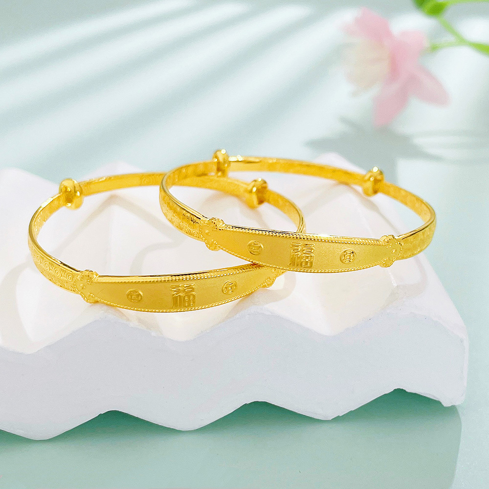 【限时克减150元】足金999.9 #儿童/宝宝 #萌宝岁礼 实心推拉祥云纹福禄如意童镯福字铜钱图案BB镯/对(面宽约5.6-6mm)(BPWTZ00008)预售产品下单后不退款不退货不换货不补差价