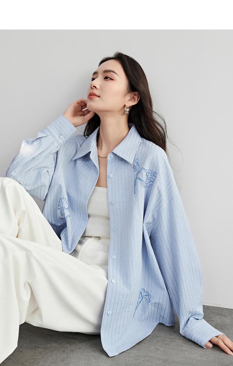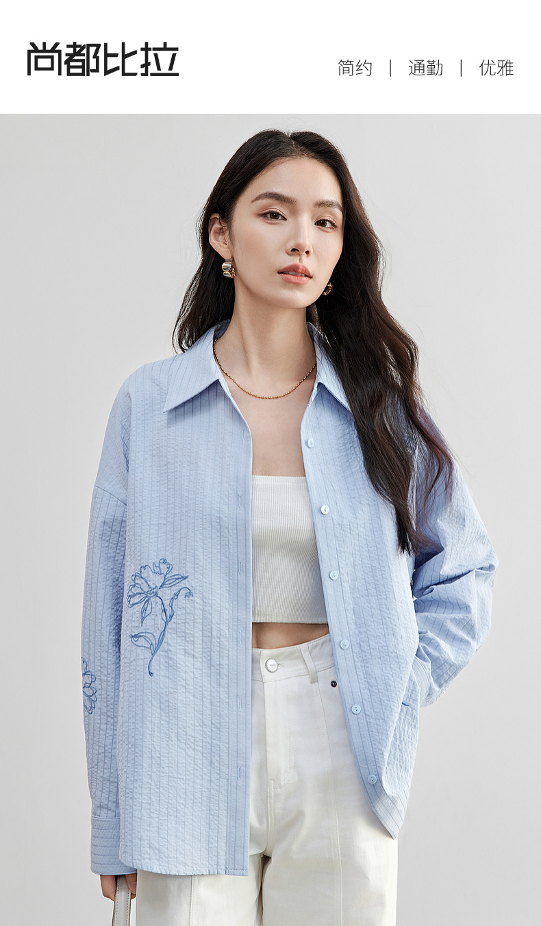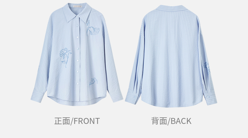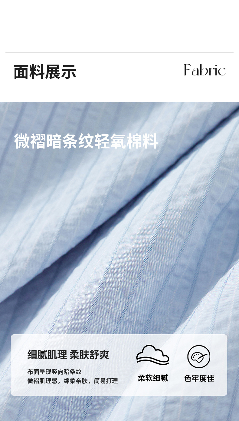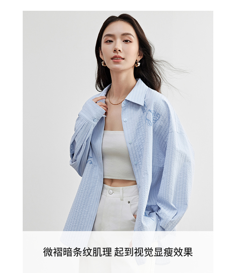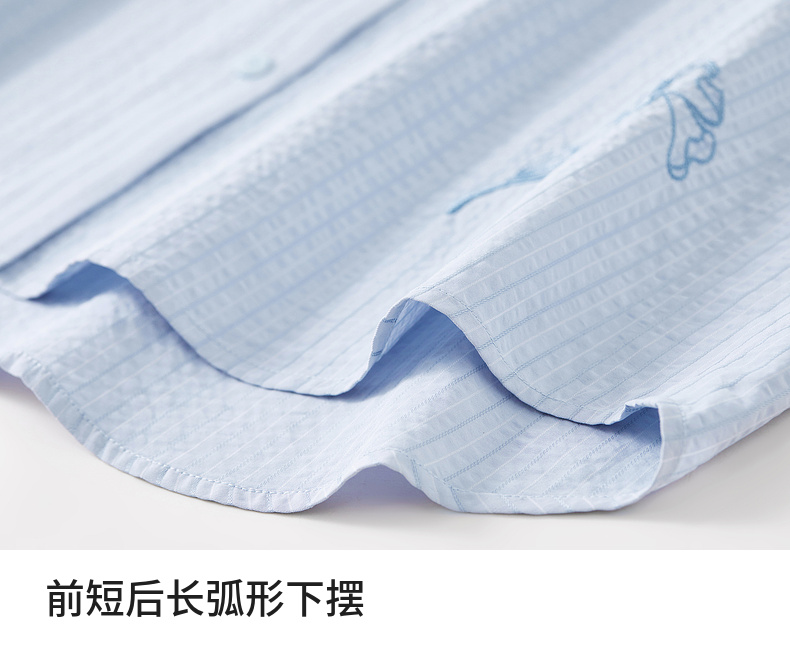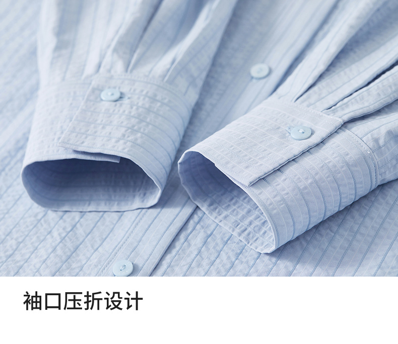 【内购】通勤简约翻领前短后长弧形下摆暗条纹宽松轻氧衬衫-151C58138