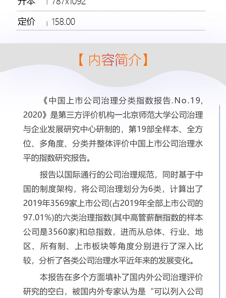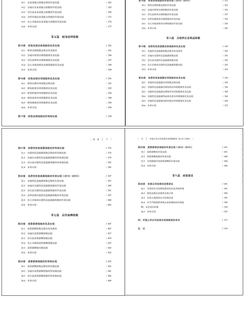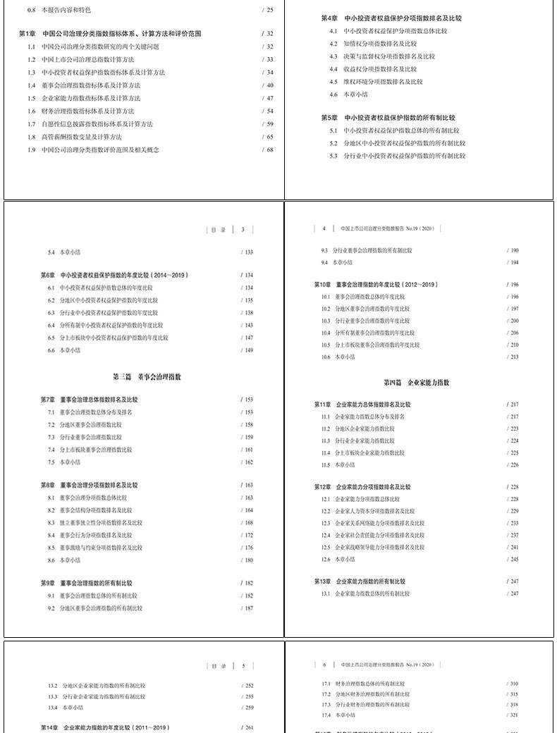 中国上市公司治理分类指数报告No.19,2020 中国上市公司治理书籍 中*者权益保护指数董事会治理企业家能力指数财务治理指数