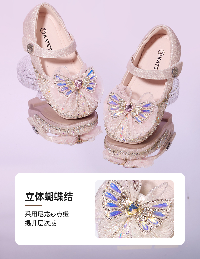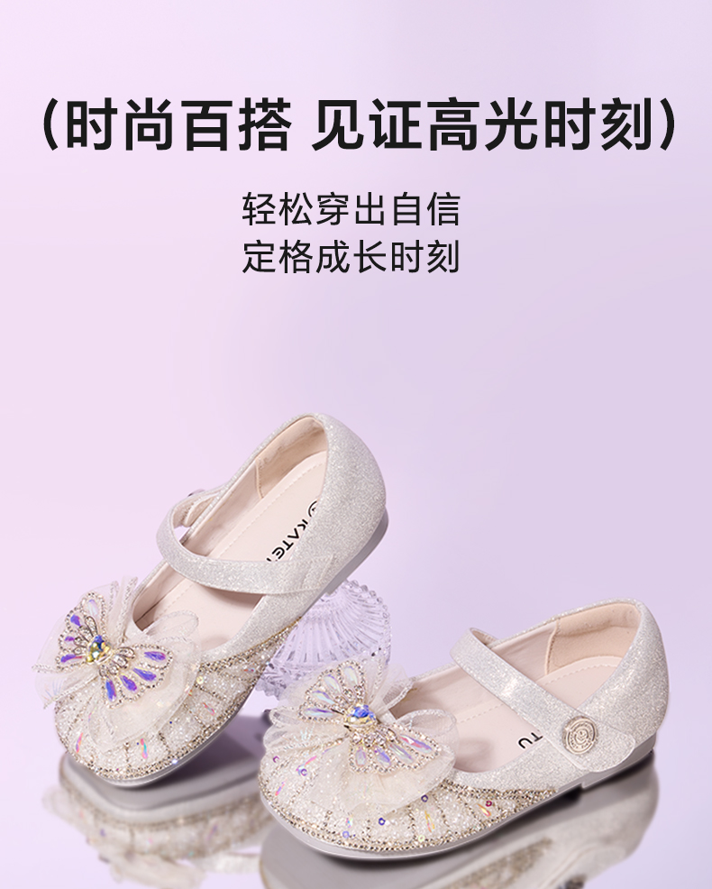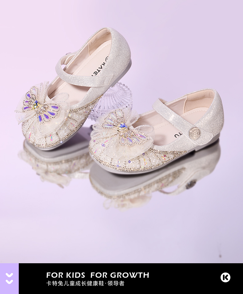 卡特兔女童公主鞋2025秋季新品闪灯鞋水晶软底女孩礼服鞋演出鞋