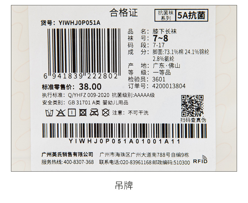 英氏儿童袜子男童女童中袜2023四季新款舒适针织袜 YIWHJ0P051A