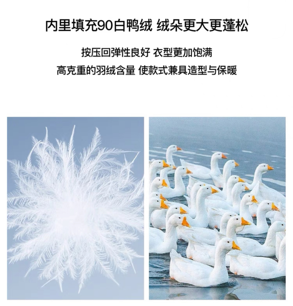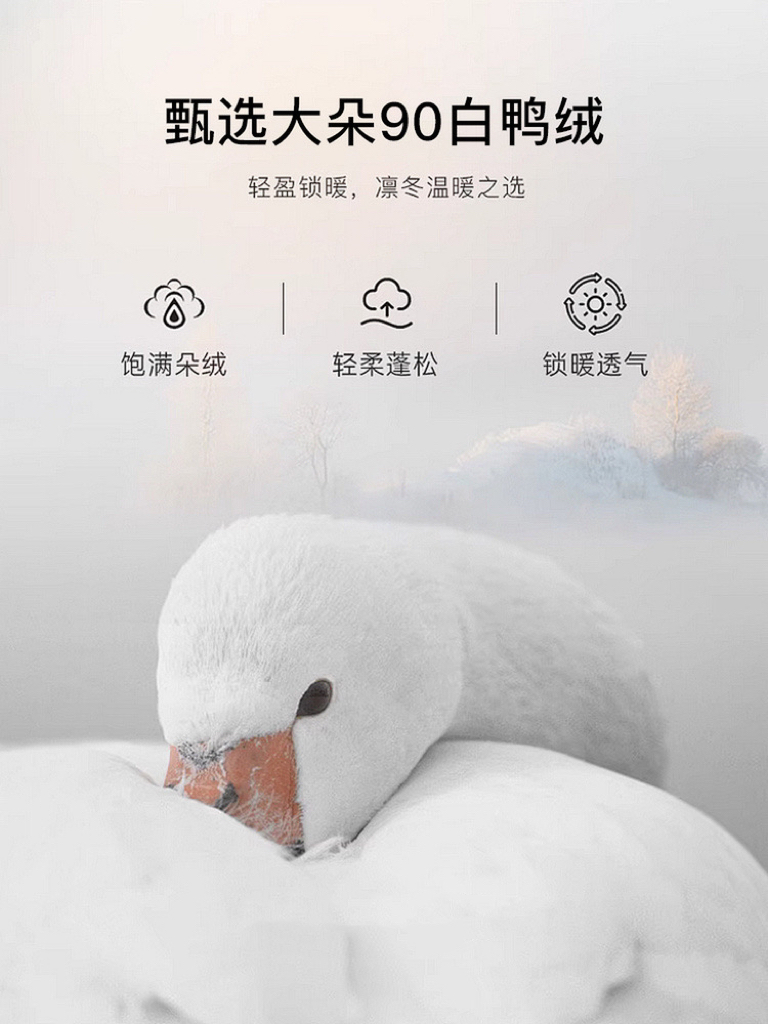 面料:90%白鸭绒