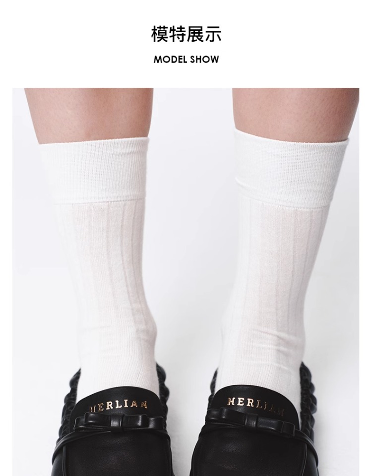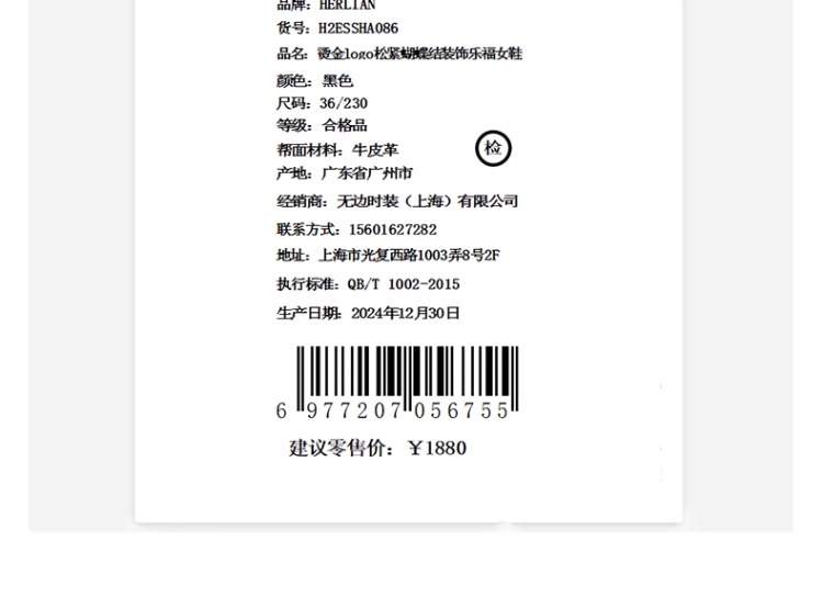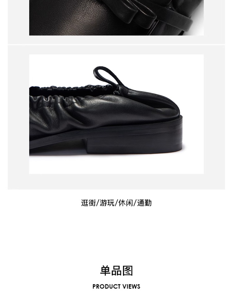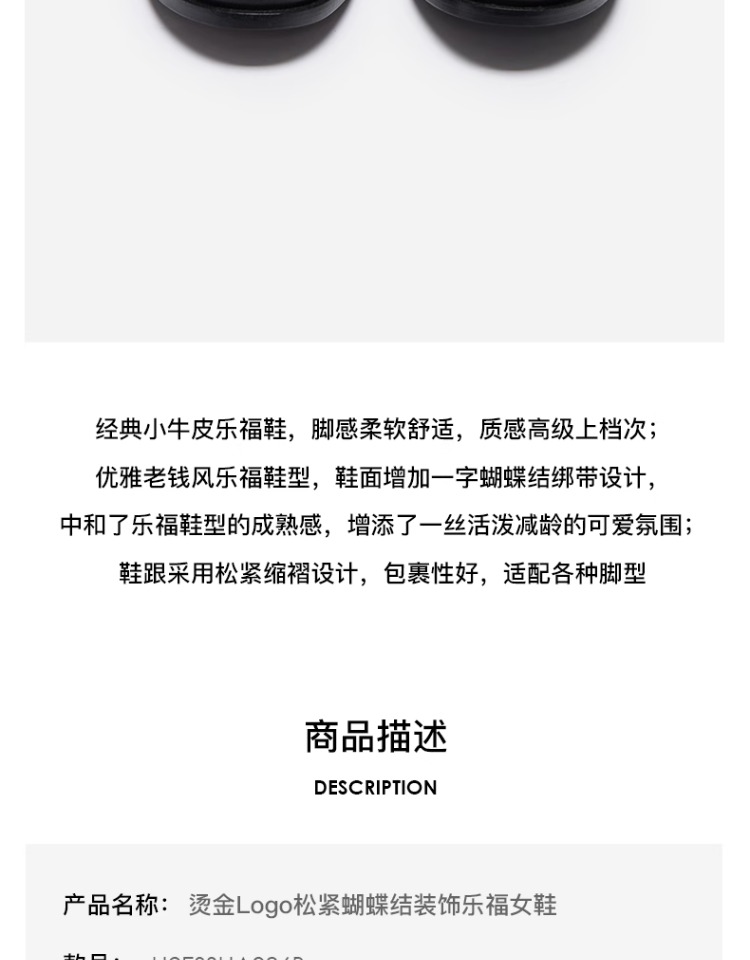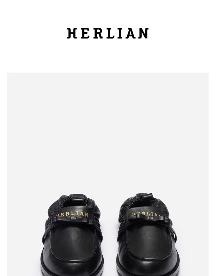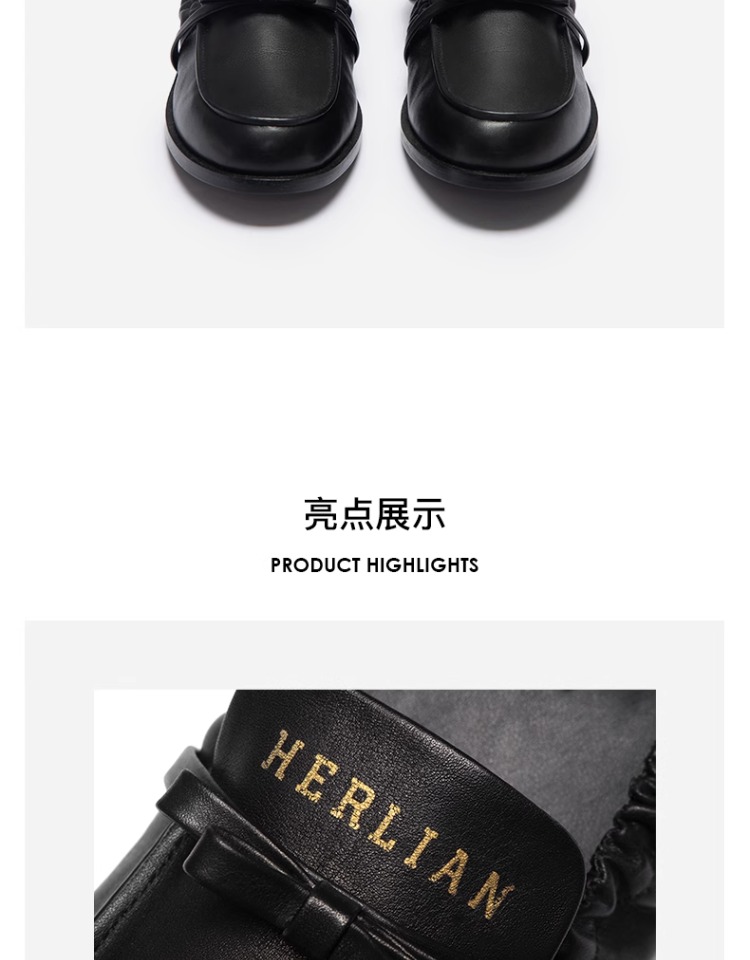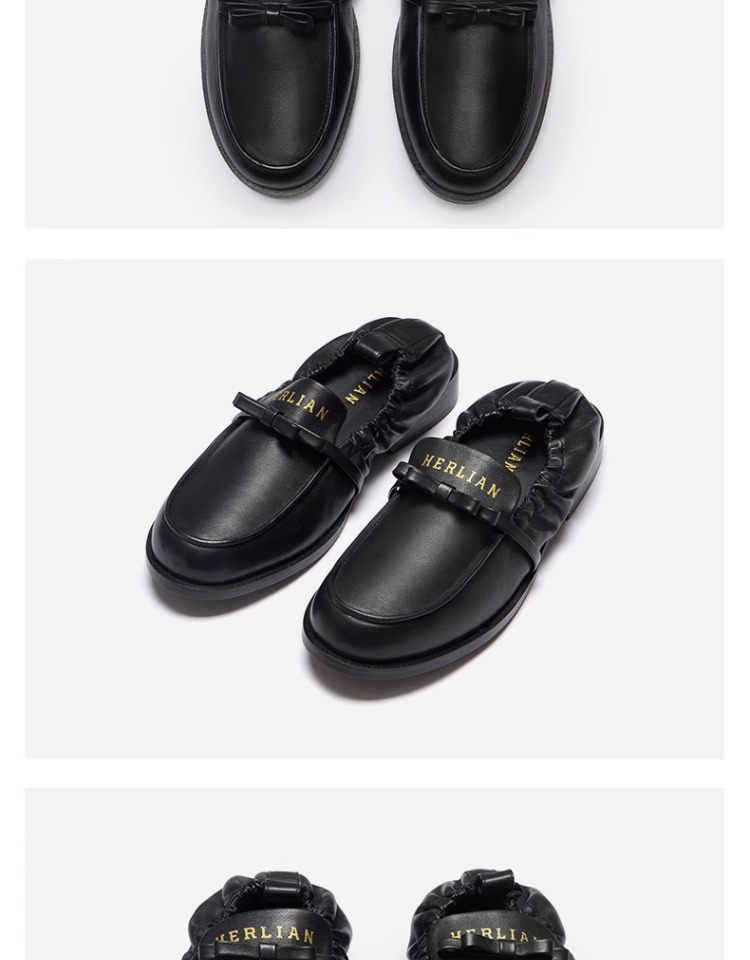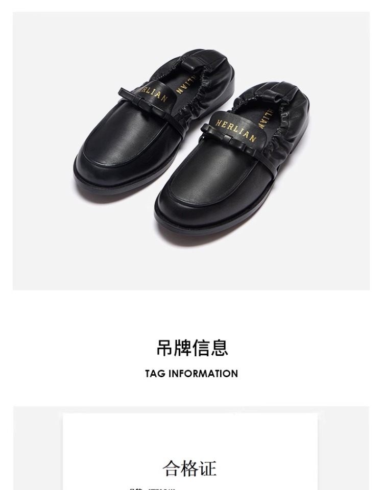 HERLIAN 烫金Logo松紧蝴蝶结装饰乐福女鞋