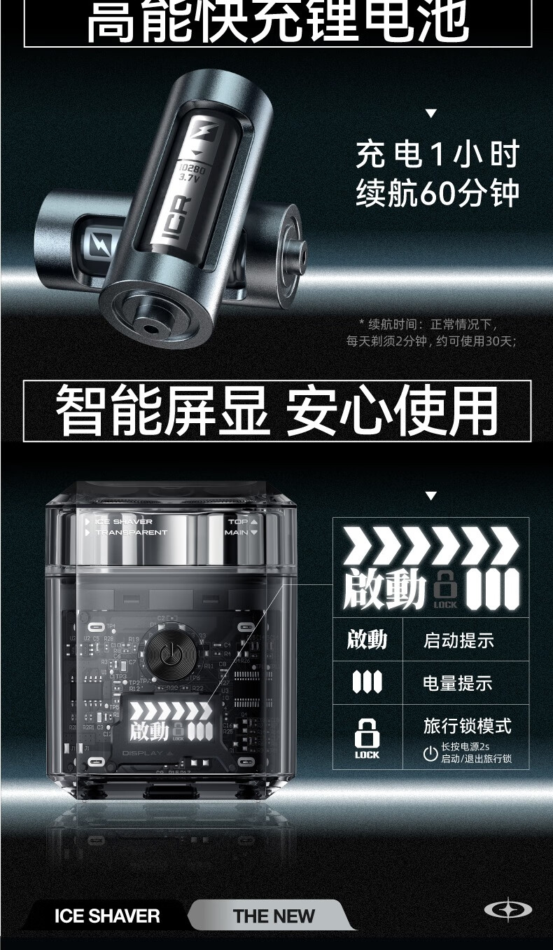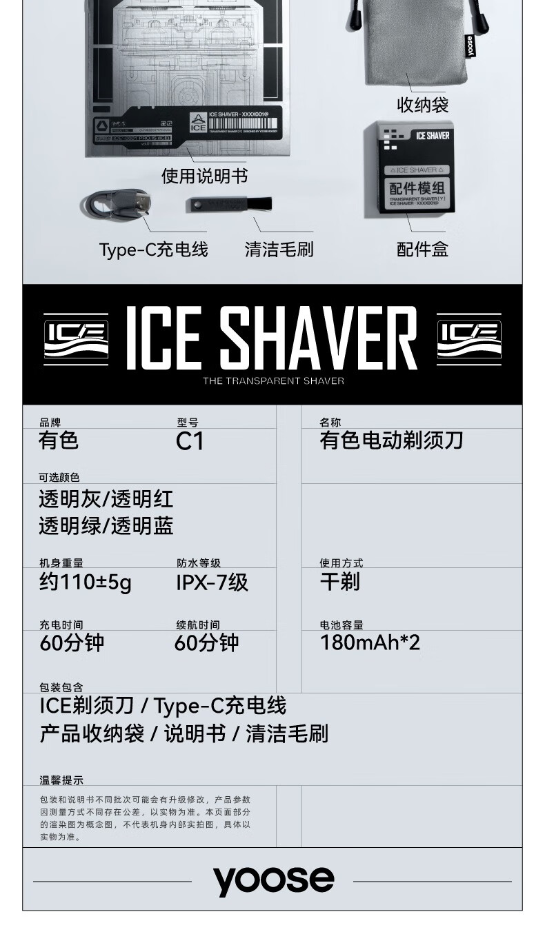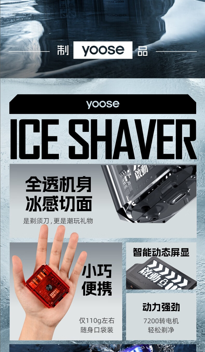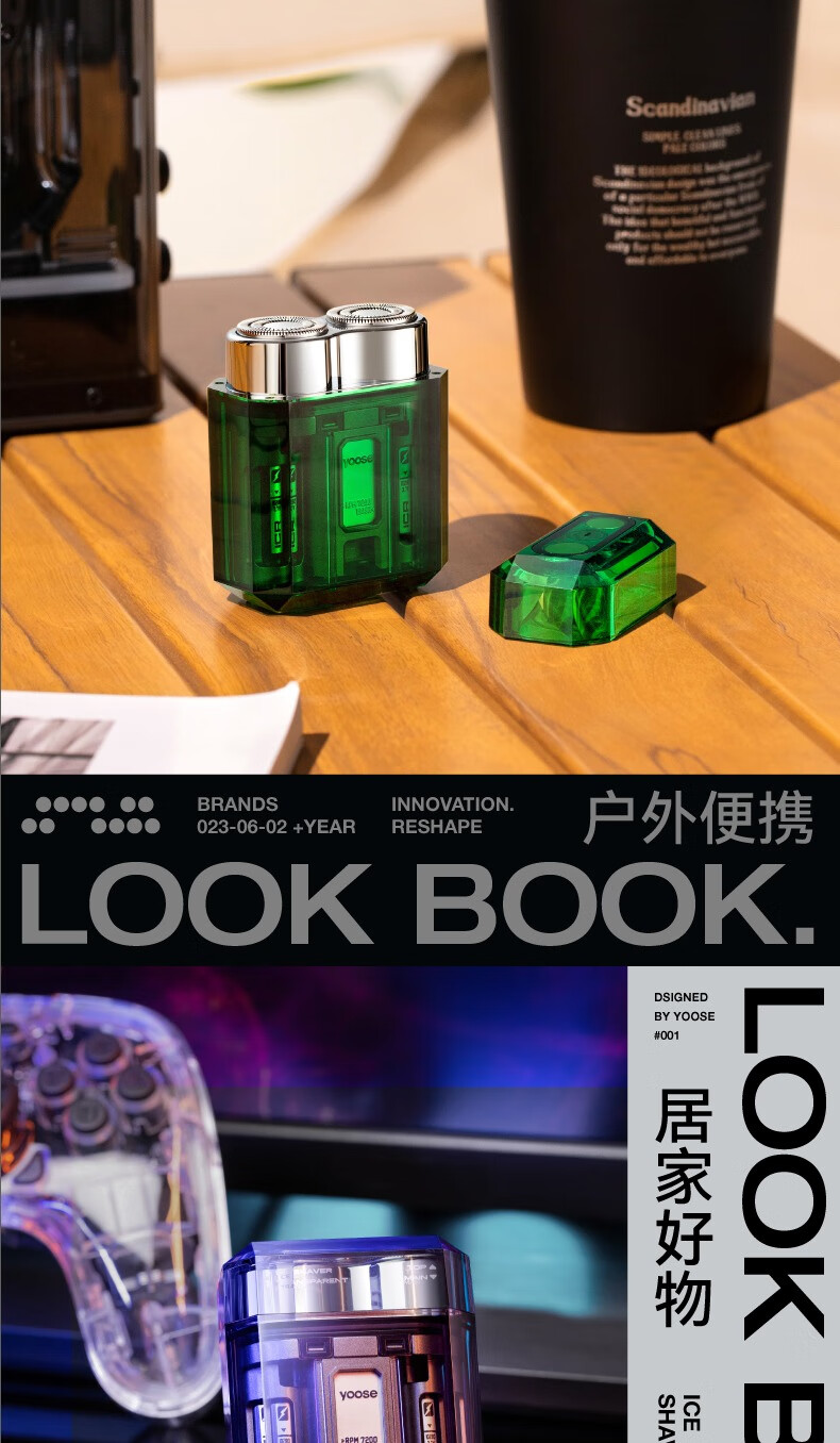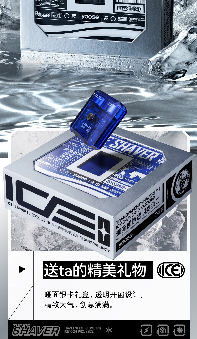 有色(yoose)【王一博推荐】剃须刀便携款透明电动刮胡刀男士_生日礼物情人节送男友胡须刀礼盒_ICE_透明绿