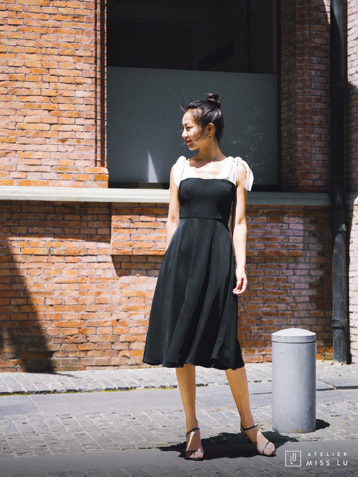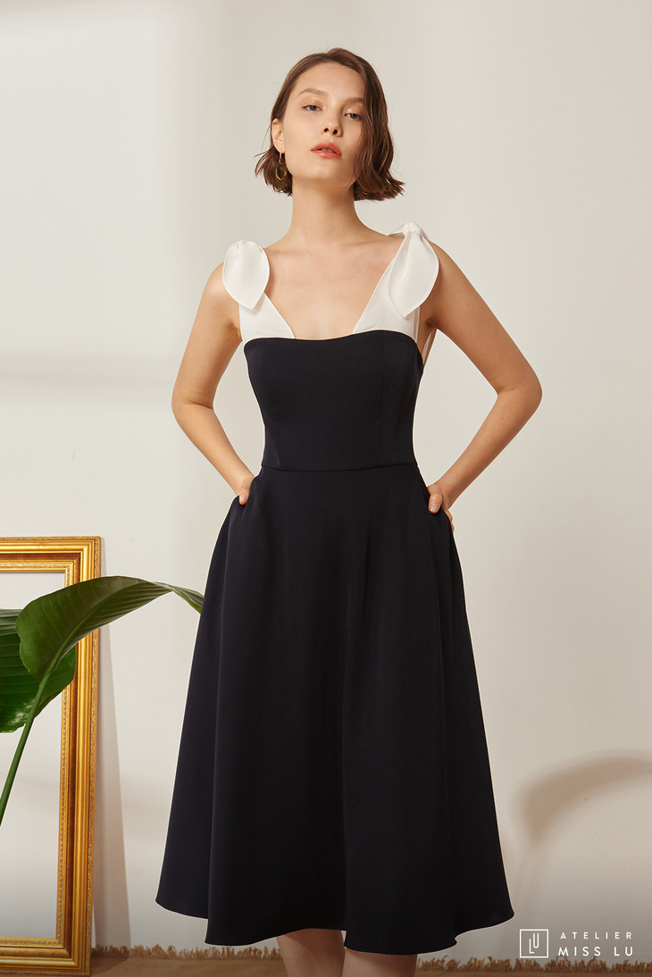 AtelierMissLu / Grace-藏青拼白蝴蝶结连身裙