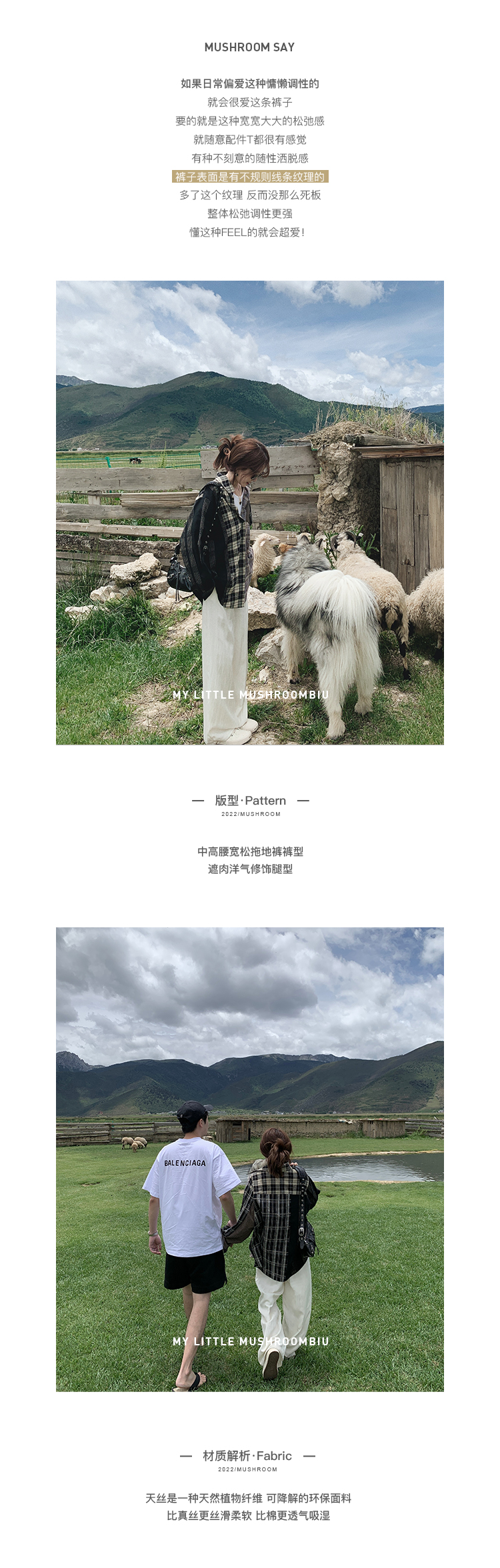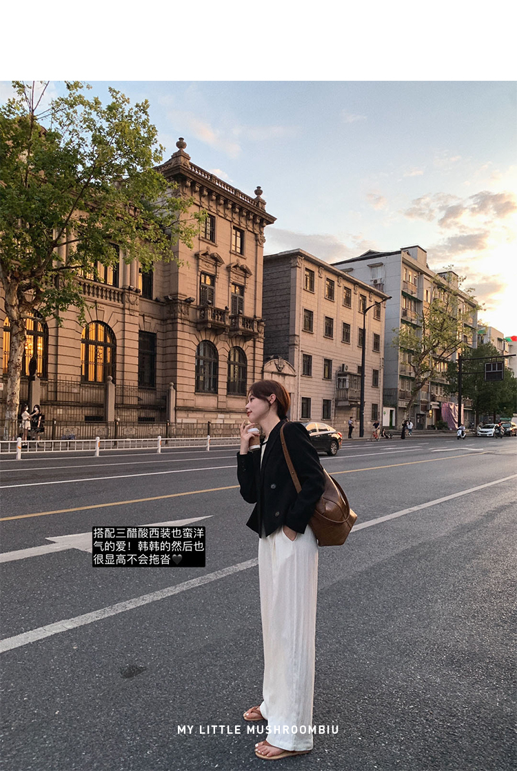 金蘑菇菇【物理防晒霜 白白天丝裤】中高腰宽松拖地裤大裤腿长裤