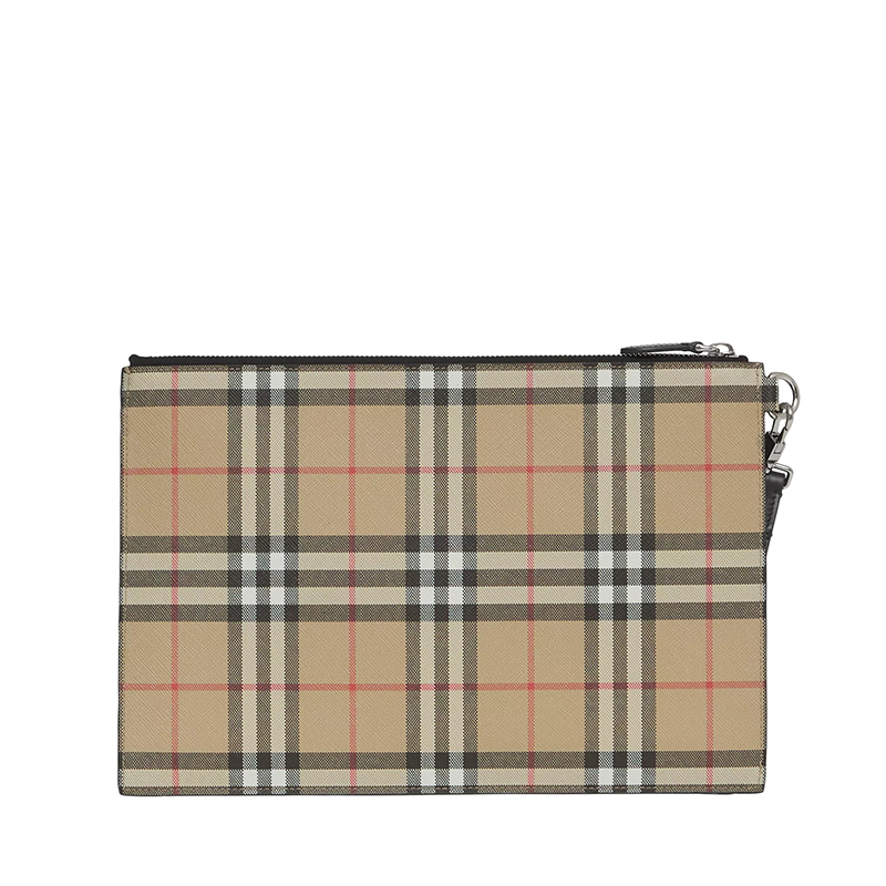【包税】BURBERRY/博柏利 21秋冬新款 男士典藏米色Vintage格纹环保帆布拉链手拿包80495881