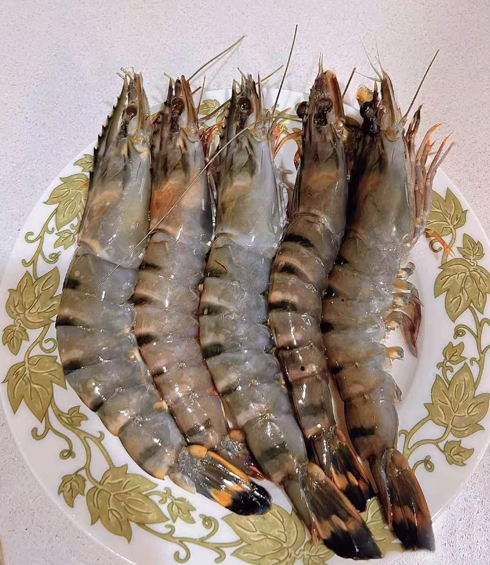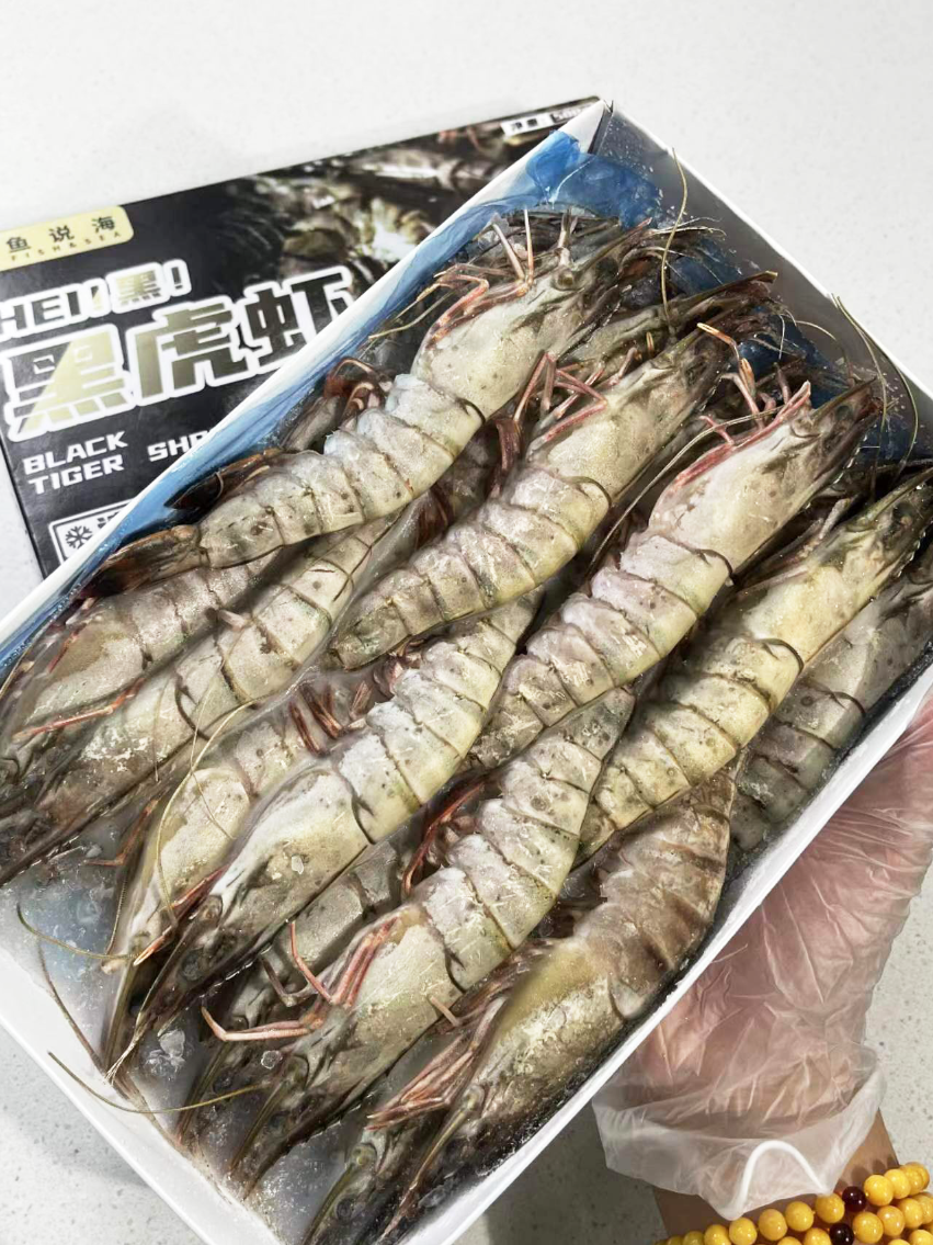 🦐黑虎虾身体富光泽茶色,虾背上带铁锈色纹理、体态优雅主要以个头大为美、为贵、有着【虾中之王】的美誉,深受虾类消费者欢迎。
