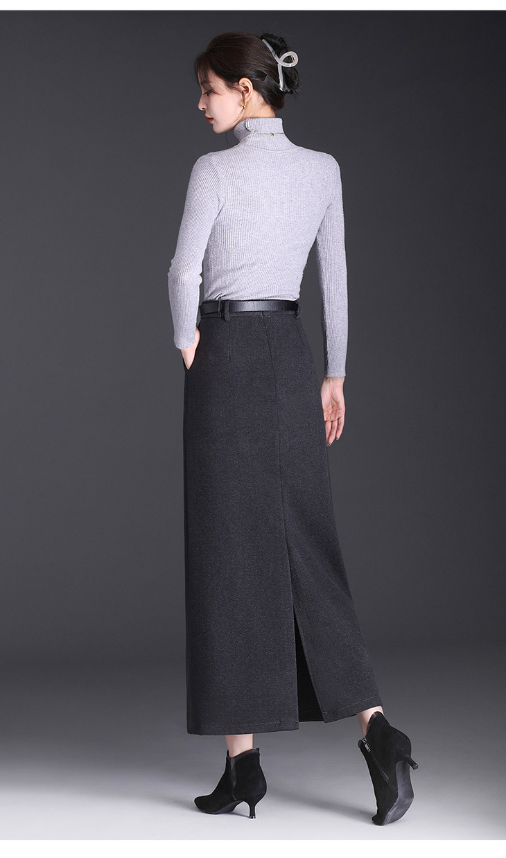 通勤简约修身时尚包臀鱼尾裙,冬款高腰中长款气质优雅半身裙MYX-YGLR-28156-L