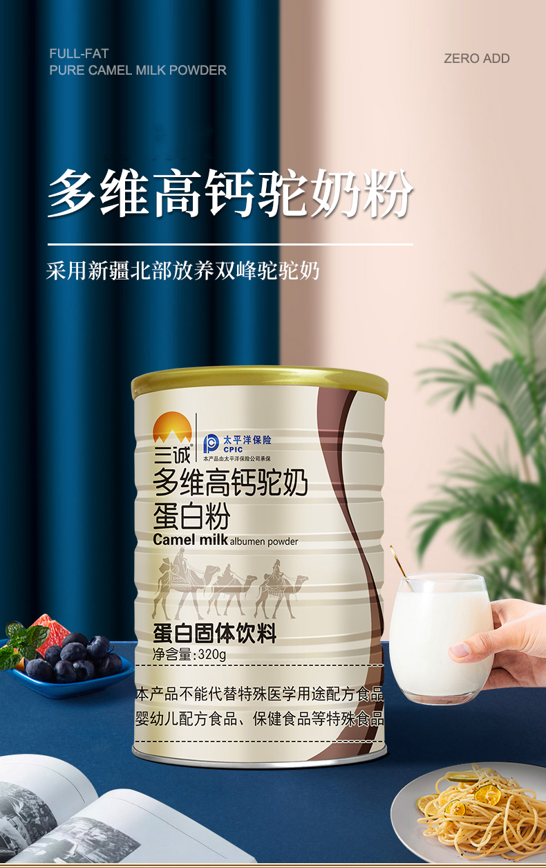 【二送一】三诚多维高钙驼奶蛋白粉 适用三岁以上儿童老人体质弱人群等 源自新疆双峰骆驼 320g/桶