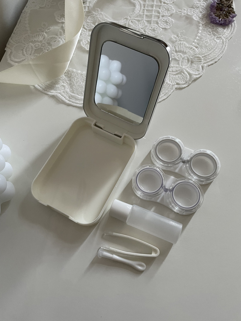 伴侣盒套装组成:双联盒、镊子 ,配戴棒、镜子、小瓶子。